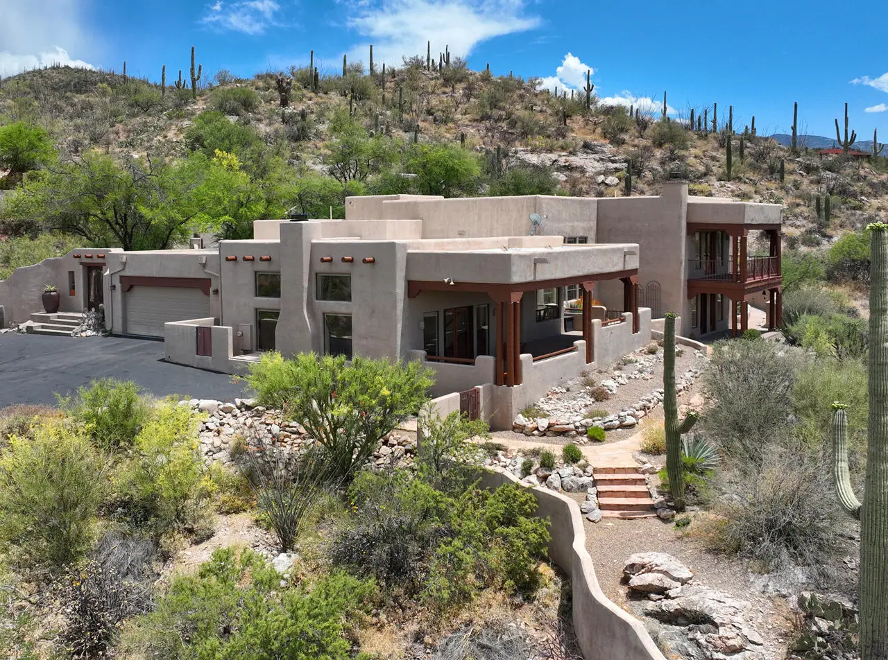 $100K Price Reduction! Welcome to your Desert Oasis in Prestigious Redington Ranch, nestled in serene Tanque Verde Valley. This Hilltop Estate boasts 3.2 acres of natural beauty, with Breathtaking City, Catalina & Rincon Mountain views. You will love the Southwestern design and traditional finishes including Saltillo tile floors, Viga Beamed ceilings and Wood-burning Fireplaces. This 3612 sq ft home features 4 beds,3 baths including a Guest Quarters with kitchenette & separate entry. The Bright & open Kitchen, several Living areas, Outdoor spaces including waterfalls and meandering walkways, offer relaxation, both inside and out.