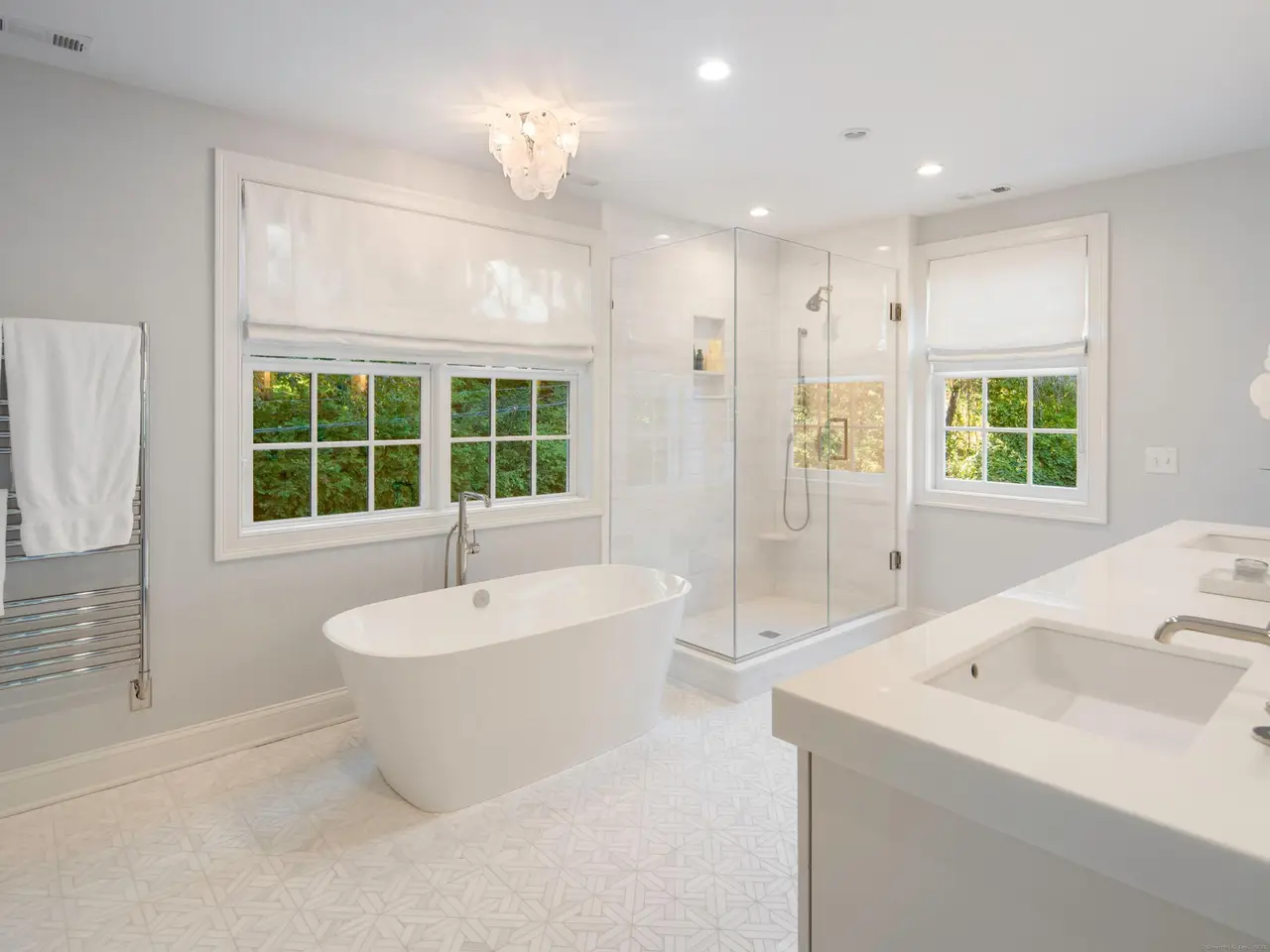 Serene and Chic! This beautiful, pristine home lives like a decorator's show house. High-end finishes and professional decorating greet you at every turn in this simply stunning retreat on 2 private acres. Gourmet Kitchen with Sub-Zero/Wolf appliances, granite counters, fully-equipped wet bar with refrigerator drawers/wine chiller and sunny Breakfast Room that overlooks the expanse of the property. Open floor plan, high ceilings and freshly redone chestnut flooring throughout. The bright Kitchen spills into a dramatic Family Room with vaulted ceilings, soaring windows, built-ins and modern decorative fireplace detail. There is a Living Room with second fireplace, sophisticated Dining Room, Office hideout and stylish Mudroom just off the front porch. The surprises continue upstairs with a spacious, soothing Primary Bedroom complete with two custom LED-lit closets and a show-stopping, spa-like Primary Bath. Two more bedrooms with a renovated Jack & Jill bathroom and 2nd floor Laundry complete this floor. Don't miss the Lower-Level walk-out Playroom/4th bedroom option, Exercise Room and full Bath for those who may need an au-pair or in-law suite with private entry. The spacious walk-up Attic could be finished. The wrap-around porch and cozy fire-pit deck overlook this large, level back yard with charming barn/shed. You'll feel like every day is a wellness vacation at home as you walk to GrayBarns or the Mercantile to celebrate your homecoming to the heart of historic Silvermine!