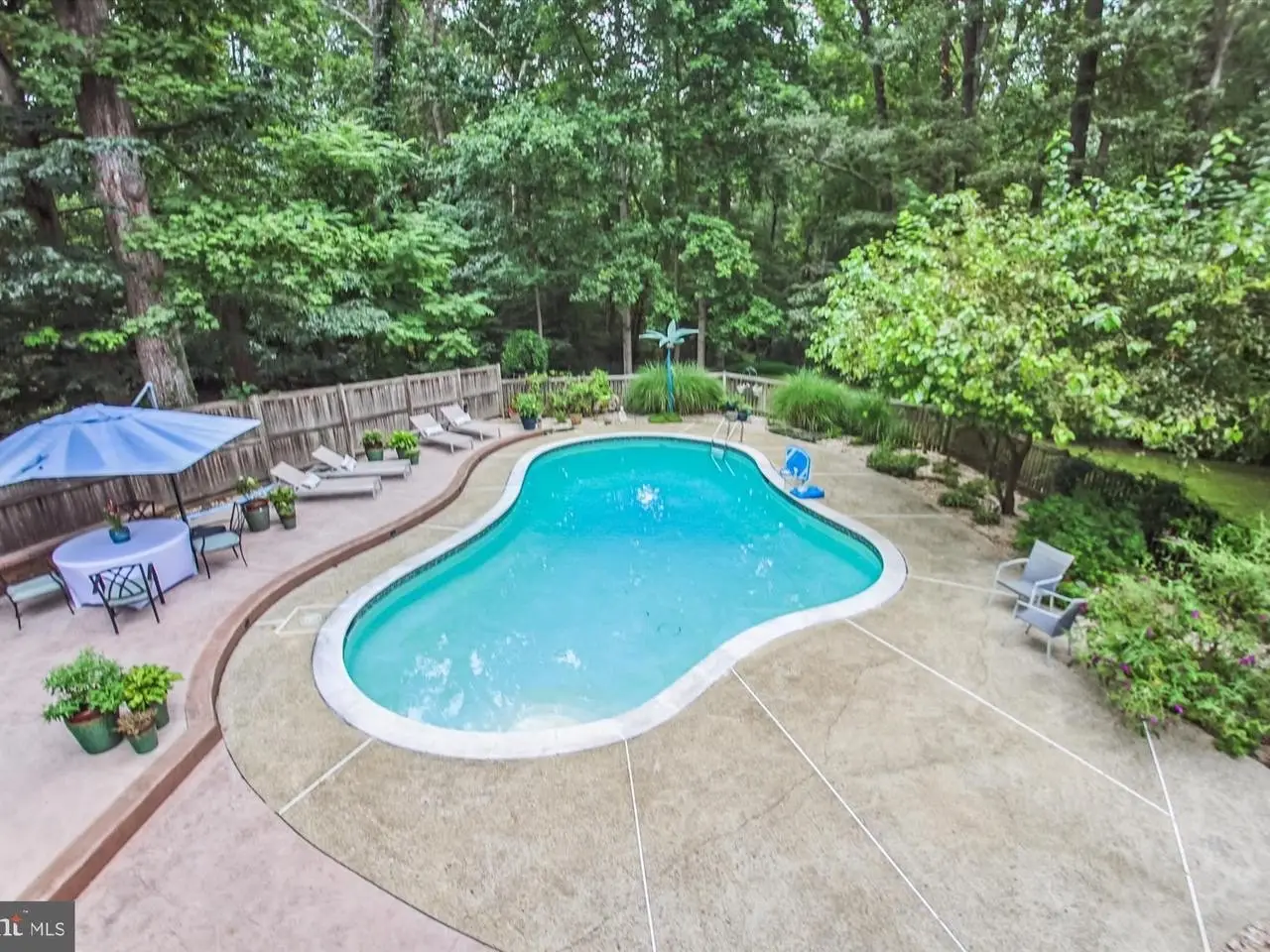 Welcome to your new home. Come check out this exceptional house that features over 5,500SF of living space with 5 large bedrooms, 4 ½ bathrooms, and 3 separate areas with travertine wood burning fireplaces to gather and entertain your friends and family. The main level has hardwood floors throughout, Living Room, Dining Room, newly renovated chef's kitchen with solid surface counters and ceramic backsplash, an eat in area, custom walk in pantry, welcoming family room and separate office that can double as a bedroom. The rear decks are accessible from both the family and living rooms. The walk out basement has plenty of space for entertaining, with a large gathering space, an additional room (currently being used as a guest room with attached full bathroom), a built-in wet bar, and a substantial wine storage area under the stairs. As you head upstairs you will find 2 spacious bedrooms with ensuite bathrooms, 2 additional bedrooms, and a third bathroom. The primary bedroom has a spa-like bathroom with a huge shower area and soaking tub and the spacious walk-in closet is a must see. The laundry room is located on this level for convenience and features upper and lower cabinets, a sink, and marble counters. Once outside, step into multiple outdoor areas. Off the main level family room you will find an inviting entertaining area with ample room for seating and grilling. As you venture down the stairs, you are greeted with a concrete patio space and separate fire pit area. Which then brings you to the large kidney shaped in ground gunite pool surrounded by areas for seating, tables, chairs, and loungers. There is also a large lounge area located under the upper deck. The house has a half circular driveway and garage that can hold up to three cars. This beautiful home is a must see. Pool Closed on 10/3/25.