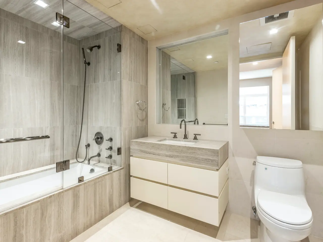 This stunning, near-mint condition 2-bedroom 2-bathroom apartment occupies a full-floor in a boutique, designer doorman building in prime and coveted Flatiron area. Residence 5 at 21 West 20th Street is the pinnacle of luxury living with a vast array of high-end finishes, modern conveniences throughout, and low taxes thanks to a 421a abatement. Enter directly off of the elevator and be drawn toward the open living area with enormous floor-to-ceiling windows and picturesque vistas of West 20th Street and the gorgeous prewar architecture across the street. Light pours in from the South, bathing the room in sun. The living/dining area has been outfitted with an elaborate array of built-ins that provide an abundance of storage space as well as a murphy bed that has been thoughtfully concealed in the entertainment center. An immaculate chef's eat-in kitchen has seen minimal use and is clad in a beautiful mix of white oak and stainless steel custom cabinetry, olive marone marble countertops and a stainless steel backsplash. The top-of-the-line Miele appliance suite offers a 4-burner gas stove and oven that vents to the exterior, integrated 36" refrigerator with double freezer drawer and ice maker, dishwasher and concealed integrated microwave. Rounding out the kitchen is a Julien sink with Grohe fixtures including an instant hot/cold purified water faucet as well as garbage disposal. The adjacent dining area features an additional Marvel wine fridge and custom storage. The bedrooms are secluded and in the northern wing of this immaculate residence. The primary suite is well-proportioned with all custom closetry and en-suite full bath finished in Novelda Cream Limestone flooring and driftwood marble surround on the oversized vanity and glass-enclosed soaking tub. The second bedroom features a custom walk-in closet with sliding barn door and utilizes the second full bathroom located in the hallway. The second bathroom is beautifully appointed with glass tiles in the second glass-enclosed soaking tub, Caesarstone quartz vanity countertop and off-white porcelain tiled floor. Additional conveniences include central AC, in-unit washer/dryer by Bosch, in-unit refuse chute, a robust AV system by Cave Group and gorgeous rift-cut white oak floors that run throughout the apartment. Consisting of 13 full-floor residences, 21 West 20th Street is a sleek and handsome boutique luxury condominium designed by famed interior architect David Mann of MR Architecture Dcor and WELL and LEED certified. Residents enjoy the service of a 24-hour doorman, gorgeous resident lounge, and spacious outdoor garden with seating areas. There is refrigerated storage for grocery deliveries as well as central laundry, pet wash room, and bike storage. Perfectly situated between Fifth and Sixth Avenue, 21 West 20th Street is close to the finest in Flatiron shopping, entertainment and dining experiences, and minutes away from Union Square and a plethora of transportation options. Pets are welcome. 421a tax abatement in place until July 2023.