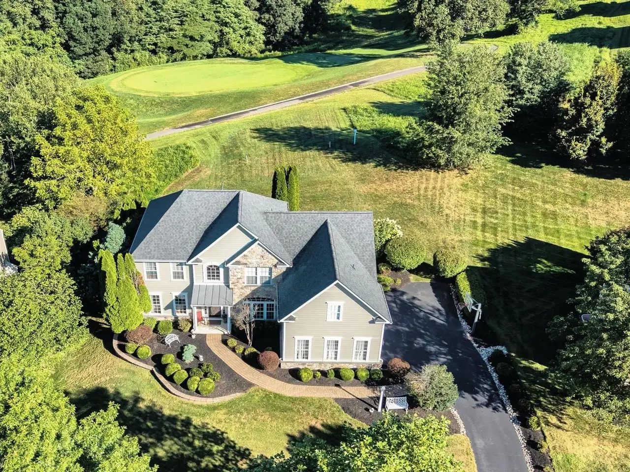 This former builders model home is resplendent with the stylish design, luxury upgrades, and custom enhancements that you desire! Including a premium lot of grassy yards & mature trees overlooking the 8th hole of the Broad Run Golf Course! JUST IMAGINE: evenings in your Hot Tub enjoying spectacular sunsets over the golf course; entertaining in your Home Theater & Pub Bar or on your circular cantilever Deck; festive gatherings in your Walk-Out Finished Lower Level; and quiet coffee time & weekday dining in your stunning Sunroom. Welcome home to 1538 Tattersall Way! Downingtown Schools; close to STEM Academy; minutes to parks, shopping, dining, trains; easy access to Rtes 30/202/322/1, DE, shore points & everywhere you want to be! Up the paver walkway, over the covered Porch, and into a soaring two-story Reception Foyer adorned with sunlit transom and palladian windows. Custom millwork and crown molding; cherry hardwood floors; plantation shutters --- just a few of the features that elevate this property to true luxury status. The Living Room with bumped-out bay window exudes warmth and sophistication, and the decorative columns and wide cased doorway create a seamless flow into the formal Dining Room with its tray ceiling and multiple bow windows. Behind french doors the Office/Study is beautifully appointed with rich wood built-in cabinets, shadowbox trim and double crown molding. The builders concept Eat-In Kitchen has all the premium upgrades you desire: stainless steel appliances; Thermador fridge; 5-burner gas cooktop; microwave; double ovens; center island w/sit-up breakfast bar; onyx black granite counters; raised panel cabinetry & glass curios; double bowl stainless steel sink; extra recessed lighting; and walk-in pantry. The elevated pass-through bar opens into the Breakfast/Sunroom with volume ceiling, tile floors, door to the Deck, and unrivaled golf course vistas. The Family Room showcases a floor-to-ceiling stone accented gas fireplace, plus a wall of sun-filled windows framing the expertly landscaped gardens & grassy yards. Also on this floor: Powder Room and thoughtfully designed Mudroom Laundry with built-in cubbies & hooks; bench seating; utility sink vanity; large coat/storage closet; and access into the oversized 3-Car Garage with carriage house-style doors. Take the front curved staircase or back staircase to the second floor replete with hardwood floors. The fabulous Primary Suite feels effortlessly luxurious: the Bedroom with dramatic tray ceiling and decorative columns opens into the spacious Sitting Room --- such a versatile space, and so beautiful with its embossed molding detail. The Full Bath features separate sink vanities; soaking tub; and floor-to-ceiling tiled shower w/bench. There are 2 walk-in-closets, including a Valet Closet with custom built-in shelves/drawers/tailored storage accents. There are three more Bedrooms with ample closets and millwork/built-ins, and the Full Bath has a dual sink vanity plus tub/shower combo. WOW! The Walk-Out Finished Lower Level with its raised ceiling, beadboard trim, and extra recessed lighting has so many spaces for FUN: billiards room; game/TV areas; door to hot tub w/pergola & yards; and custom sit-up pub bar with granite counters, raised panel cabinets and glass curios, lattice wine shelving, 2 fridges, dishwasher, fireplace and stamped metal panel ceiling. Do not miss the Home Theater--Guest Suite/5th Bedrm; extra storage; and Full Bath with shower. Outside in the park-like setting of gardens and trees the composite Deck with new steps to yards (perfect for pets!) is ideal for entertaining or just relaxing & enjoying the changing Chester County seasons. NEW: roof; heating system; 2 A/C units. Property is in meticulous condition, so the included AHS ShieldComplete Home Warranty (their highest level of coverage) is just extra peace-of-mind for you! Some photos virtually staged. Verification of info including measurements/sq ft/lay-out lies with the consumer.