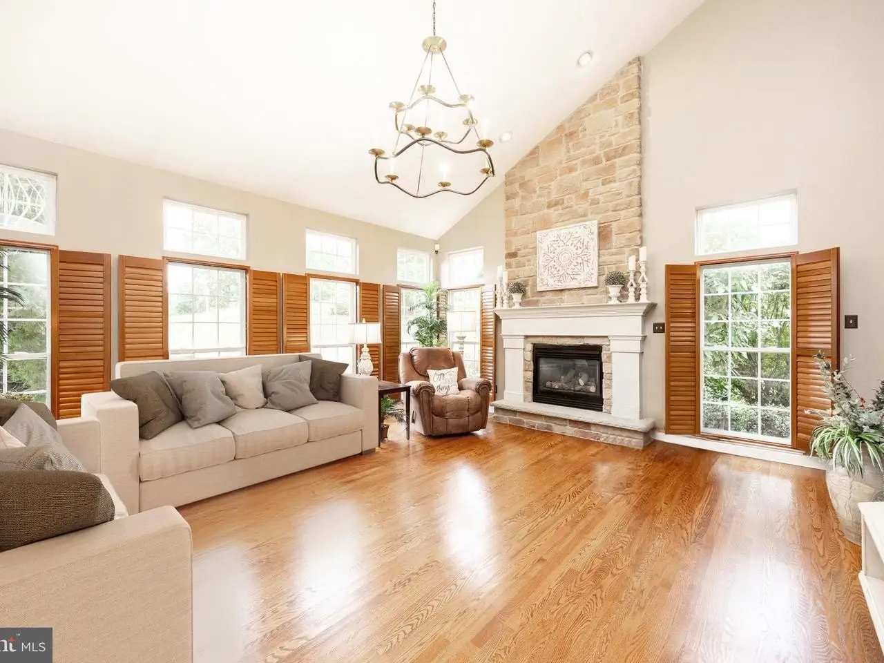 • Floor-to-ceiling stone accented gas fireplace