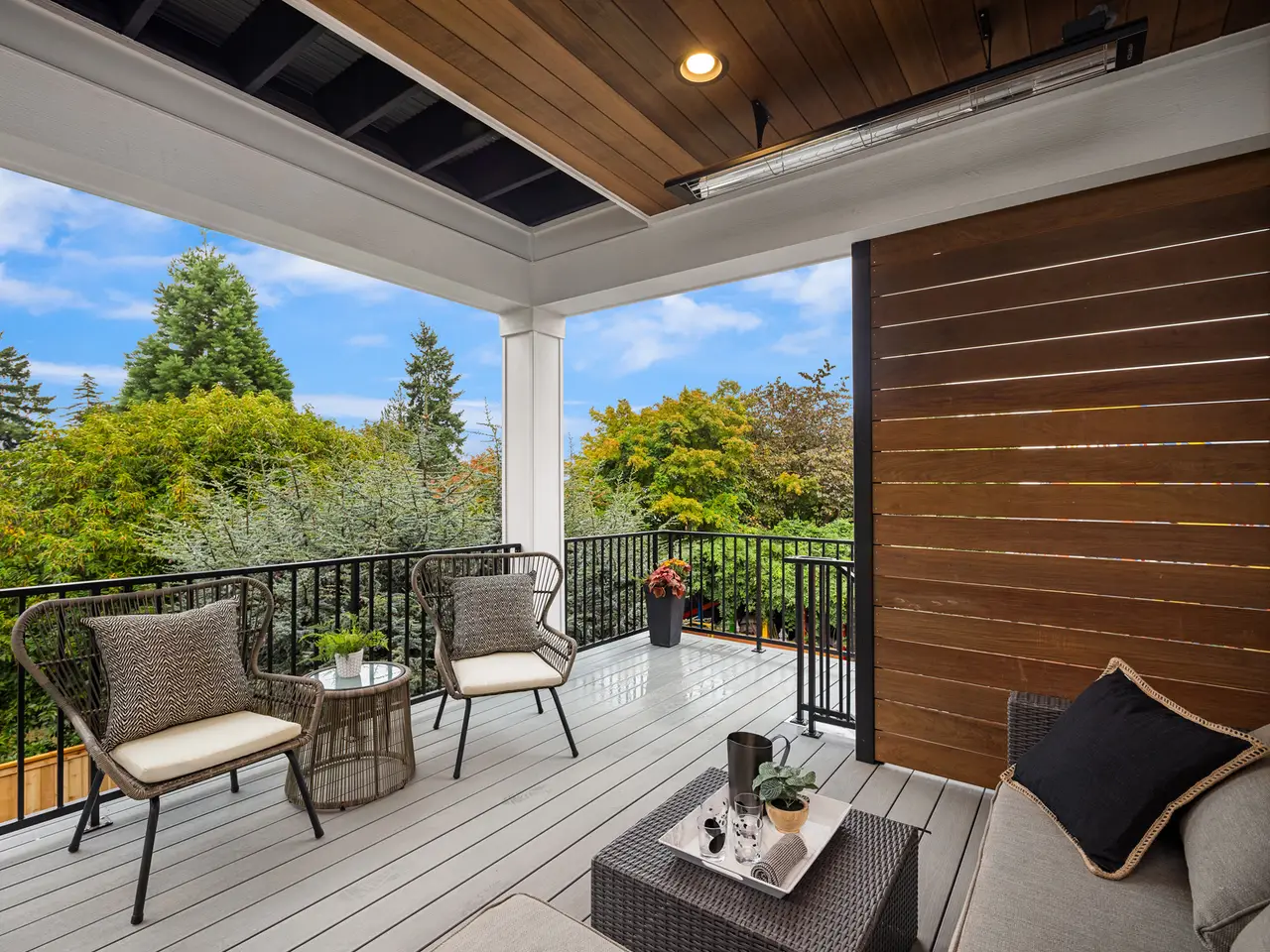 Outdoor covered deck with patio heater