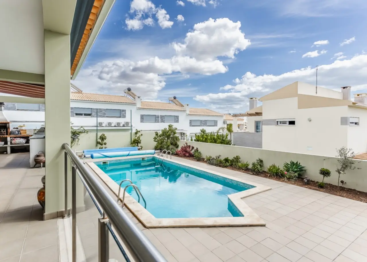 We present this exclusive 4-bedroom detached villa with swimming pool, garage, cinema room and wine cellar for sale just 400 meters from Armação de Pera beach in the Algarve. On the first floor is the social area, with a cozy living room with fireplace, a fully equipped kitchen and 2 bedrooms, which one of them en suite. On the second floor are the remaining 2 en suite bedrooms, with direct access to a spacious terrace overlooking the city, ideal for moments of relaxation. The unique aspect of this property is its lower floor, a true refuge from city life, where you'll find a cinema room and a wine cellar ready to receive your best wines, accompanied by the relaxing sound of a waterfall. It also has a small sewing room, a laundry room with built-in cupboards for extra storage and a spacious garage for several cars, as well as a full bathroom. Outside you'll find a pleasant social area with a swimming pool, barbecue and fruit trees, designed exclusively for your leisure. With solar panels for heating the water, this villa is extremely efficient and sustainable. Located in a quiet residential area and close to the beach, you'll be close to all services and supermarkets and the most beautiful beaches in the Algarve, and only 5km of the golf courses. CHARACTERISTICS: Plot Area: 600 m2 | 6 458 sq ft Useful area: 188 m2 | 2 026 sq ft Deployment Area: 165 m2 | 1 776 sq ft Building Area: 358 m2 | 3 856 sq ft Bedrooms: 4 Bathrooms: 5 Energy efficiency: B- FEATURES: Exclusive villa Swimming pool Cinema room Cellar Garage Fireplace Sewing room Laundry room Solar panels