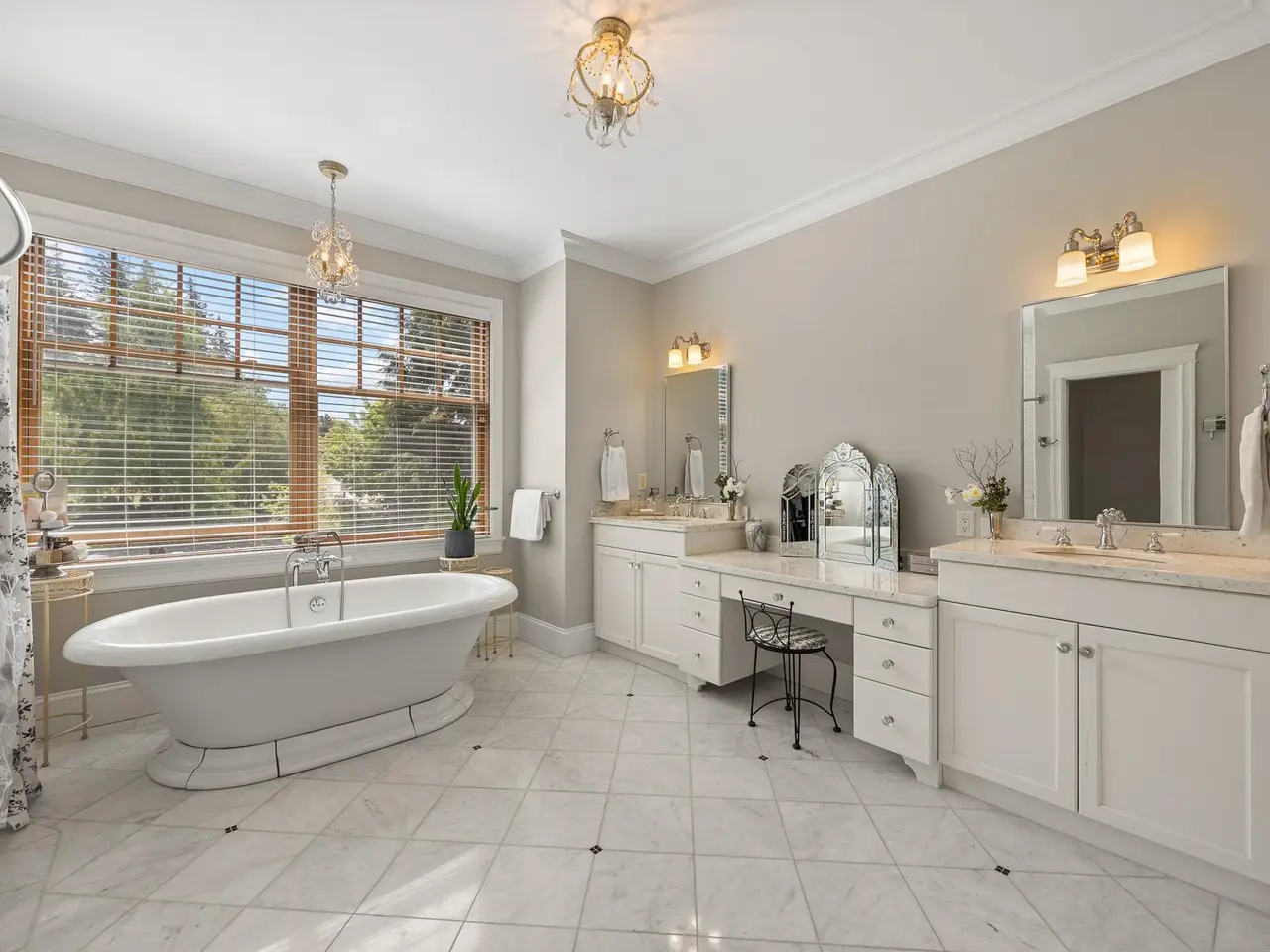 Timeless Shaughnessy-inspired estate residence situated on Grandview's most prestigious locations. Designed by renowned Loy Leyland, this 6,800sqft custom-built home exudes quality craftsmanship with traditional charm. Walking through the front porch, you’re greeted by cross-hall formal living and dining rooms, beautiful dream kitchen and a spacious family room. Seamless access to the outdoors through multiple sets of French doors and a private guest room tucked away on the main. 4 bedrooms above, including the charming primary suite with a private deck. Bonus loft floor above perfect for a games room or study area. Lower level complete with a spacious rec. room, bar, gym and guest bedroom. Situated on a full ACRE, this property offers North Shore Mountain views with ample privacy.