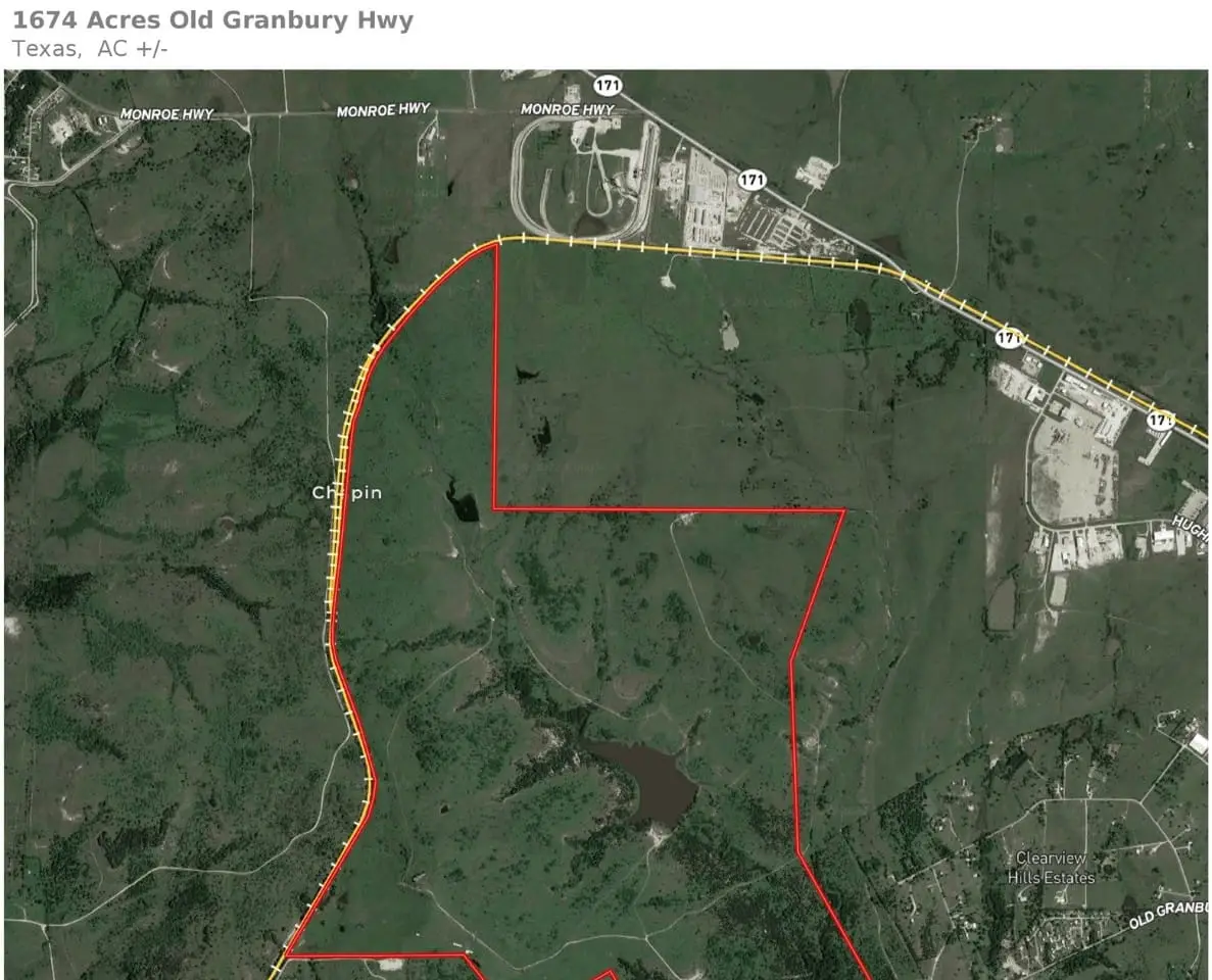 Tremendous development opportunity located in the heart of the westward movement. This hard to find 1,674 plus or minus acre parcel is prime for a mixed use development and is locatd only 30 miles from downtown Fort Worth, Texas. Cresson is a rapidly growing area due to its convenient location to Fort Worth via Highway 377, a new loop and ease of railroad accessibility. This tract features rollling terrain and scattered hardwoods providing perfect settings for residential development. 1,300 feet of road frontage and being located less than 1.5 miles from the new loop makes accessibility extremely easy. Over two miles of Atchison, Topeka and Santa Fe rail frontage make the industrial opportunities endless.