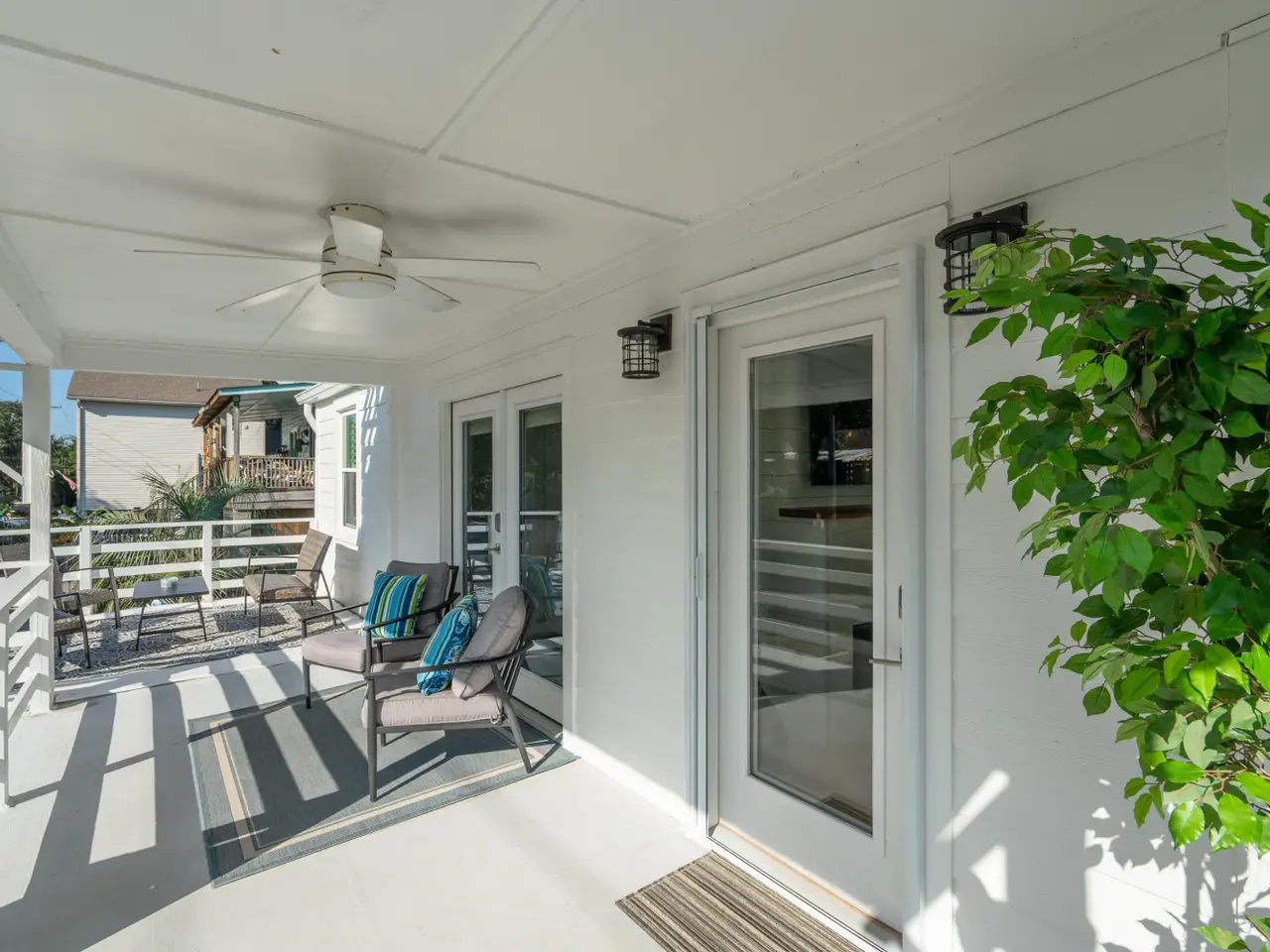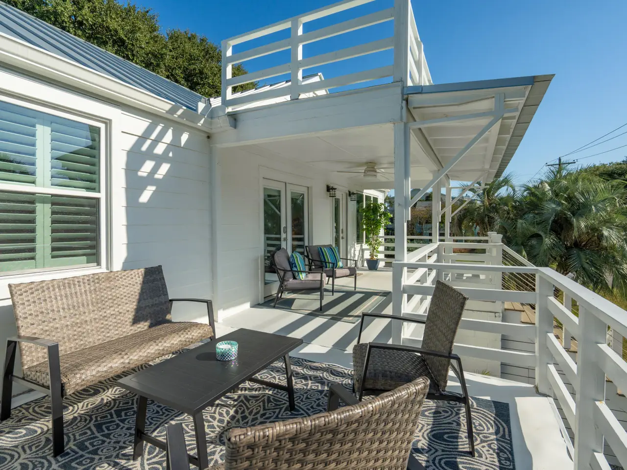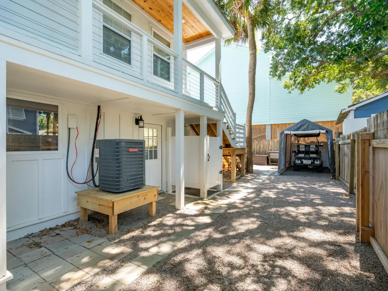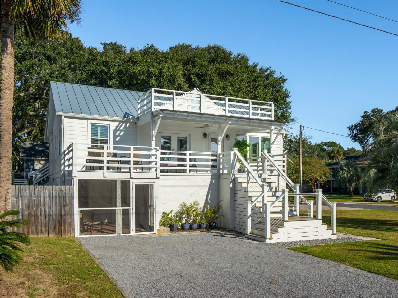 Rare DUPLEX on Isle of Palms - Steps to the Beach! Welcome to your slice of paradise! This stunning coastal duplex sits on a large corner lot just one block from the 25th Avenue beach access. A rare find, this original duplex has been fully renovated with modern finishes while retaining its island charm. With new roofing, flooring, kitchens, bathrooms, electrical, plumbing, garage, and custom porches, this home is move-in ready with endless potential. Live in one unit and rent the other, create a dedicated guest or in-law suite, or convert to a spacious single-family home - the choice is yours! **Note: Listing agent is the home owner / seller.**Enter the upstairs unit through the covered front porch with conversational seating as well as an open deck area with views of palm trees in every direction. The upstairs has beautiful new hardwood flooring throughout. The open floor plan and large windows paint the room with natural light and great views of the surrounding trees. The gourmet kitchen is appointed with a professional gas range and vented hood, dishwasher, 42 inch built in refrigerator with filtered water and ice machine, built in microwave drawer with hidden control panel, a large island with sink and seating on three sides and a bar area with under counter beverage refrigerator. Enjoy dining and entertaining in the spacious, treehouse-style dining area surrounded by beautiful views and decorated with a gorgeous natural wood ceiling. Extra large storm resistant sliding glass doors provide access from the dining area to an uncovered deck for grilling and enjoying the sunshine. The upstairs primary bedroom is large enough to accommodate a king sized bed and large dresser. A walk in closet with custom organization provides drawers, shelves and racks for clothing storage as well as a full sized washer and dryer. The primary bathroom includes an oversized shower, dual sinks, and custom built closet & drawers. The second bedroom is large enough to accommodate a king sized bed with a reach-in closet for clothing and two windows offering plenty of light. Both bedrooms have custom wood shutters on the windows. Flexible third bedroom/office with French doors to porch and full sized stairs to extensive attic space, conditioned and insulated for storage, and an additional closet under the stairs. The second upstairs bathroom includes an extra deep soaking tub and mermaid tiles on the back wall. Enter the downstairs unit through a screened porch with outdoor seating and a wall fan to keep you cool on a warm summer day. The large, open living room, dining, and kitchen area are designed for entertaining with plenty of room for seating and a full sized kitchen. Luxury vinyl flooring provides a light and beautiful look that is also easy to care for. Down the hall, there are two large bedrooms that each accommodate king sized beds. One has a reach-in closet and the other has a walk in closet. A full bathroom in the hall is shared. A bonus room for overflow, office, or playroom area provides access to the downstairs laundry and utility storage area. Three exterior doors on the laundry area allow for easy access to bikes and could be divided to provide half to upstairs and half to downstairs units. A one car garage addition runs the length of the back of the house with additional space for a workout area and a place to store all of your tools and equipment, surfboards, and beach chairs. A vinyl carport in the back yard protects your golf cart or low speed vehicle from the elements and an extra large fence gate makes it easy to get in and out of the yard. Gravel driveways in the front and on the side of the house offer ample off-street parking, a premium on IOP. In the fenced-in side yard, an extra large above ground pool provides a great shaded place to swim after the beach or a quiet space to lounge and enjoy the midday sunshine. The hot tub with jets and lights is a perfect year round outdoor space to wind down and relax under the palm trees. A large outdoor shower provides privacy while offering a convenient way to rinse off after the beach or pool. Whether you're looking for a primary residence with income potential, a vacation rental investment, or a multi-generational retreat, this property offers flexibility and value in a highly sought-after location. Don't miss this rare opportunity to own a fully updated duplex on Isle of Palms where lifestyle meets luxury, just steps from the sand!