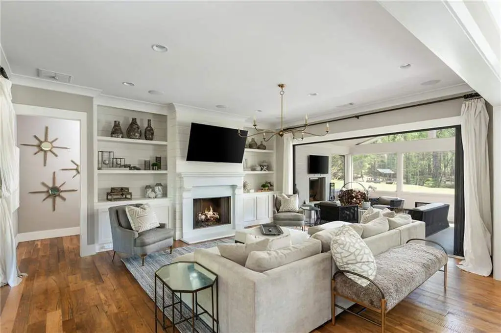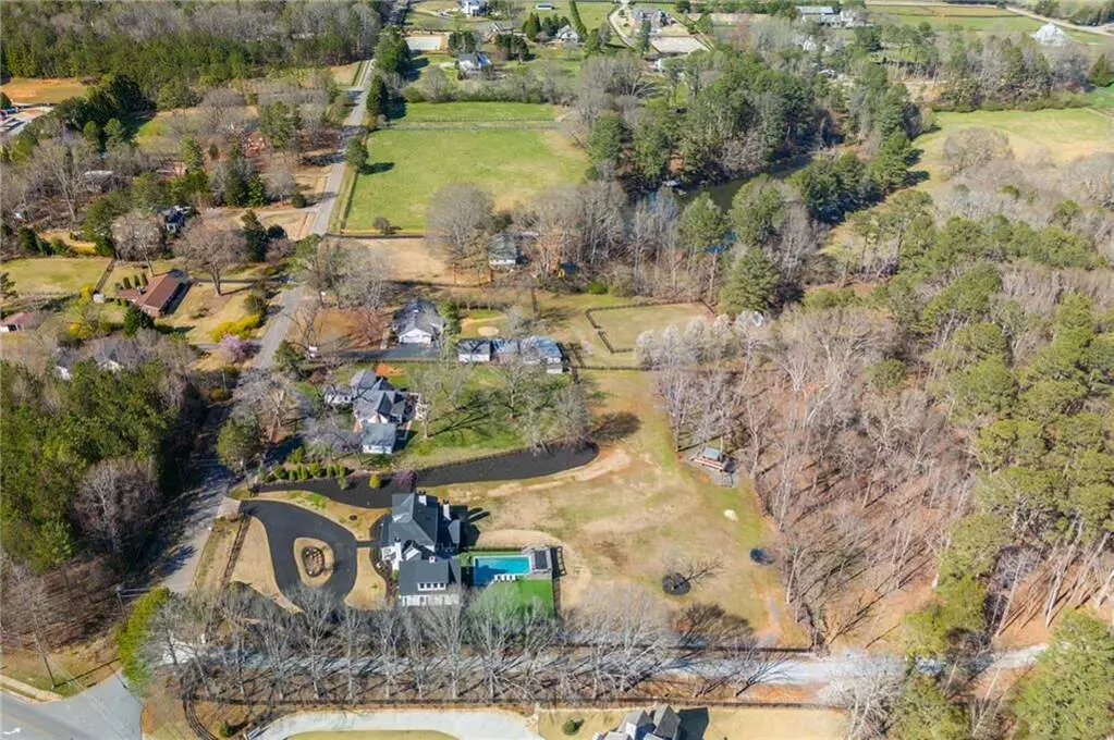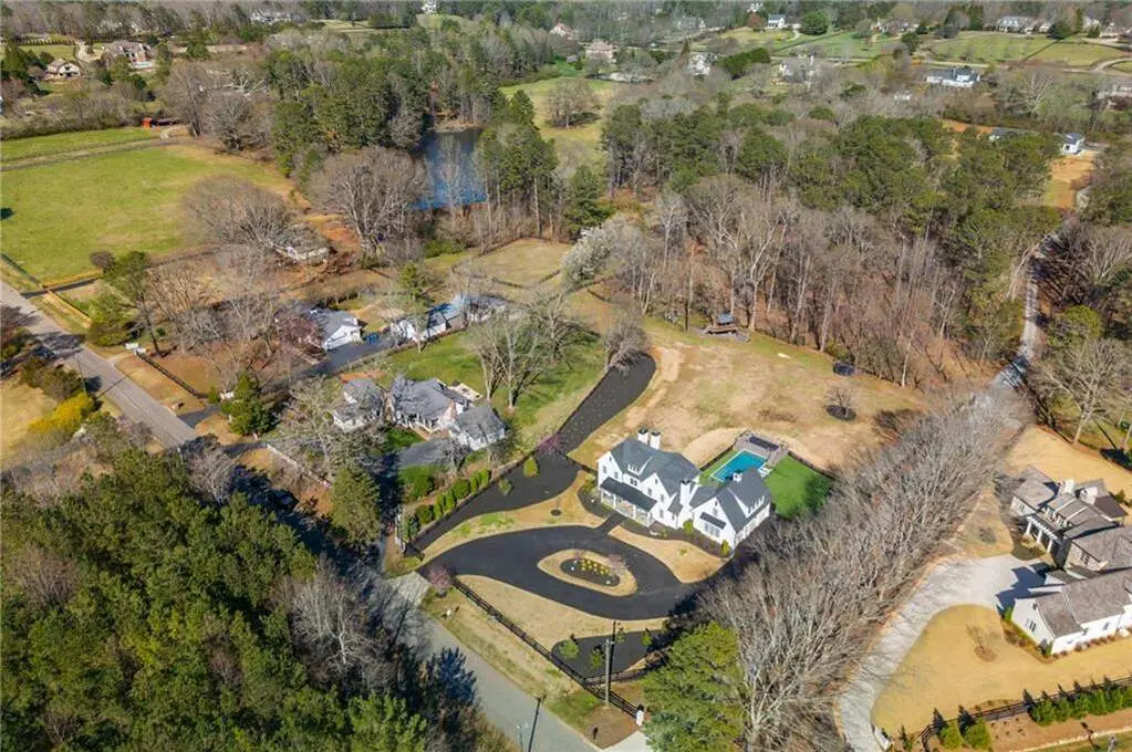 Experience the best of Milton living at 13815 Cowart Road, a truly one-of-a-kind property where thoughtful design meets unmatched outdoor living on over 3 spectacular, flat, private, and buildable acres. Tucked away on a peaceful dead-end street with no thru traffic, this coveted walk-out home is surrounded by natural beauty including protected wooded land across the street owned by Summit Hill Elementary that will never be developed. From the moment you arrive, the paved circular driveway and manicured landscaping welcome you with timeless curb appeal. Every detail of this home has been professionally designed with high-end finishes, custom lighting, and hardwood flooring throughout. The main level has an abundance of natural light and was made for entertaining and everyday comfort. Accordion doors open the living room to an enclosed porch with a wood-burning fireplace, creating a seamless indoor-outdoor flow. The chef's kitchen is a true showpiece, featuring dual islands, leathered marble countertops, Wolf appliances, custom cabinetry, and designer lighting. A walk-in butler's pantry offers exceptional storage and functionality. The formal dining room shines with its own fireplace and space for large gatherings, while a spacious mudroom includes laundry, extra fridge, workstations, and built-ins for effortless organization. The primary suite on the main level offers a luxurious, private retreat with rare separate his and hers closets with custom closet systems. The en-suite bath features custom tilework, designer mirrors, and high-end lighting. Floating stairs lead to three upstairs bedrooms, two bathrooms, and a secondary laundry room, while a separate staircase leads to a private guest suite above the garage with its own living space-perfect for guests, teens, or multi-generational living. Outside of the spectacular home, the land and outdoor wonderland is what makes this property truly unforgettable and special. The backyard is a private oasis designed with bot