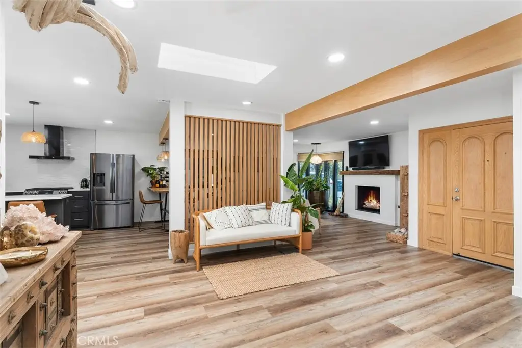 Welcome to 17630 Mapes Ave! This beautifully renovated single-story home with stunning curb appeal offers 3 bedrooms, 2 bathrooms, and 1,565 square feet of refined living space. Nestled in a quiet, well-maintained neighborhood, this turnkey property boasts a newer roof, an upgraded whole-house soft water system, a tankless water heater, and newer stainless steel appliances throughout the kitchen. The whole home is cooled with 5 split AC systems - one in each bedroom as well as the kitchen and living room. Inside, you will find an open floor plan with modern finishes throughout. Each bathroom has recess lighting; the primary bathroom has a ceiling mount shower head while the shared bathroom contains a modern tub shower. In one of the secondary bedrooms, you will have a door granting you access to the garden as well as a walk in closet. A brilliant skylight in the kitchen area allows natural light to fill the room. The home also has new plumbing, replaced the copper pipes with PEX. The backyard is a peaceful retreat featuring a lush garden, including a garden light, with mature fruit trees and a spacious grass area perfect for entertaining as well as lounging. Located in the heart of Cerritos, you are close to the Cerritos mall, a community park, Cerritos library, the City Plaza and so much more. Don't forget, you'll have quick and easy access to the 605, 91, and 405 freeways. You won't want to miss out on this opportunity!