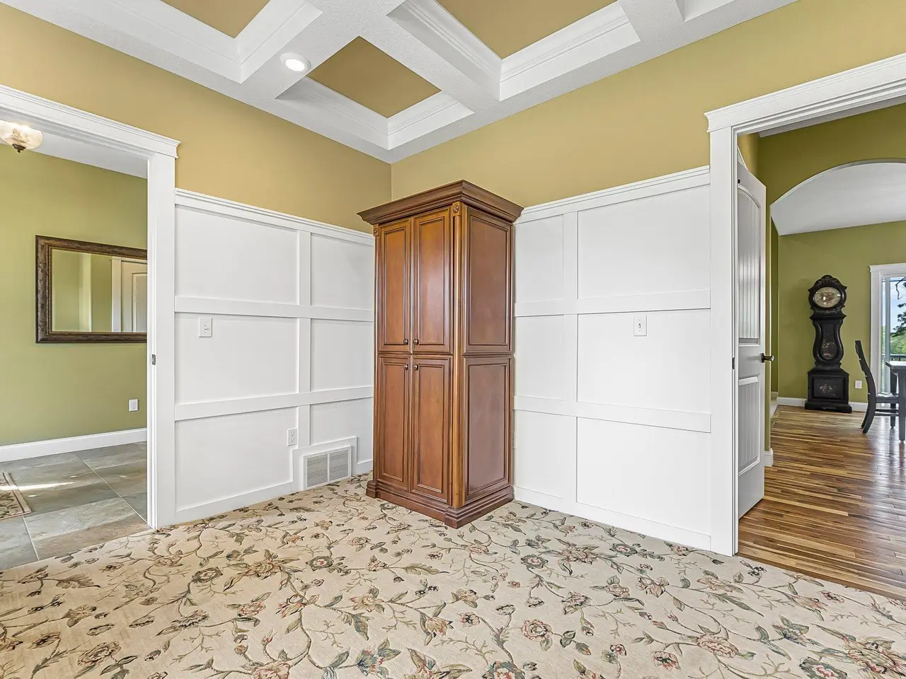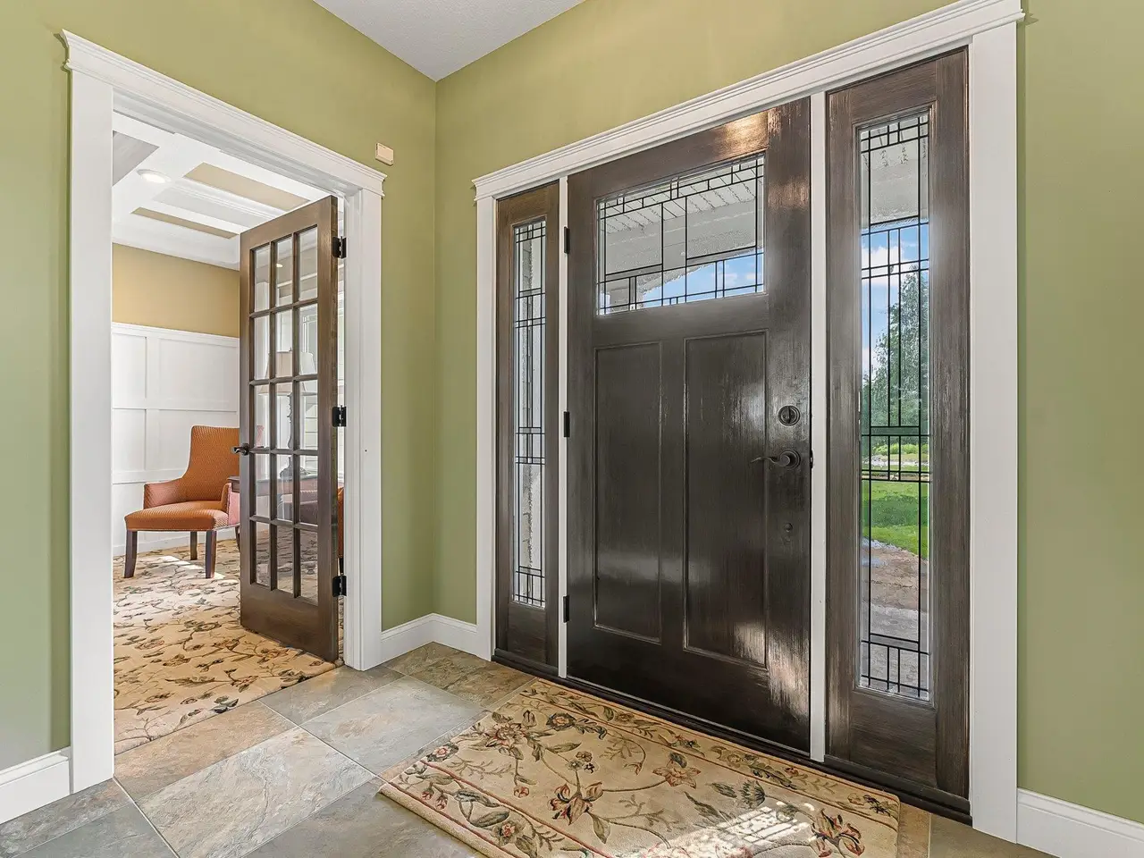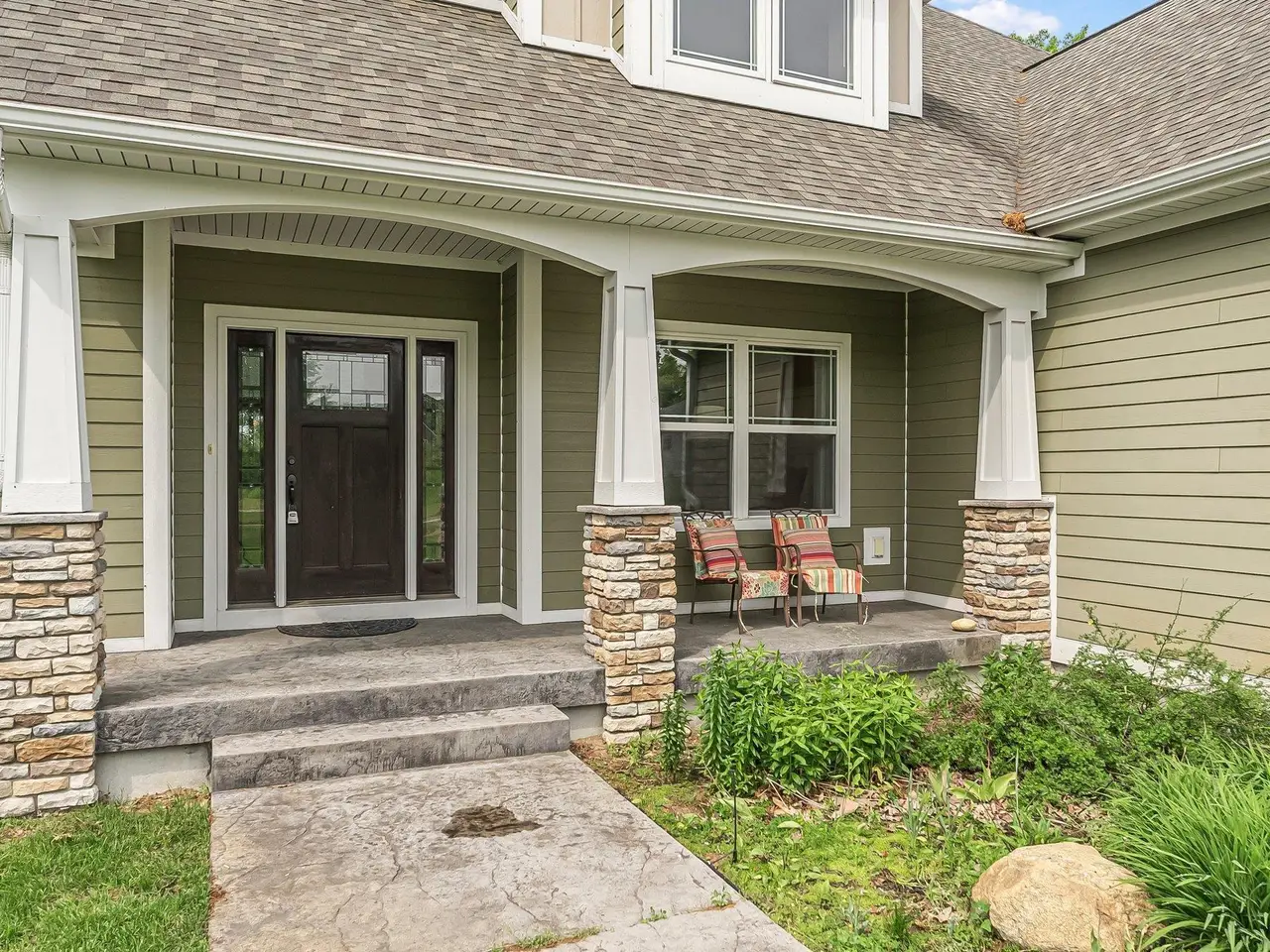 Experience luxury lakefront living in this stunning 5-bedroom, 4.5-bath home on Huellmantel Lake, featuring vaulted ceilings, breathtaking water views, and an open-concept living room. The gourmet kitchen offers top-of-the-line Wooden Hammer cabinetry, granite countertops, and a spacious island, along with an elegant foyer, mudroom, and main floor laundry. Enjoy two private office spaces, a main-level en suite, and a walk-out lower level with a large family room and wet bar. Complete with a 3-car garage and private lake frontage, this home combines comfort, style, and an unbeatable setting.
