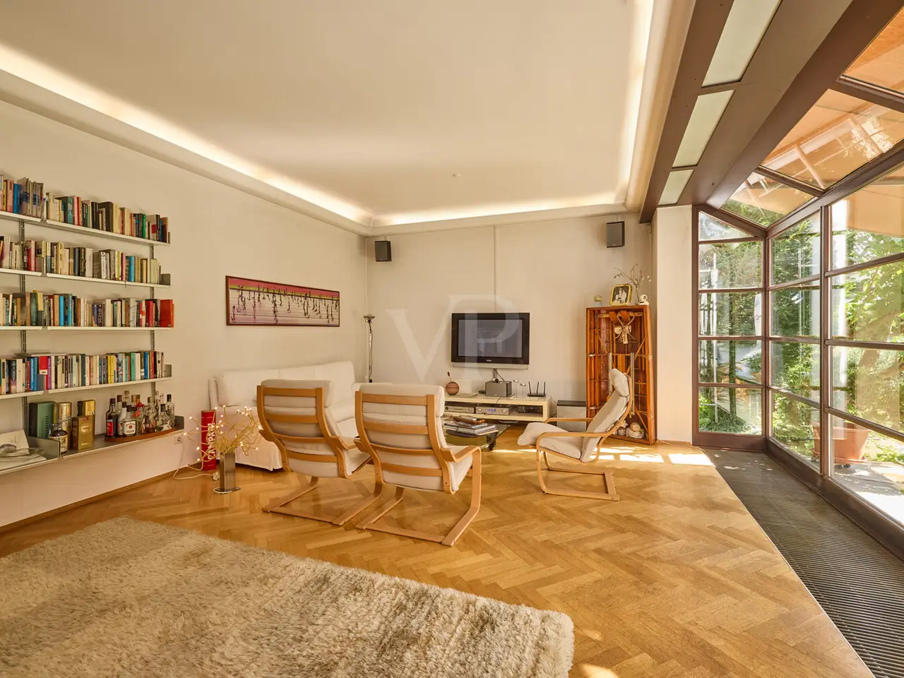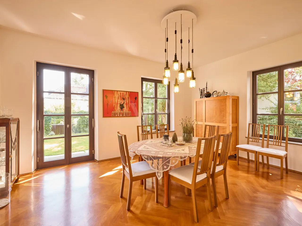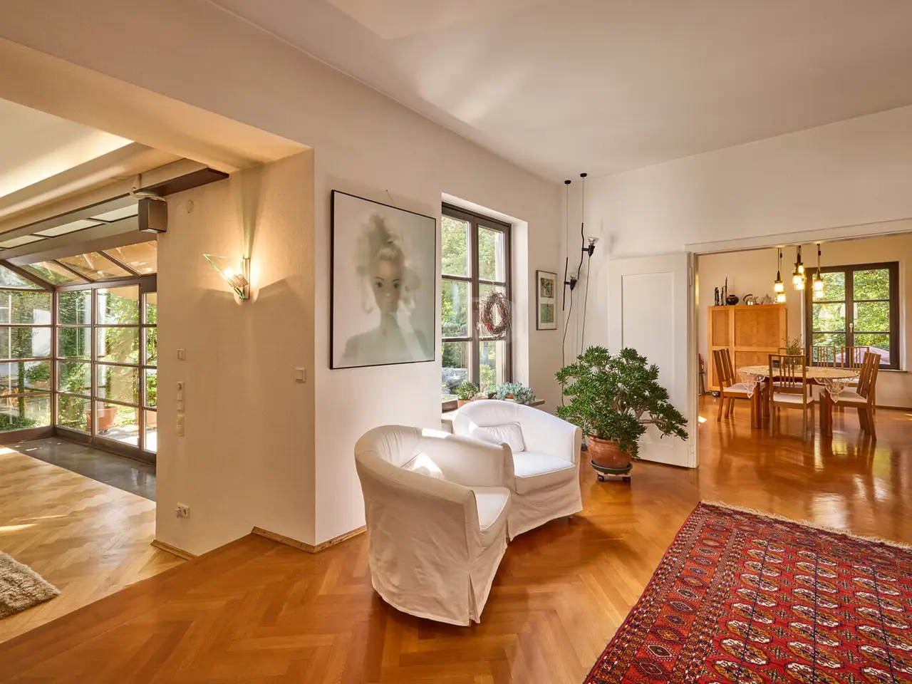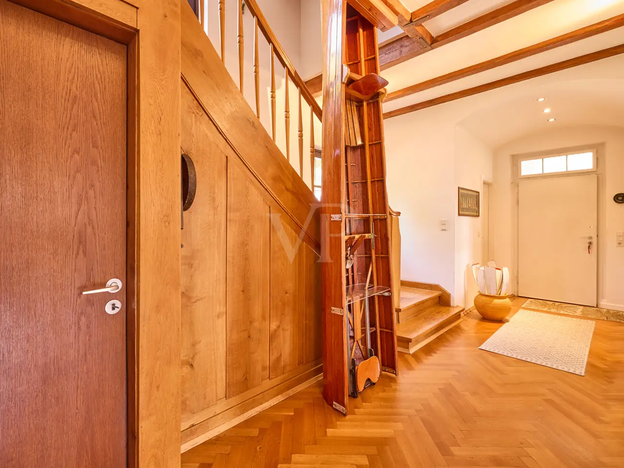 **Exclusive villa near Mathildenhöhe - Stylish living ambience on a spacious plot** Welcome to a rare opportunity to acquire a well-kept villa from 1934 that combines historical charm with modern living comfort. This house is not only an expression of timeless architecture, but was last modernized in 2024 and presents itself in a very well-kept condition. **Living space and room layout** With a living area of approx. 304 m² and a total of 8 rooms, the villa offers plenty of space for families or discerning couples with individual space requirements. The floor plan impresses with its clear lines and bright rooms. On the first floor, you will find prestigious living spaces with high-quality parquet flooring. The living and dining area opens out onto the sun terrace and garden, creating a seamless transition between indoor and outdoor areas. **Equipment and special features** The kitchen offers modern equipment and has been extended by a high-quality extension, including an additional terrace - perfect for cooking together and cozy outdoor meals. Five bedrooms offer individual retreats for all residents, while four high-quality, modernized bathrooms ensure comfort. On the upper floor and top floor, each bathroom is equipped with a bathtub with whirlpool function. The converted top floor is ideal as a work area, guest room or for creative activities. The villa has a central heating system that provides cozy warmth in all rooms. The high quality of the fixtures and fittings is particularly noteworthy: from the stylish interior to the high-quality fittings in the bathrooms and the carefully selected building materials, the overall concept has been well thought out. **Plot and building** The approx. 675 m² plot can be used for a variety of purposes and has been lovingly landscaped. Several terraces - including a spacious roof terrace - invite you to spend sociable hours outdoors. The garden with its mature trees and plants creates a pleasant atmosphere at any time of year and offers various retreats. The hobby/storage room, laundry room, pantry and sauna are located in the basement of the villa. **Location and surroundings** The property is located in the immediate vicinity of the Mathildenhöhe, a Unesco World Heritage Site known for its cultural significance and architectural quality. From here, you enjoy excellent connections to Darmstadt city center as well as short distances to schools, shopping facilities and public transport. Despite its proximity to the city, the beautifully landscaped garden guarantees privacy and space to relax. **Conclusion** This villa combines prestigious living with functional aspects and a high degree of comfort. Its unique location on one of the most important cultural monuments in the region, the very well-kept structural condition and the generous living space make the property an attractive domicile. Convince yourself of the many possibilities - we will be happy to arrange a viewing appointment for you.