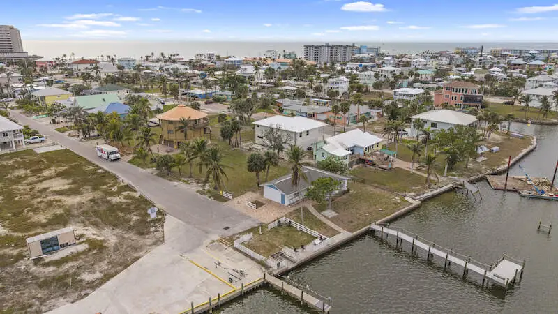 Nestled on the shores of Fort Myers Beach, this waterfront plot of land offers a captivating blend of coastal charm, tropical vibes, and is just waiting for someone to build their property in PARADISE! Renowned for its proximity to the sugary sands of Fort Myers Beach (7 min walk), this property also boasts 80 feet of Bay frontage, offering unparalleled access to the water. HOME IN PICTURES HAS SINCE BEEN REMOVED AND READY FOR NEW BUILD!! A Composite wood dock built in 2021 provides the perfect vantage point for admiring the panoramic views of Estero Bay and Mantanzas Pass, where the shrimp fleet adds a touch of local color. Embark on a short boating excursion to enjoy and discover the many dining and entertainment venues nearby. Whether it's enjoying endless sunrises and sunsets, watching the dolphins and manatees while fishing right off your dock, this is a haven for those seeking the ultimate waterfront living experience. Being very close to the North end of the Island means shopping and dining minutes away, and easy access on and off the island. This lot is oversized and able to accommodate an extremely large single family residence (with room for a pool!) to spread out, or, split the lots and build 2 homes for family or investment. LOCATED IN A WEEKLY RENTAL ZONE, Your choice of endless opportunity is here!!! If you have any questions whatsoever, please feel free to contact the listing agent. Existing structure scheduled to be removed. WHAT'S THE OLD SAYING? WHEN OPPORTUNITY KNOCKS, OPEN THE DOOR!!