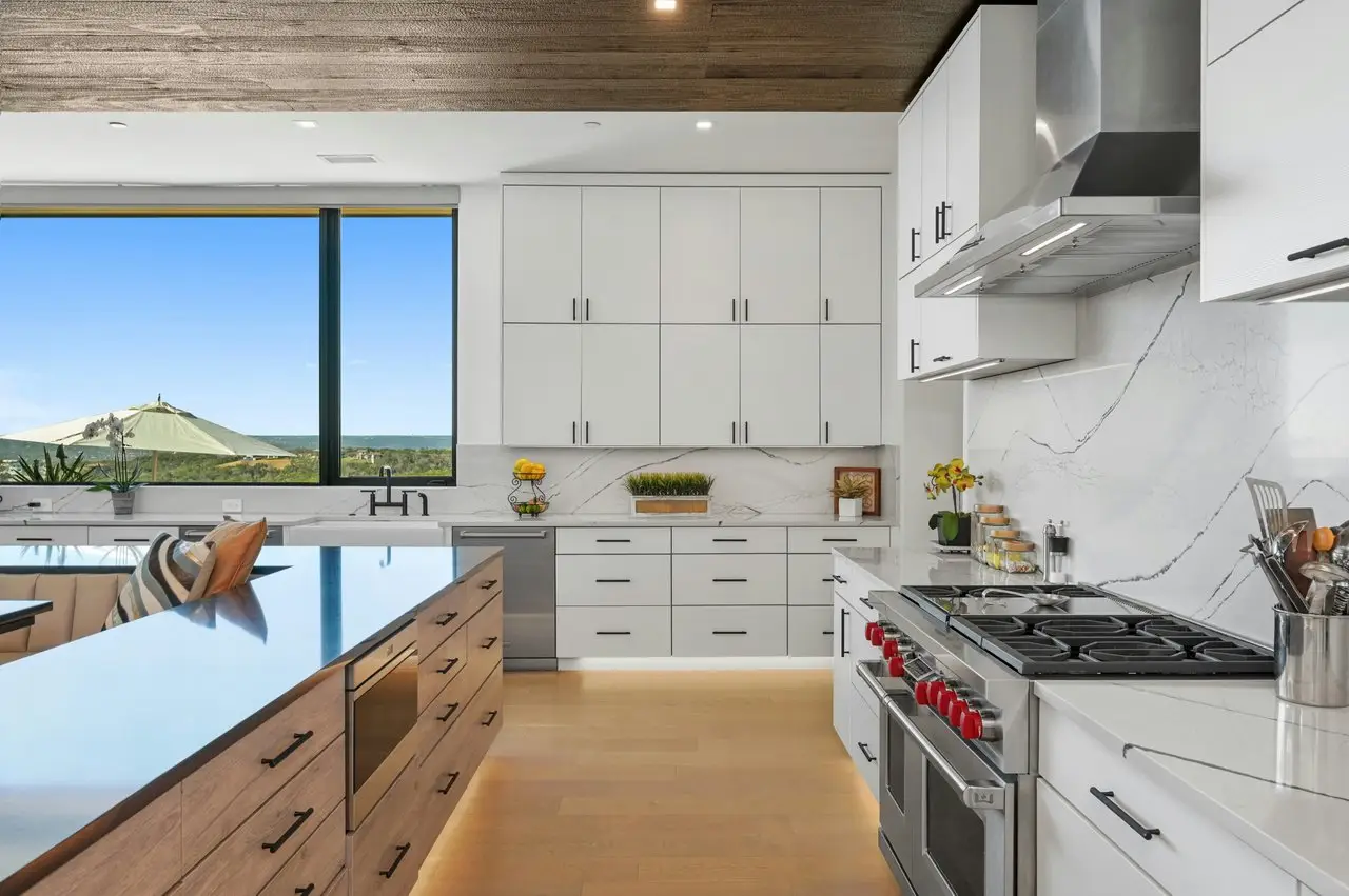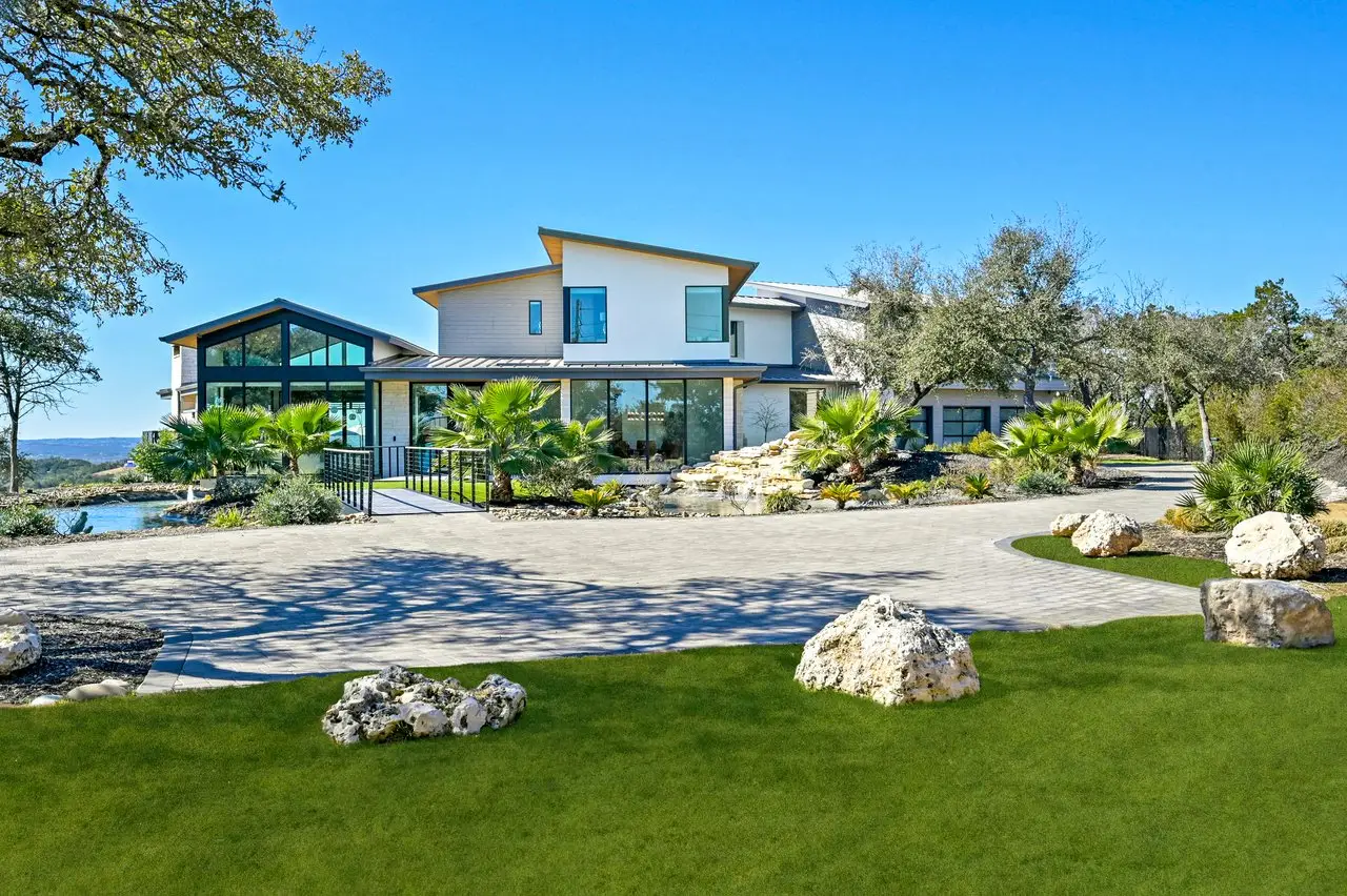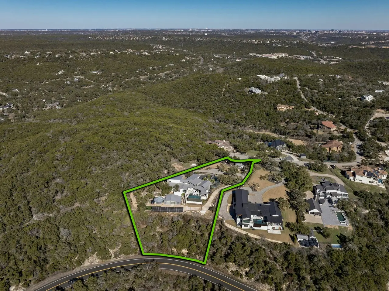 Perched atop the rolling hills just off City Park Road, 8209 Two Coves Drive is a newly constructed contemporary masterpiece that seamlessly blends striking architectural elements with the natural beauty of the Texas Hill Country. Plus, with a 2024 tax rate of just 1.53% (buyer to verify), this estate represents a rare opportunity to own a state-of-the-art home in a coveted location with some of the lowest property taxes in Austin. A privately gated driveway winds through the lush landscape, leading to a dramatic front entry defined by an expansive mote and waterfall. A modern bridge guides visitors over the tranquil waters toward the residence, setting the stage for the home's contemporary yet serene ambiance. Every detail of the front yard has been meticulously designed with low-maintenance plantings, allowing the home to harmonize effortlessly with its surroundings. Once inside, walls of glass frame breathtaking views, creating an immersive indoor-outdoor living experience. This 4-bedroom, 4-bathroom residence, with two additional powder rooms, offers luxurious living spaces, including a dedicated office overlooking the treetop views maximizing natural light and flow. The resort-style amenities continue outside, where ample covered patios, an outdoor kitchen, a waterfall-edge pool, and a hot tub provide the ultimate setting for entertaining against the backdrop of epic Texas sunsets. Designed with both luxury and functionality in mind, this home is equipped with cutting-edge technology and sustainability features that set it apart. A Generac whole house generator ensures uninterrupted power, while a solar panel system adds an eco-conscious touch to energy consumption. The property benefits from its own well for both potable water and irrigation, paired with a 26,000-gallon rainwater collection system that supports sustainable living. A whole-house reverse osmosis system with water softening and UV light sterilization ensures the highest water quality throughout the home. The exterior construction is as refined as the interiors, boasting a mix of stucco, stone, and metal cladding, complemented by Nichiha architectural siding accents that replicate the warmth of weathered wood while offering superior durability. A standing-seam metal roof enhances the home's sleek aesthetic while providing long-lasting protection against the elements. Beyond the main residence, the property extends its offerings with a casita that currently serves as an office, plus an impressive, detached flex space, complete with a golf simulator and gym, making it an oasis for both relaxation and recreation. Car enthusiasts will appreciate the 3-car garage, providing ample space for vehicles and storage. Integrated Control4 home automation manages the lighting and AV systems in key living areas, while six strategically placed security cameras offer peace of mind. Whether enjoying the panoramic Hill Country views from the outdoor living spaces, indulging in the luxury amenities, or embracing the home's eco-friendly innovations, 8209 Two Coves Drive is a one-of-a-kind modern retreat designed for the most discerning homeowner.