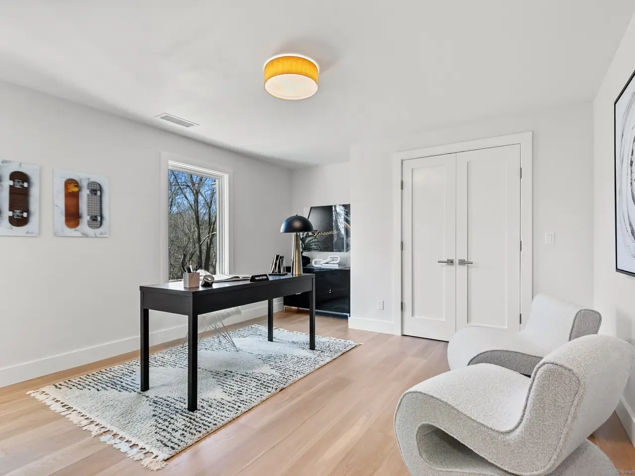New construction...ready to move in...near the heart of downtown Ridgefield. A sophisticated design of modern open living, heralded by walls of glass & flooded by natural light. Step inside to an open sleek staircase grounded by 5" white oak flooring, flowing into an eat-in kitchen that is a culinary haven...Impressive oversized quartz island, Thermador appliances, counter seating for 5+, and 2 built-in microwave ovens lead to the additional caterer's prep/coffee bar room where you can become your own barista. Includes ample counter space, a wine cooler, cabinetry, & walk-in pantry. Step back out to the living & dining rooms that merge seamlessly, highlighted by a two-sided gas fireplace providing ambiance. A 2nd full laundry, half bath, & mud room area complete the main floor. Upstairs you'll find a primary bedroom with spa-like bath & two walk-in closets. Three additional bedrooms, a second laundry room, & 2 full baths encompass the second level. Movie night takes place in the media/family room plumbed for a wet bar, a game room/fitness gym, half bath, & a future walk-in wine-tasting room. Massive outdoor deck right off the kitchen ideal for sitting around a fire pit with friends. 3-car oversized att garage with charging station. Just a short drive to historic downtown RIDGEFIELD consistently ranked by CT magazine as "One of the Best Places to Live". Sought after award-winning schools. Convenient I-684 commute, 70 min NYC.