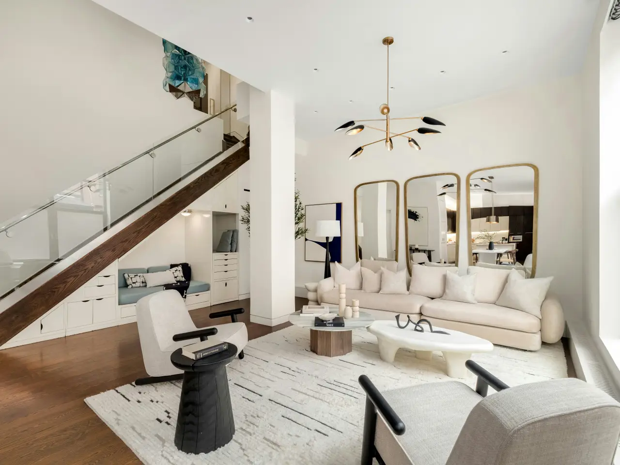 This expansive 3,300 SF townhouse offers a rare blend of privacy, space, and modern luxury in the heart of North Tribeca. With five bedrooms, five bathrooms, and a private 630 SF patio, the home is thoughtfully designed across three levels. Enter through a private Washington Street entrance or the 24-hour attended condo lobby. The main level features a dramatic 41-foot-long great room with soaring ceilings, ideal for entertaining and displaying art. The open-concept kitchen is equipped with premium appliances and generous storage. Two well-proportioned bedrooms overlooking the private garden, and two full baths complete this floor. Upstairs, the secluded primary suite offers a peaceful retreat with a spa-like en-suite bath and a windowed walk-in closet. The lower level serves as a versatile media room or guest suite, featuring a Murphy bed, full bath, built-in wine storage, and direct access to the landscaped two-level terrace. Designed for seamless indoor-outdoor living, the terrace includes a gazebo, lush plantings, and outdoor furnishings, including a built-in banquet and a dining table for ten. Set on a quiet cobblestone street, The Fairchild is a boutique condominium with a full-time doorman, private storage, and bike storage. Just one block from Hudson River Park and moments from top restaurants and the Fouquet Hotel, this home offers the best of townhouse-style living with the convenience of a full-service building.