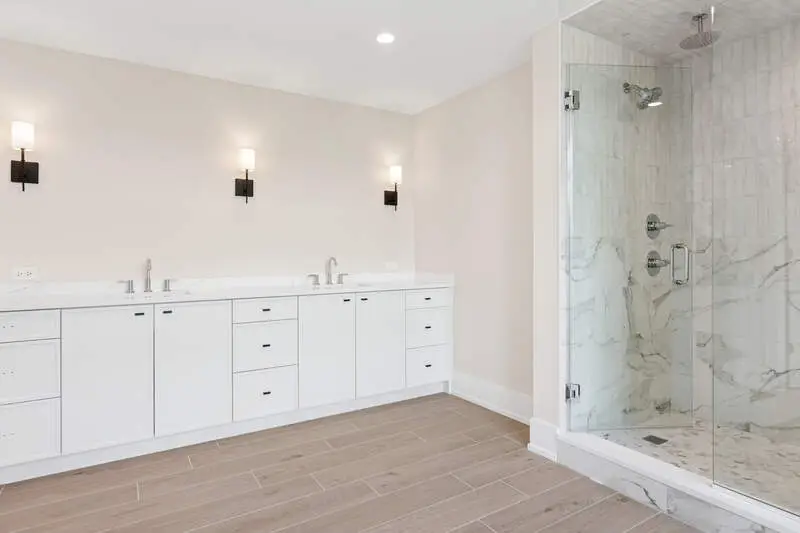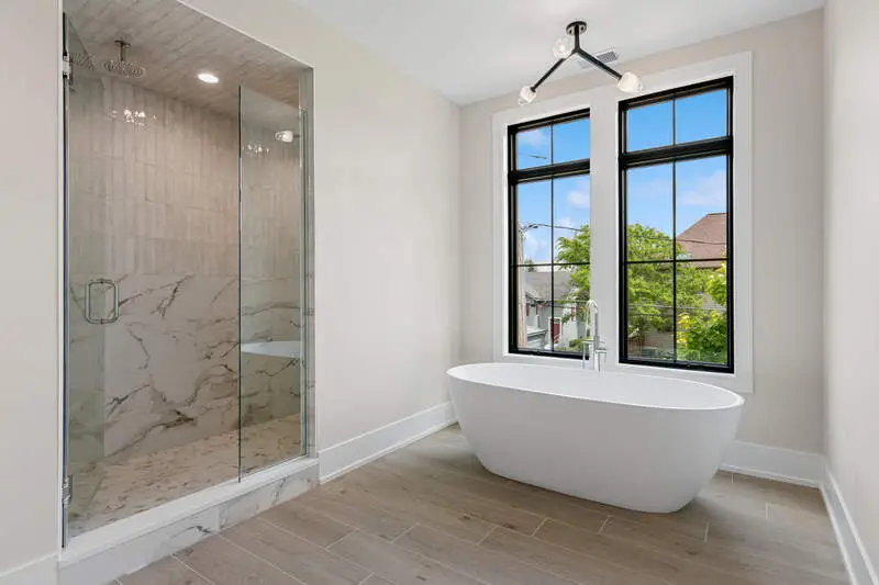 Luxurious primary suite with spa-like bath