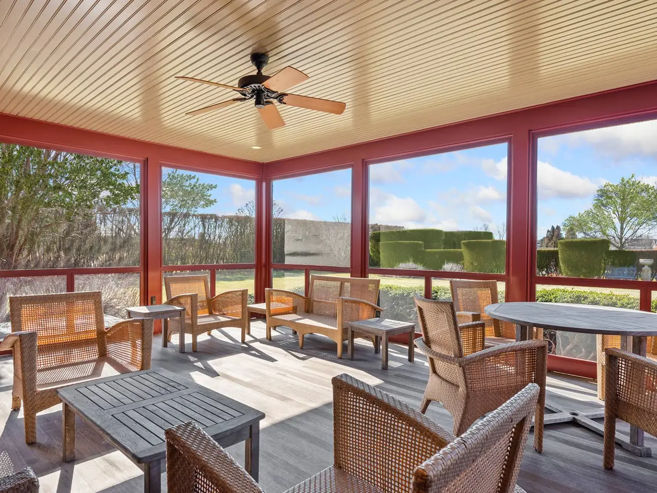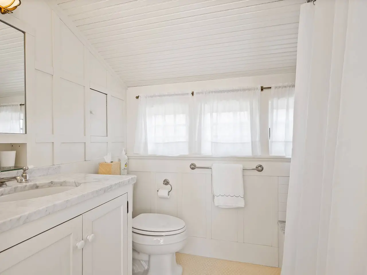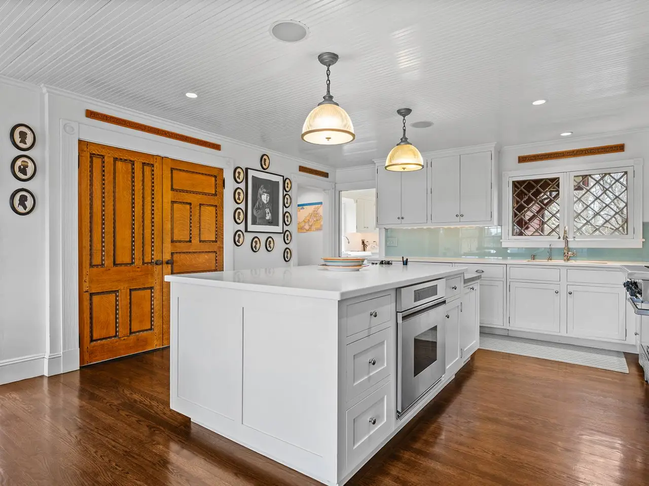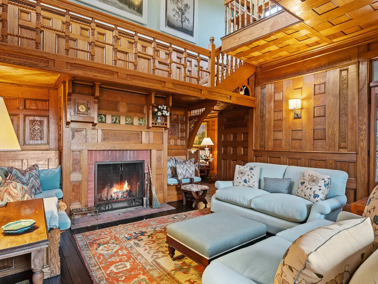 Nestled in the heart of Water Mill South, this historic luxury estate is a rare opportunity to own a masterpiece of Shingle Style architecture. Renovated in 2007 and conceived and built in 1884 by Henry Turbell Rose, Rosemary Lodge stands as a testament to exceptional craftsmanship and enduring elegance. Just minutes from the ocean, 0.93-acre grounds featuring a 4,110-square-foot residence, pool house, and a pool. This beautifully designed home boasts 5 bedrooms, 4 bathrooms, and 1 half bathroom. Impeccably preserved, the home retains its museum-quality original paneling, hand-carved woodwork, stained glass windows, and intricate moldings. Each of the five bedrooms was individually crafted. The central living hall, paneled in ash, sets the tone for this architectural gem, while four working fireplaces feature hand-carved mantels, hidden cupboards, hand-painted designs, and custom tile inserts. Throughout the home, delicate floral motifs, ships, butterflies, and birds are carefully etched into the wood, along with the initials 'RL,' a homage to its storied past. The grand master suite is a private sanctuary, complete with a spa-like ensuite bath, a spacious walk-in closet, and a romantic terrace overlooking serene Hamptons farmland. A second-floor media room with a big-screen TV and fireplace offers the perfect retreat for gatherings. Designed for elegant entertaining, the chef's eat-in kitchen features a massive center island, professional gas stove with broiler, and seamless access to the outdoor lounge and dining area. Outside, a meticulously maintained rose garden greets visitors at the entrance, while the lush backyard oasis boasts a heated pool, pool house with a full bath and outdoor shower, and an alfresco cooking station with a large refrigerator and vegetable garden. Additional modern amenities include a state-of-the-art darkroom for film and photographic development, a dedicated exercise and bicycle shed, ample storage, and a newly installed electric vehicle charging station. Recognized in Houses of the Hamptons, Rosemary Lodge is listed on both the State and National Register of Historic Places for its exceptional integrity and preservation. This architectural treasure offers the rare chance to own a piece of Hamptons history, blending timeless elegance with modern luxury.