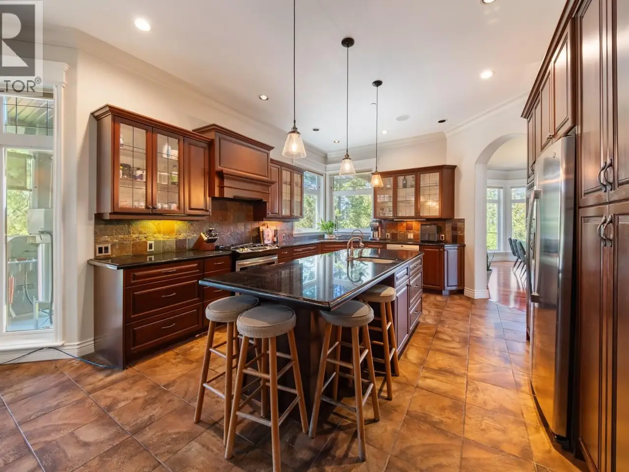 Welcome to this private estate on nearly 5 flat acres in the heart of SE Kelowna. This meticulously crafted 4/5 bed, 4 bath residence offers over 5,100sqft of classic design and updates. A sweeping tree-lined driveway leads to a timeless estate featuring a 1283sqft 3-car garage plus a 40-ft deep tandem bay, perfect for an RV, boat, or workshop. The home blends classic and modern, with a grand curved staircase, formal living and dining rooms, & a chef’s kitchen complete with high-end appliances. Doors open to the expansive backyard oasis with a heated 18x36 saltwater pool, patio space, and a covered gazebo complete with a hot tub—perfect for entertaining or unwinding in total privacy. Upstairs, the lake view primary suite features a walk-in closet, and a serene outlook over the surrounding landscape. Two additional bedrooms provide ample space for family and den or 5th bedroom plus an additional room. The walkout lower level includes a media room, a self-contained suite with separate laundry & kitchen, which could also be for guests, or poolside entertaining. Even provision in plans for elevator. Approx 3 acres are cleared and level—ideal for horses, outbuildings, or hobby farming. Zoning and size of land allows for engaging in agriculture, forestry, animal clinics, kennels and operating stables. Easy access to Crown Land and the nearby Crawford Trails/Myra-Bellevue Provincial Park offers excellent opportunities for hiking, biking, & horseback riding right from your doorstep (id:7434)