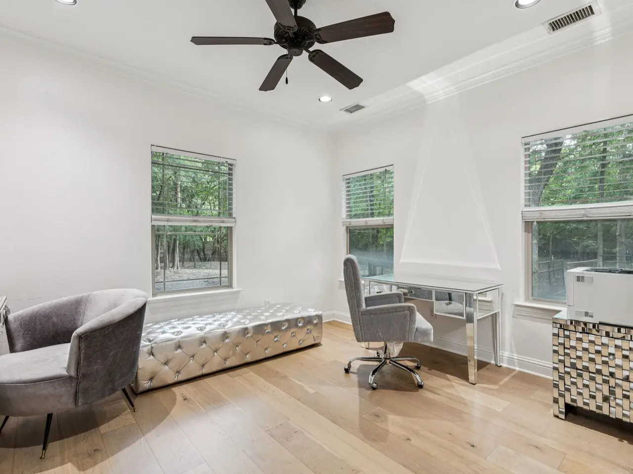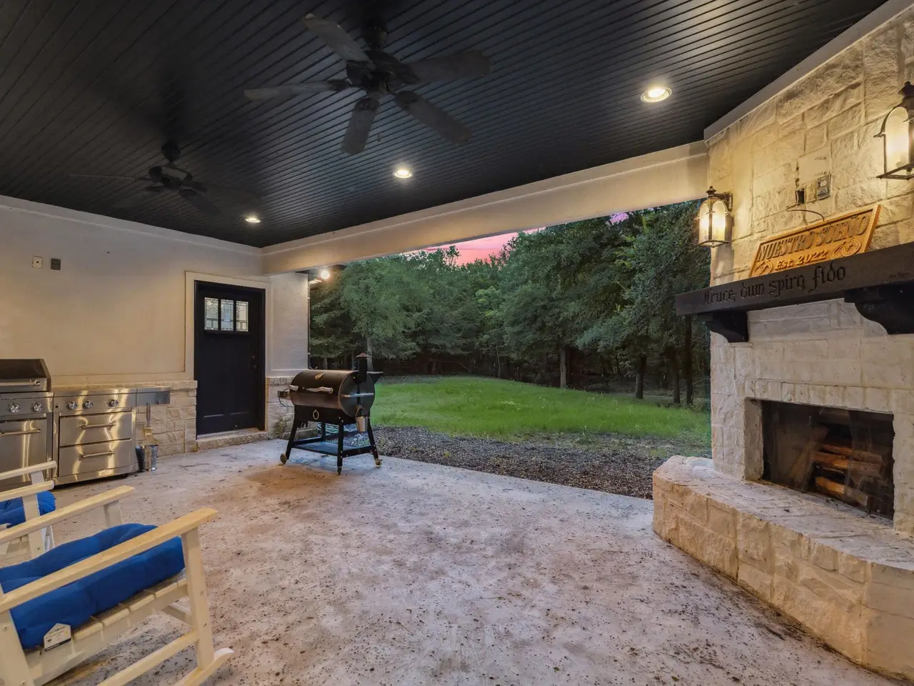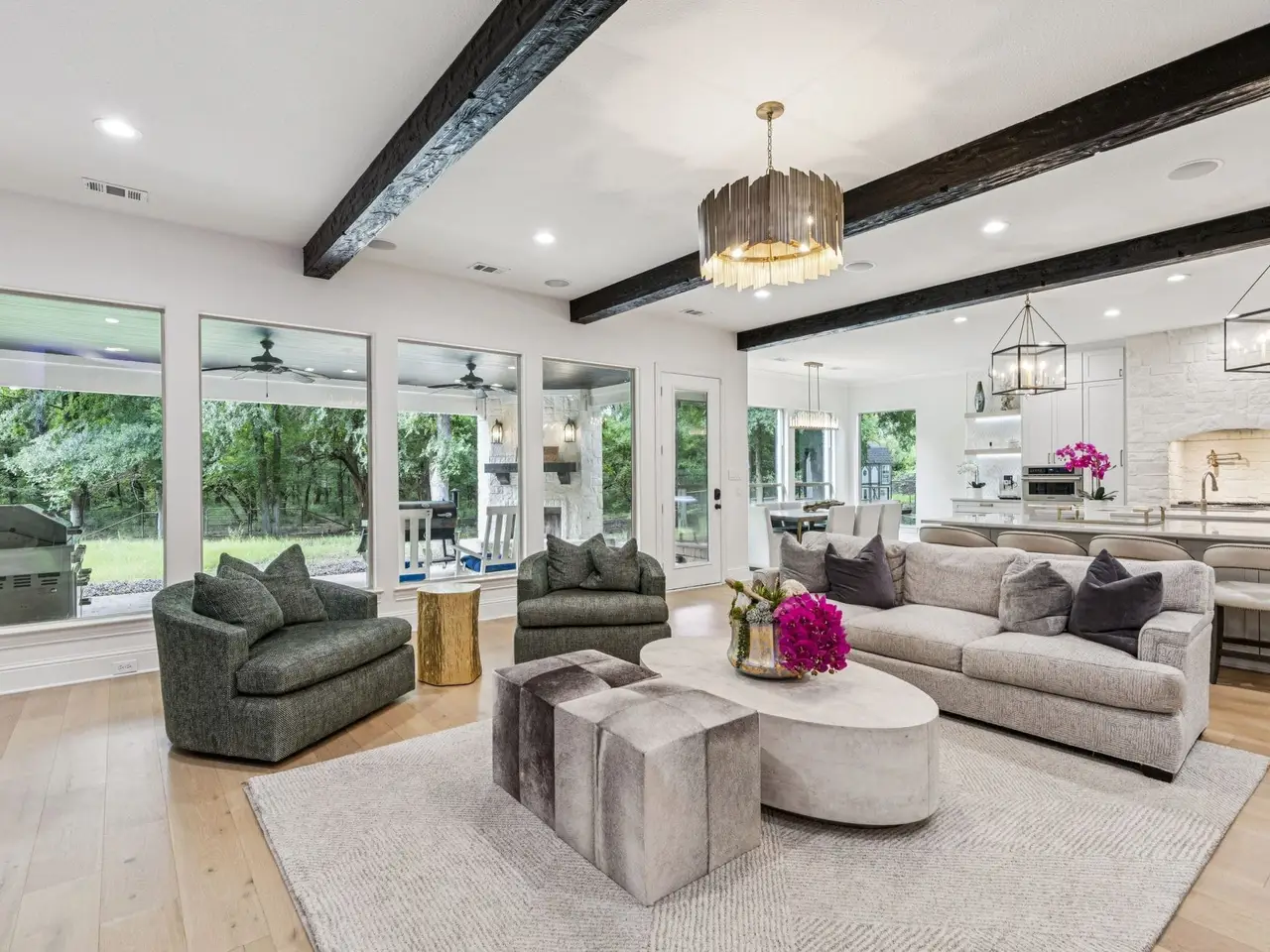 Nestled on 6 picturesque, wooded, Ag exempt acres in coveted Celina, this unique estate offers luxury living with rare versatility. A private drive leads to an elegantly reimagined home where custom finishes, open space, and peaceful surroundings create a truly special retreat. The kitchen is a showstopper, fully remodeled with soft-close cabinetry, two oversized quartzite islands, lime-washed stone range surround, built-in coffee bar with floating shelves and full marble backsplash, warm champagne bronze fixtures. Designer lighting and under cabinet floor level LED accents add an elevated ambiance. Waterproof wood floors run throughout, complementing exposed beams and large picture windows that frame views of the trees and outdoor living. The spacious living room features a whitewashed stone fireplace and dual built-in media walls. A dedicated study with built-in shelving conceals a hidden bonus room, perfect as a hobby space or secure storage. Outside, the options are endless. A large, insulated steel building is plumbed for water and wired for electric, ideal for a gym, RV or boat storage, workshop or build a barndominium. Power is never an issue with the 27 kw back-up generator. Starlink internet for reliable high-speed access. Springwell 3-Stage Water Purification system delivers crystal clear Well water. Small barn, chicken coop, pond, and seasonal creek all with no HOA and horse friendly. Enjoy the best of both worlds with acreage, privacy, and room to grow just minutes from Downtown Celina, all in acclaimed Celina ISD. This property blends elegant living with outdoor freedom. Your private Texas dream awaits.