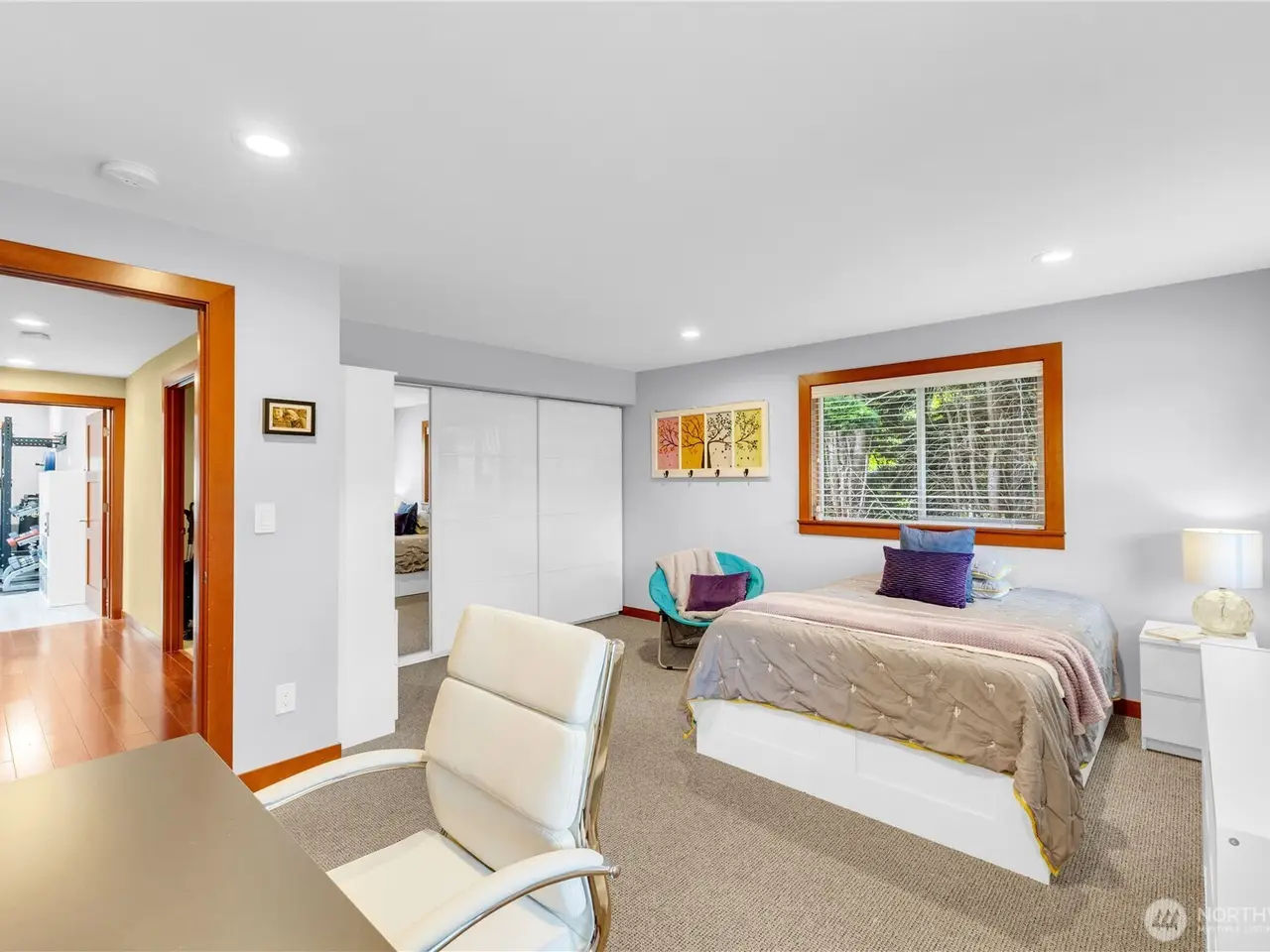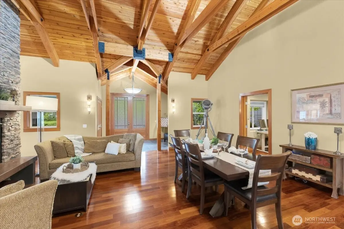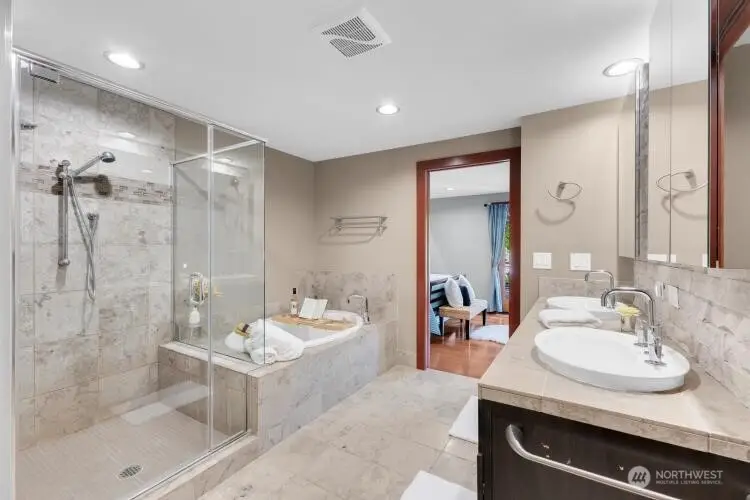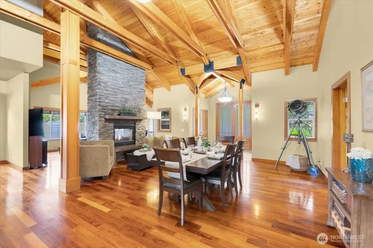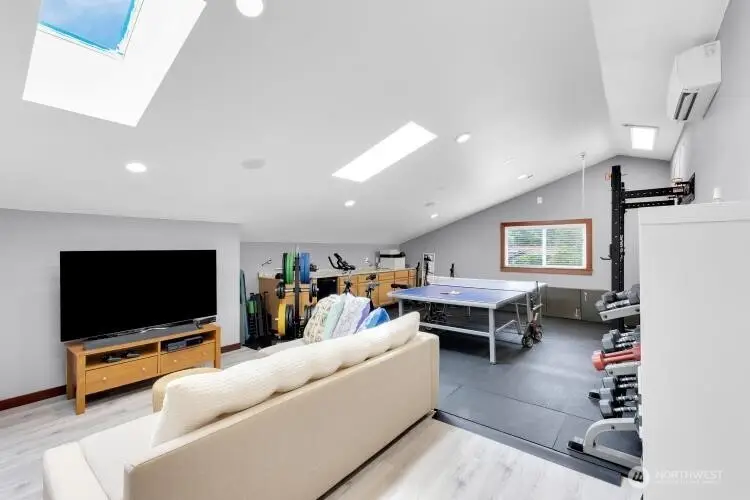 Price just lowered! Hollywood Hill Northwest Contemporary estate on a shy acre with no HOA. Over 5,250 sq ft of light-filled living, expanded & remodeled in 2018. Vaulted wood-beamed ceilings, polished concrete floors, and a dual-sided fireplace anchoring the open-concept layout. Includes 5 bedrooms, 3.5 baths, two main-level primary suites, & laundry for convenient living. Smart systems: 3-zone HVAC, RF lighting, built-in speaker system, & generator. Resort-style outdoor living features lap pool, sport court, gas firepit, built-in BBQ, dual patios, and 4,500+ sq ft of stamped concrete. Detached insulated shed with power. Minutes to wineries, trails, and Eastside tech hubs. Northshore schools. A rare blend of space, systems, and setting.