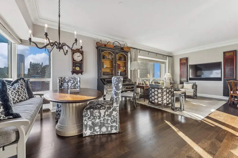 This extraordinary, elegant residence at Park Tower stands as a testament to sophistication and grandeur. Custom designed by Robert Klingel, elegance surrounds you in this expansive 5,250 square foot, 4 bedroom plus paneled library / office. This home has been meticulously crafted using only the finest materials and design. A grand foyer welcomes you into the home, setting the tone for the grandeur that lies beyond. A spectacular 30 x 20' living room is anchored by a fireplace and oversized windows that artfully frame the east-facing views of the lake and city. Two pairs of French doors with beveled glass leads you to the rich wood-paneled office, showcasing the craftsmanship that went into creating this sanctuary. The custom cabinets seamlessly integrate into the paneling, providing both functionality and aesthetic appeal. Each cabinet is a work of art, featuring handcrafted details and ornate handles that add a touch of luxury to the room. These cabinets are not only storage solutions but also contribute to the overall design, adding depth and dimension to the space. As you explore the office, you'll discover hidden gems - a discreetly concealed television and hidden storage. A graceful transition to the formal dining room dressed in embroidered silk wallcoverings by Holly Hunt that creates a backdrop of sophistication that sets the stage for memorable gatherings. The piece de resistance of this dining sanctuary is undoubtedly the crystal chandelier that hangs majestically from above, casting a soft, ambient glow that dances off the wallpaper, creating an atmosphere of intimacy and grace. The dining room flows into the eat-in kitchen offering south and east-facing views. Anchored by an oversized center island, the kitchen features quartzite countertops that complement the custom cabinetry with polished nickel detailing and a center chandelier. The extensive suite of appliances by Wolf and Sub Zero and a discrete butler's pantry that offers additional ovens, wine storage and prep space. The oversized balcony is just off the kitchen providing the perfect amount of space to relax and enjoy the city and lake views. An extension of the kitchen is a cozy breakfast nook that is nestled in the SE corner and flows seamlessly into the comforting embrace of the family room that exudes an atmosphere of casual elegance. The bedroom wing offers 4 bedrooms including a primary suite that is a study in grandeur. Featuring a 29x14 bedroom wrapped in windows to the west, an incredible organized closet, and a spacious ensuite bath with radiant heated floors. Elegantly appointed in marble with polished nickel fixtures throughout, the primary bathroom features two separate custom carved vanities, Rohl plumbing fixtures and a luxurious shower. Three additional bedrooms, South facing bedroom two is wrapped in elegant wallcoverings and is ensuite, while bedrooms three and four enjoy western views and sunsets. Completing the residence are a beautifully appointed powder room, a discreet utility room with side-by-side washer and vented dryer, and a separate service entrance for the ultimate in privacy. No detail has been overlooked, from the custom interior lighting, the luxurious drapery fabrics, the textured wall coverings to the motorized shades throughout and a Control 4 system that automates the home. This five-star dwelling surpasses all expectations. The NoMi Club, offering a state-of-the-art fitness center and an indoor pool, coupled with premium hotel services, elevates the resident experience to unprecedented levels. Two garage spaces and a capacious storage unit are included. Seize the ultimate lifestyle opportunity in this prime location, where every element of luxury living has been meticulously curated. This residence at Park Tower is more than a home; it's a symphony of indulgence in the heart of the city. 2023 Taxes: $68,350.03 (a $13K decrease from 2022).