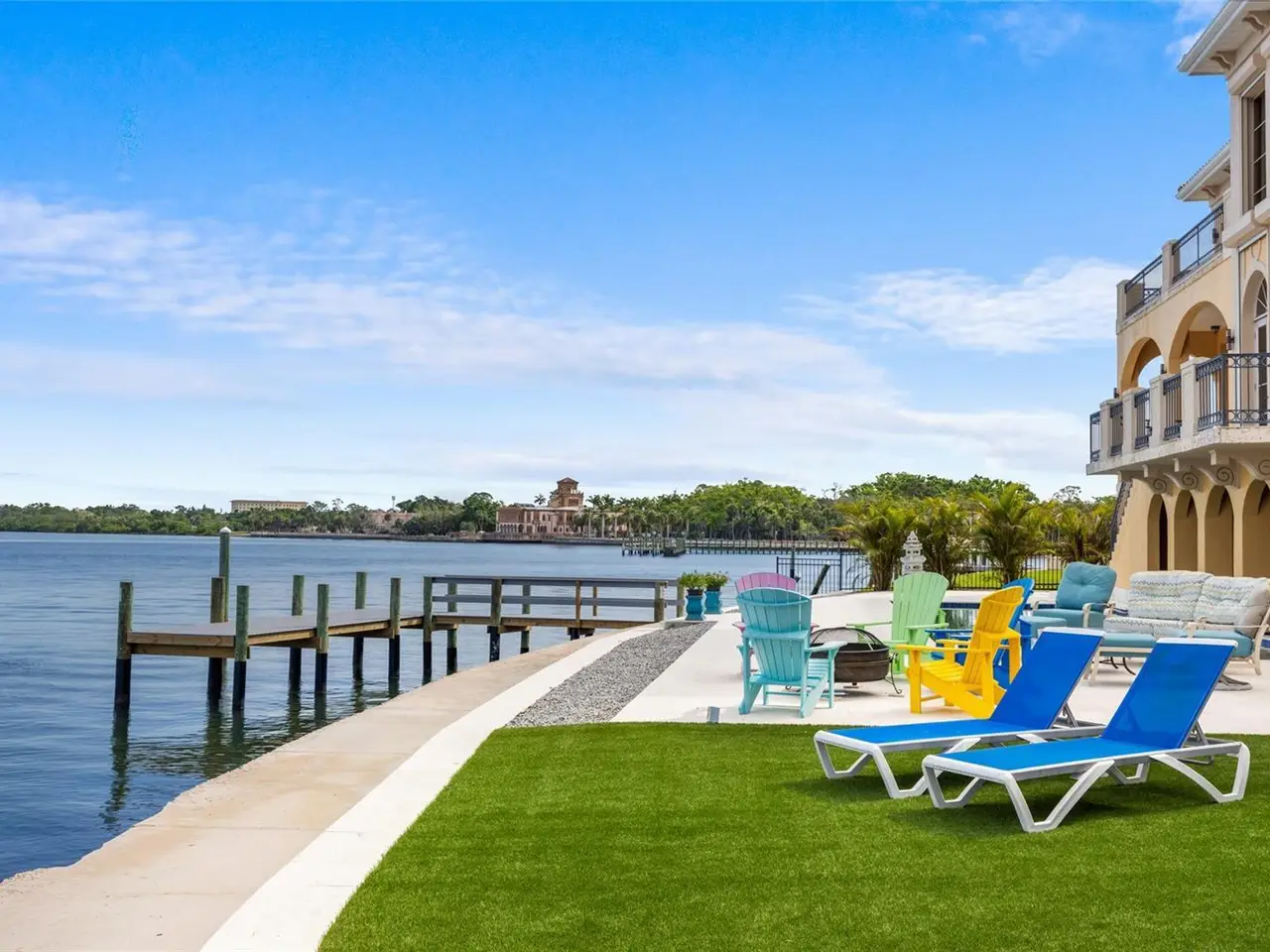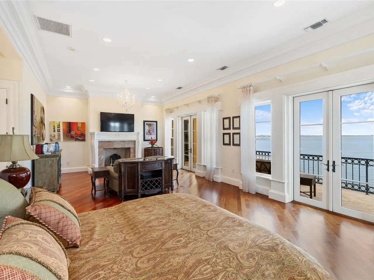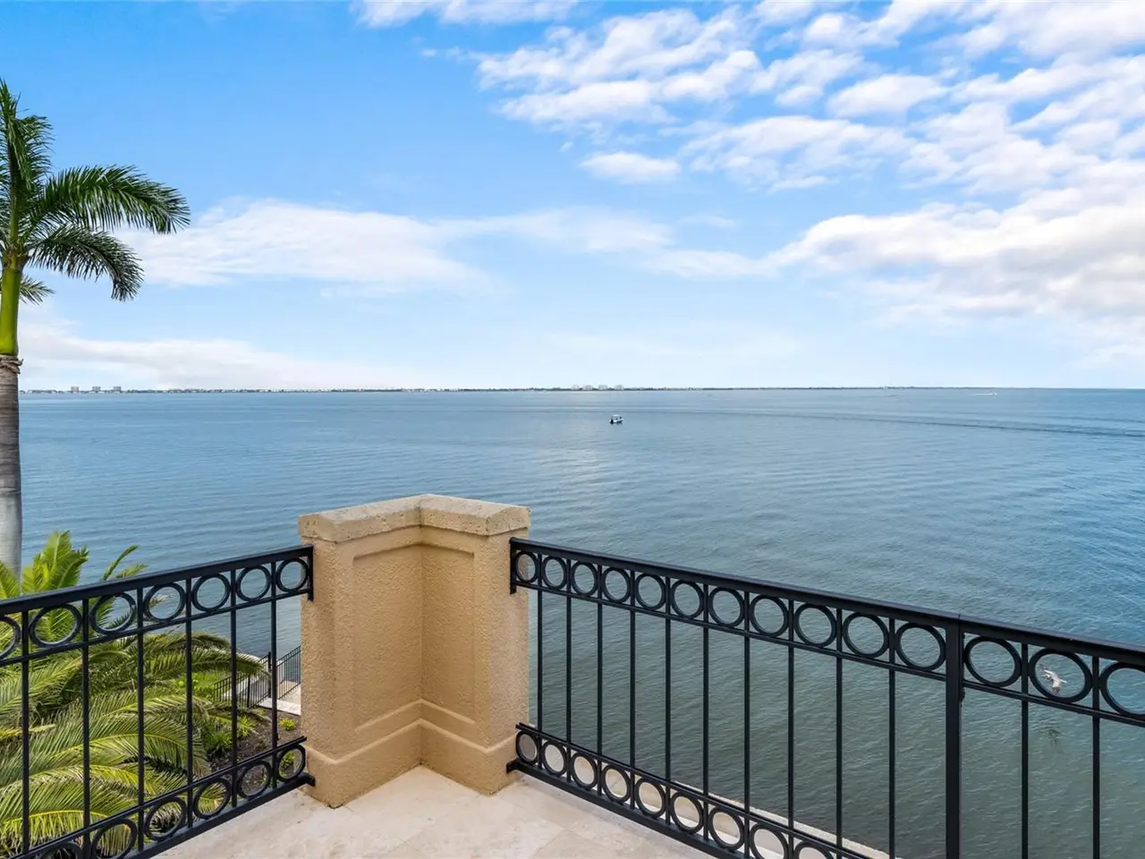 The very best value for open bayfront living near downtown Sarasota. Experience sweeping 270-degree views of Sarasota Bay from this stunning waterfront property. Perfectly positioned to capture iconic vistas of CadZan, the former estate of John Ringling, plus the coastline of Longboat Key and spectacular sunsets. This 7, 000 sq. ft. residence offers exceptional privacy and direct access to deep sailboat water. With a 17 foot elevation, this incredible home has many quality features that you must see to appreciate. Located in Ringling Point, a private cul-de-sac of just 11 homes within the sought-after community of Sapphire Shores, this property is minutes from downtown Sarasota, yet feels worlds away. The home features 5 bedrooms, 3 full bathrooms and 2 half baths, multiple living areas, an elevator serving all floors, and a flexible layout ideal for families, entertaining, or multi-generational living. The main living level includes a formal living room with soaring 24-foot ceilings. Walls of windows fill the space with natural light and frame breathtaking views from every angle. A gas and wood-burning fireplace adds warmth and character, while a full-service bar with a tap dispenser, beverage coolers, and custom cabinetry is perfect for entertaining. The chefs kitchen is outfitted with custom wood cabinetry, granite countertops, dual Dacor gas ranges with stainless hoods, Sub-Zero refrigeration, double ovens, warming drawers, and two dishwashers. A spacious island with seating provides ample space for casual dining or large gatherings. An expansive terrace overlooking the bay runs the width of the main level and is accessible from the living room, bar area, family room off of the kitchen and the guest bedroom. The owner's retreat spans the entire second-floor right wing and features a private sitting area with fireplace, a full-length terrace overlooking the bay, an oversize dressing room with double walk-through closets, and a spa-style bath with a walk-in rain shower and pedestal tub. Just outside the suite is a temperature-controlled wine room. There are two large guest bedrooms on the left wing. Additional features include a 4-car garage, recording studio, hobby and flex rooms, and abundant storage throughout. The home also includes a clay tile roof (2019) and cement block construction built on pilings. Outdoor living is equally impressive. The newer lagoon-style pool features a grotto lounge shelf and gas-heated spa, surrounded by expansive covered terraces with tongue-and-groove ceilings and multiple seating areas to enjoy spectacular sunsets. The private dock extends into the bay, offering deep water access ideal for sailboats and larger vessels, with no fixed bridges to the Gulf. This prime location offers convenient access to downtown Sarasota, Gulf beaches, the Ringling Museum, IMG Academy, University Town Center, and Sarasota-Bradenton International Airport. A rare opportunity to own a legacy estate with unmatched views, quality, and location in one of Sarasota's most desirable bayfront communities.