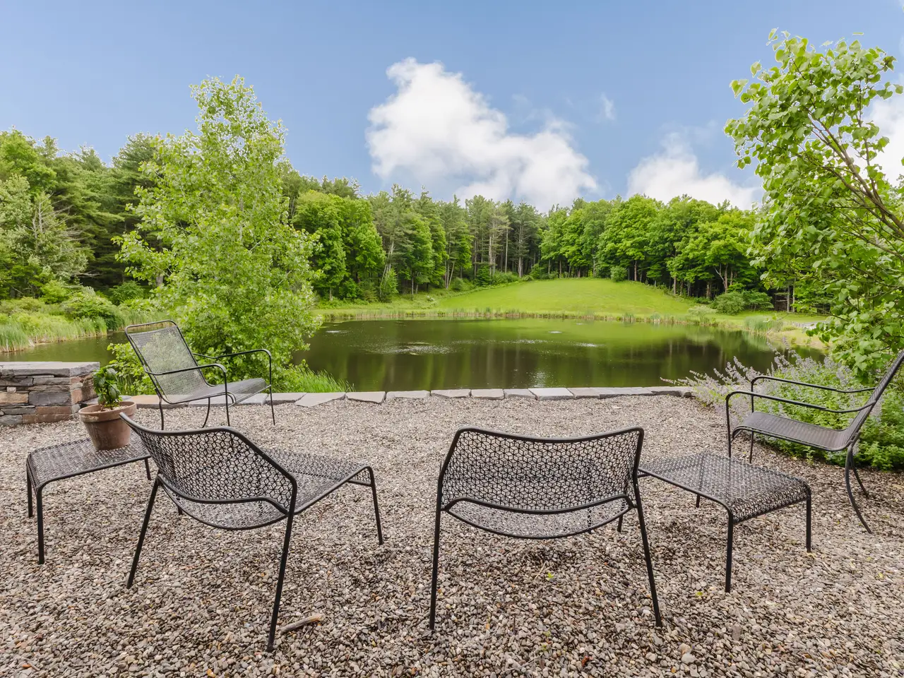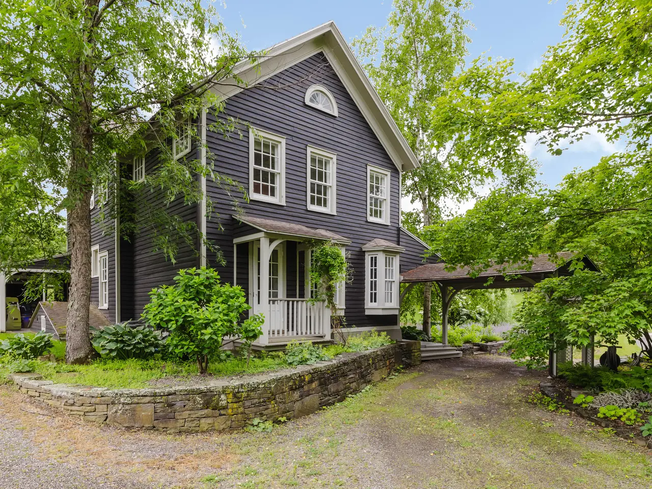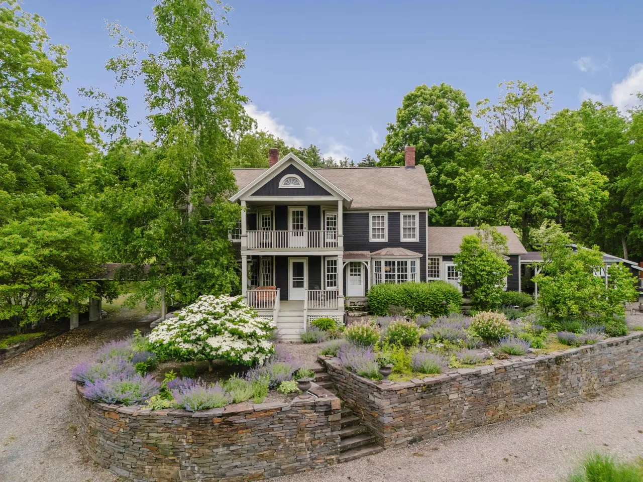 Welcome to Mac Brown Waterhouse, a storied 119-acre estate set within a hidden valley offering complete seclusion and timeless beauty. The original 1830s farmhouse is tucked away at the end of a private lane in Claverack, NY, where the road terminates in a round gravel driveway anchored by the property's original stone well. Two large ponds grace the land, one directly in front of the house that is aerated and swimmable. Sited among meadows and mature woodlands, the main house, upgraded barn, and charming studio shed are framed by terraced stonework, a network of trails, and thoughtfully designed gardens. The setting is peaceful, restorative, and deeply connected to the land, yet only a short drive to both Hudson and Great Barrington. The antique farmhouse offers four bedrooms and two bathrooms across 2,825 square feet, where original details like moldings, wood floors, and Dutch doors preserve its old-world charm. A generous double living room and an office nook outfitted with Vitsoe modular shelving, lead to a bright dining area, kitchen, and direct access to the patios and gardens. The layout encourages an easy indoor-outdoor rhythm, with covered porches, and multiple terraces for lounging, cooking, or gathering. Two staircases rise to the upper-level bedrooms, where the southern exposure fills each room with light, and the attic has been insulated to improve year-round comfort. Throughout the home an intentional color palette lends softness and cohesion. The overall design brings together European sensibility and Hudson Valley character, balancing utility with ease, warmth, and quiet sophistication. Across the garden sits a fully insulated, historic barn that has been transformed into a large-scale creative studio, complete with a bathroom with a clawfoot tub, kitchenette, updated electrical and HVAC. A detached potting shed offers another versatile space, ideal as a garden studio, writer's nook, or future guest cottage. It's connected to an outdoor bath deck that invites restorative soaks beneath the stars with its fireplace, clawfoot tub, and outdoor shower. Next to the house, a carport with EV charging and a full-property generator ensures comfort and continuity year-round.The primary pond is the centerpiece of the propertyaerated, swimmable, and bordered by a pebble beach and firepit. It's ideal for swimming, birdwatching, or evening gatherings. Cranes, herons, and even bald eagle sightings make it a birdwatching paradise. Terraced gardens by The Secret Gardener surround the home with a cottage-style blend of flowering plants, herbs and vegetables. Rewilded fields and meadows lead to two miles of maintained trails through native grasses and towering trees. The land qualifies for a forestry exemption and includes multiple cleared areas, offering potential for a guest house, horses, or even a helipad. Whether hosting music on the lawn, harvesting from the garden, or watching the changing sky reflect in the pond, Mac Brown Waterhouse is a rare legacy estate and true sanctuary.
