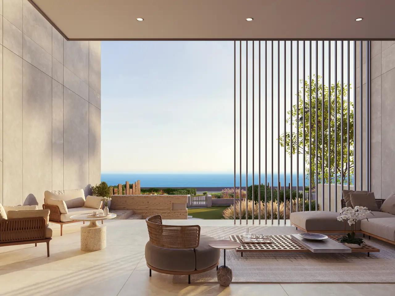 - Private outdoor spaces offering panoramic sea and skyline views.