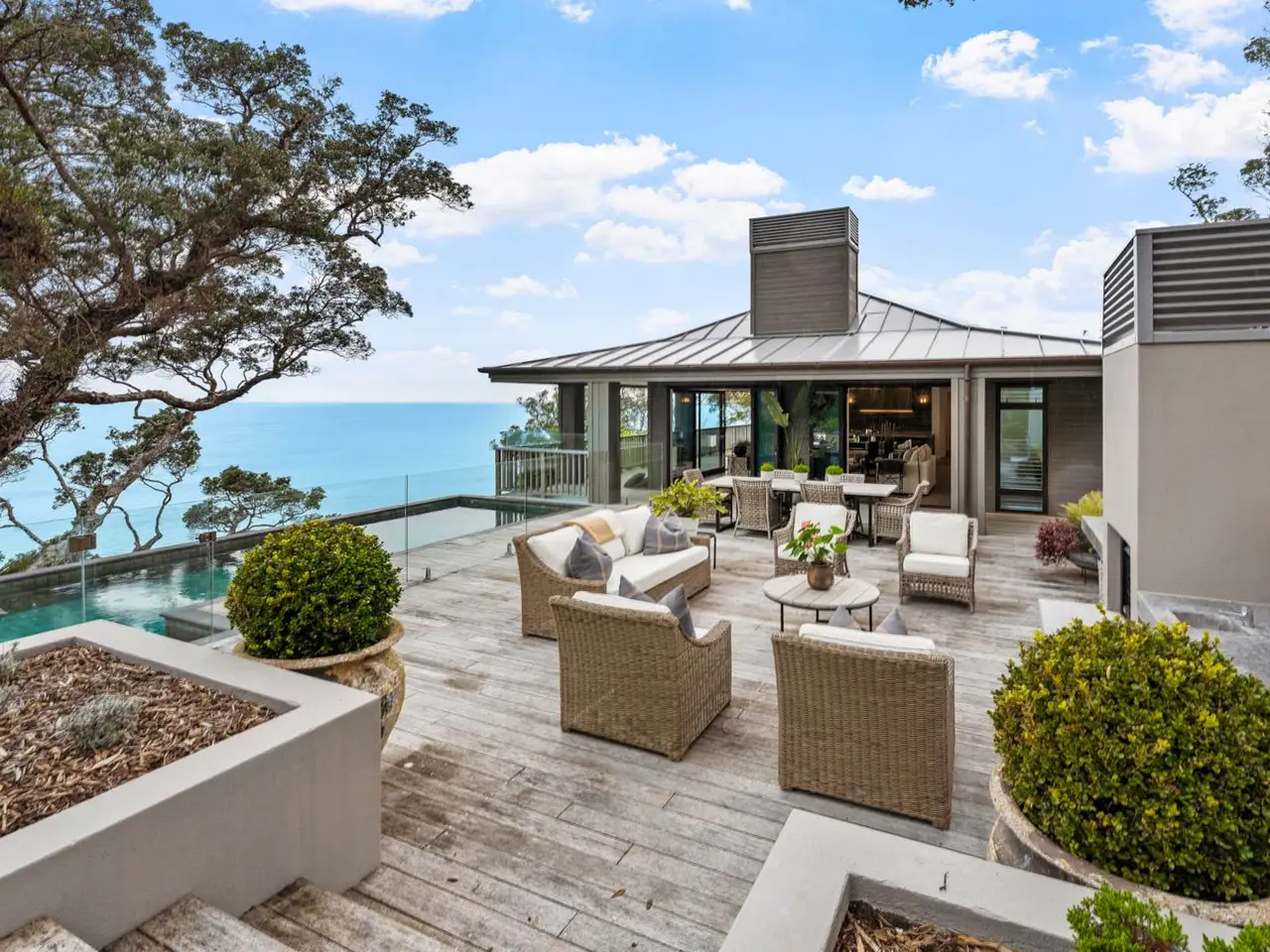 Commanding one of Ti Point’s most dramatic coastal headlands, this contemporary lodge-style home combines natural beauty with refined comfort - a rare sanctuary where everyday life feels like a holiday. Crafted from stone, cedar and glass, the residence sits perfectly within its landscape, surrounded by native bush and framed by panoramic ocean views stretching across Whangateau Harbour to Little Barrier, Great Barrier and the Coromandel beyond. It’s a place where whales and dolphins can often be seen from the terrace - a constant reminder of the extraordinary setting. Set on a large but low-maintenance parcel of land, the home is enveloped by covenanted native bush that ensures total privacy while remaining self-managing. The design brings the outdoors in, with wide terraces, generous glazing and open-plan living that invites light, sea air and the rhythm of the coastline into every room. Inside, the aesthetic is relaxed yet elegant - a sophisticated blend of lodge warmth and coastal calm. The main living area connects seamlessly with the outdoors, while a second lounge provides a quiet retreat for television or reading. There are four bedrooms in the main house, each designed for comfort and positioned to capture the view. A separate bunk room and detached studio provide ideal accommodation for guests, teenagers or staff. Practicality matches beauty, with ample garaging and on-site parking, all discreetly integrated into the landscape. A private cable car glides through the native bush to the water’s edge below, offering effortless access for swimming, kayaking or launching a small boat. Just minutes from Matakana Village and Omaha Beach, and around an hour from Auckland, this is coastal living at its most elevated - contemporary, calm and connected to nature. A home that feels luxurious yet entirely effortless. A true Coastal Icon. This is a Sole Agency listing by James Doole and Kellie Bissett. Contact us to view today.