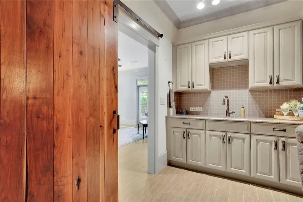 Tucked down a quaint brick path framed by trees, this stunning brownstone in the coveted Providence community redefines in-town living in Historic Roswell - just steps from the vibrant shops and restaurants of Canton Street. Enter through a charming iron gate to an expansive brick courtyard with a built-in grill, dining area, and firepit. A rocking chair front porch overlooks the lushly landscaped entry, offering both beauty and privacy. Inside, the main level boasts 10-foot ceilings, engineered hardwoods, and three elegant living spaces that live like a single-family home. A curved wall defines the spacious family room featuring a stone gas fireplace with wood mantle, built-in bookcases, and window seats. Two sets of French doors open to the front porch while side windows bathe the space in natural light. A gracious dining area easily accommodates a banquet-sized table for gatherings with family and friends. The gourmet kitchen is a true showpiece with custom cabinetry, exotic granite island, and a keeping room. Holiday entertaining is effortless with a 60 six-burner Thermador range with griddle and double ovens, a pot filler, paneled Sub-Zero refrigerator, wine bar with cooler, and walk-in pantry. Upstairs, the primary suite retreat offers a sitting area, beverage fridge, custom walk-in closet, and spa bath with soaking tub and frameless shower. Two secondary bedrooms with large closets and a full bath complete this level. The finished terrace level adds incredible flexibility with a true theater room and serving bar, full bath, flex space for office/gym/guests, and a built-in mudroom. The home is elevator-capable for added convenience. Providence offers pocket parks, an outdoor pavilion with fireplace, and a dog park - all just steps from Roswell's dining, shopping, coffee shops, and festivals. 85 Webb Street is a stunning retreat in the heart of it all. Love Where You Live!