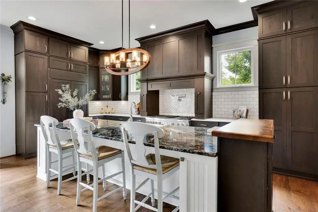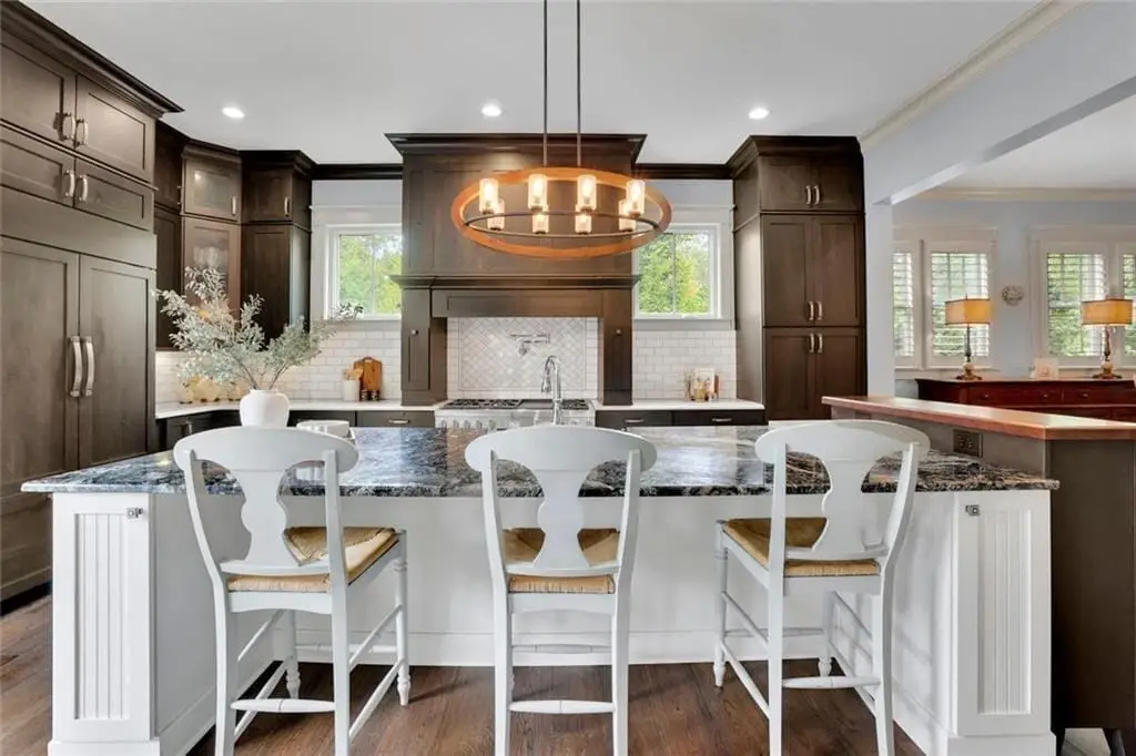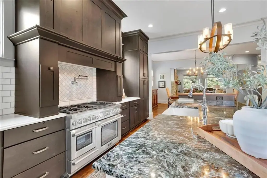• Custom cabinetry and exotic granite island