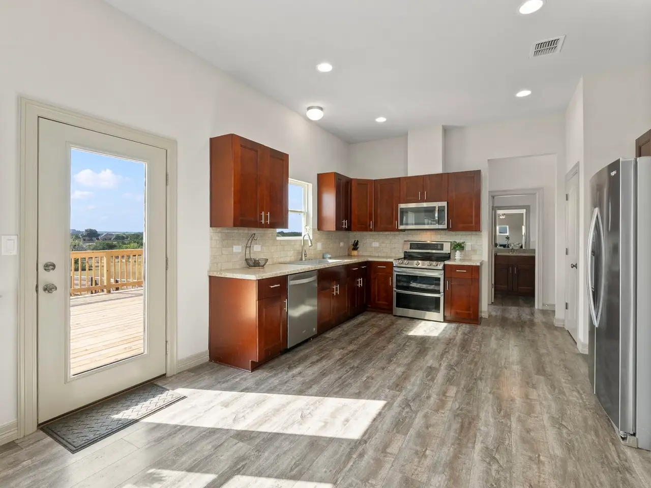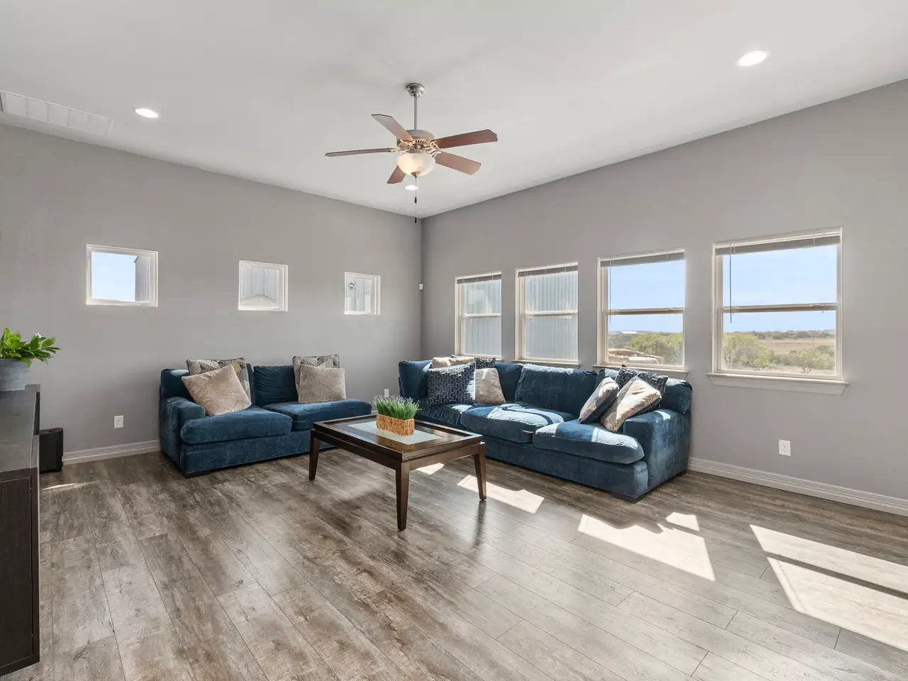 154 Maverick sits on 10 acres where life slows down in the best way. Imagine stepping out onto the oversized deck, feeling the breeze, and watching the Hill Country stretch endlessly in front of you. It's the kind of view that makes you pause - whether it's sunrise coffee or a glass of wine at sunset. The main home was built for connection and comfort, with 3 bedrooms, 2.5 baths, and two separate living areas. There’s space for everyone to spread out, yet still come together around the table or in front of the big windows that frame the landscape. Summer days are meant for the pool, with its inviting grotto and plenty of room for laughter and lazy afternoons. When friends or family visit, the guest quarters inside the warehouse give them privacy - complete with a kitchenette and full bath - while still keeping them close. And then there's the 34x25 warehouse itself: part storage, part workshop, part possibility. RVs, boats, weekend projects - it's all welcome here. The loft above makes it more than just storage; it's a space to dream, build, and create. This isn't just property. It's a place where weekends feel like vacations, where everyday routines feel lighter, and where the best memories are made under big Texas skies.
