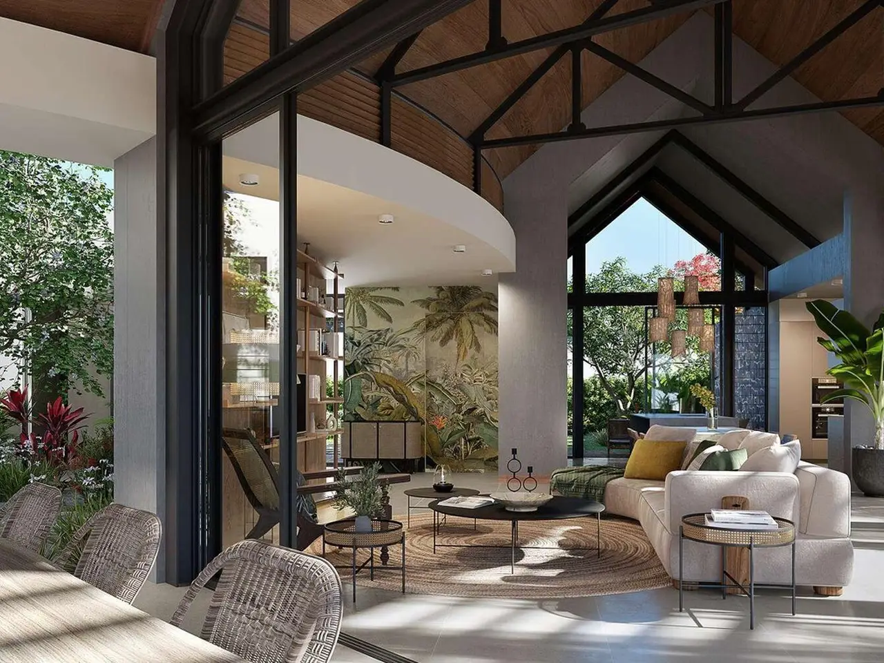 This luxurious villa, situated in a prime location with stunning valley views, combines modern elegance with traditional Mauritian architecture. Designed to maximize natural light, it offers high-end finishes, spacious living areas, and seamless indoor-outdoor flow. The villa features a unique blend of tropical and contemporary design, with a large sloping roof, industrial-style metal beams, and stone walls that evoke the island's colonial heritage. Residents enjoy access to Anahita’s 5-star facilities and services, along with permanent residency. With close proximity to shops, sports amenities, and dining options, this villa offers an exceptional lifestyle in one of Mauritius’s most desirable locations.