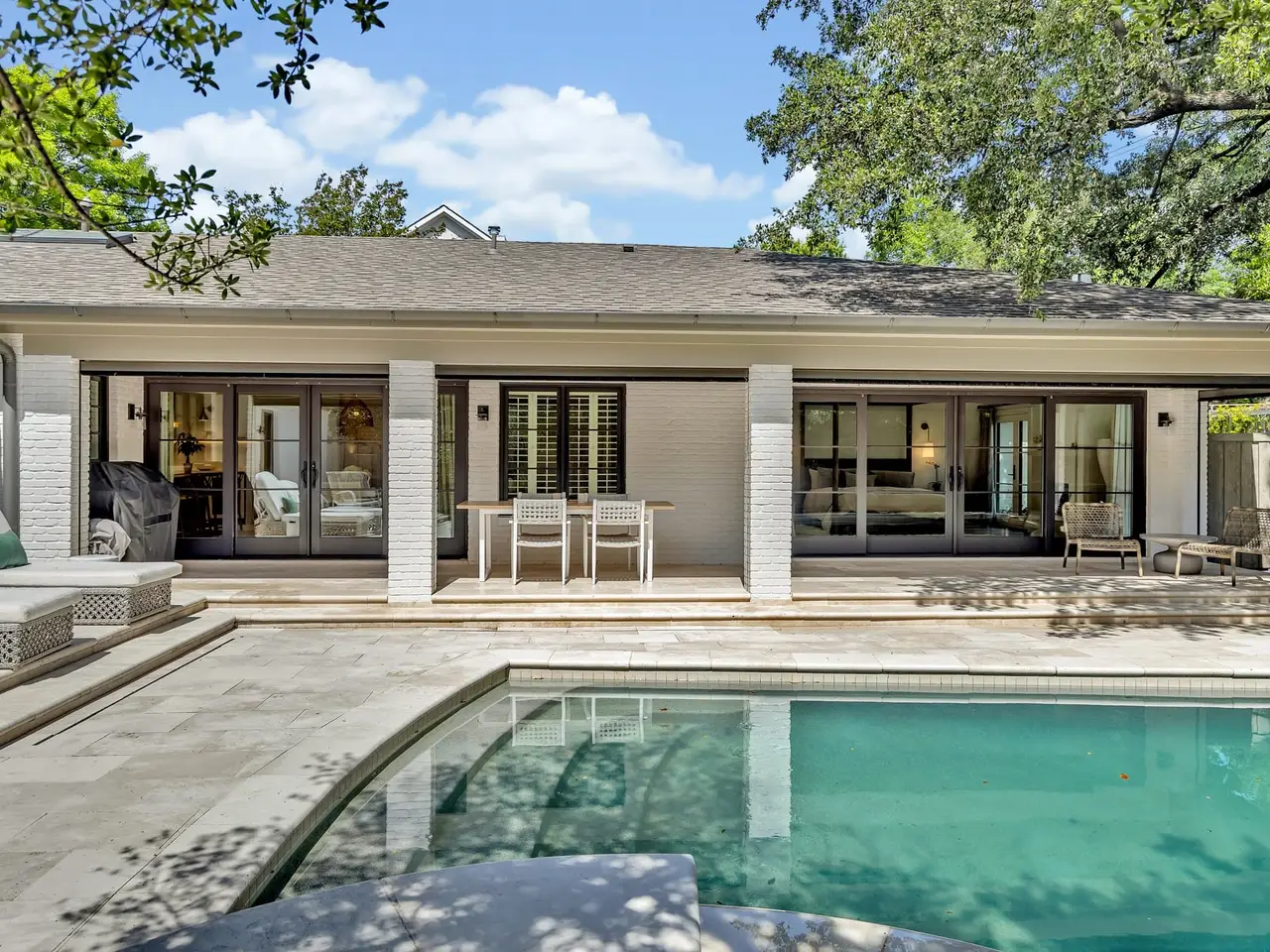 A true Lakewood masterpiece, this one-of-a-kind residence was completely reimagined and expanded in 2023, offering an unparalleled combination of modern sophistication and timeless design. Nestled on an expansive .335-acre lot, this rare single-story ranch is framed by lush landscaping and bathed in natural light from walls of windows that blur the line between indoors and out. At its center, the chefs kitchen serves as both a statement of style and a culinary dream, showcasing Taj Mahal quartzite countertops, top-of-the-line appliances including a built-in refrigerator, an oversized pantry, and a sunlit breakfast nook. The primary suite defines luxury living with its own fireplace, French doors leading to the backyard, and a spa-inspired bath with soaking tub, standalone shower, and custom-designed closet system. No detail was overlooked in the redesign, with exquisite finishes including designer lighting and tile, rich wood flooring, exposed beams, and three fireplaces that add warmth and character. The floor plan was thoughtfully curated for flexibility, offering multiple living areas, a dedicated office, an exercise room, and a custom-built bonus room currently serving as an art studio. Outdoors, this private sanctuary is designed for both intimate gatherings and grand entertaining with a resort-style pool and spa, expansive covered patio with ceiling fan, and manicured grounds secured by a board-on-board privacy fence. An oversized two-car garage adds practicality without compromising elegance. Perfectly positioned and zoned to Lakewood Elementary, this home is more than a residenceit is a statement of refined living in one of Dallas' most coveted neighborhoods.