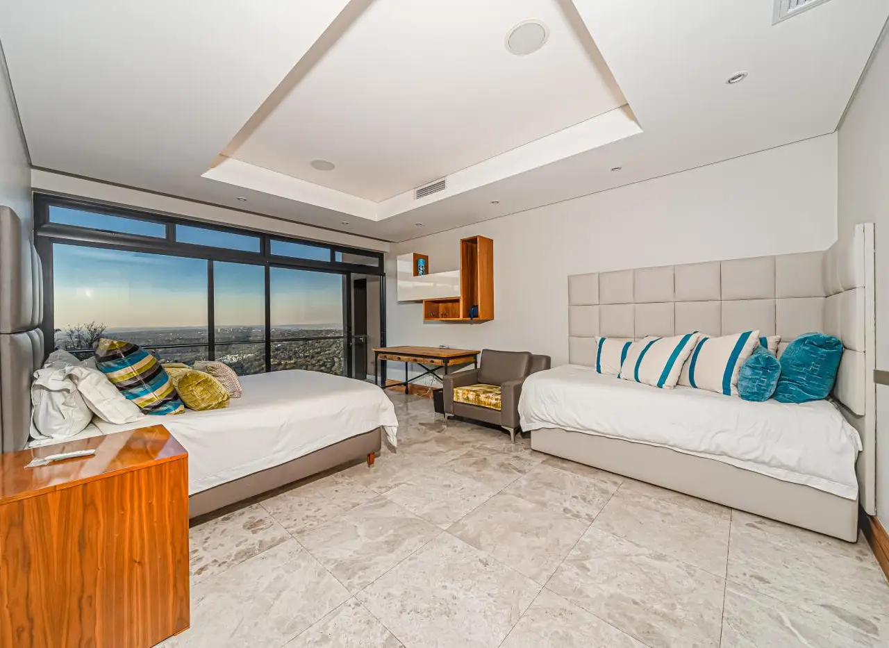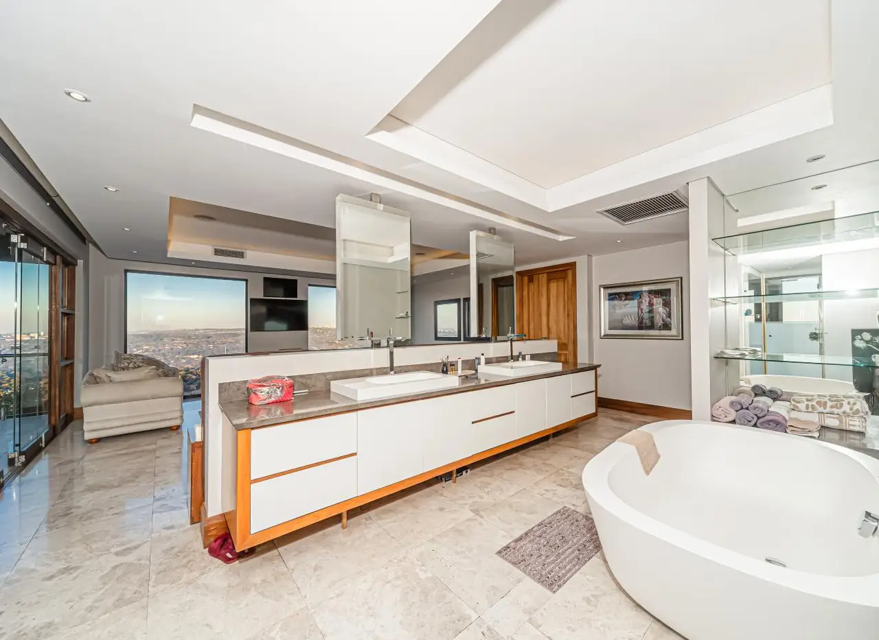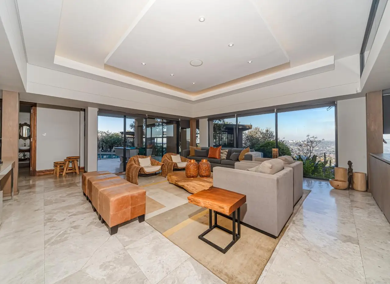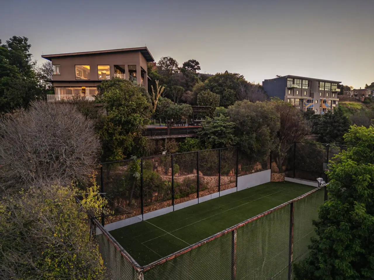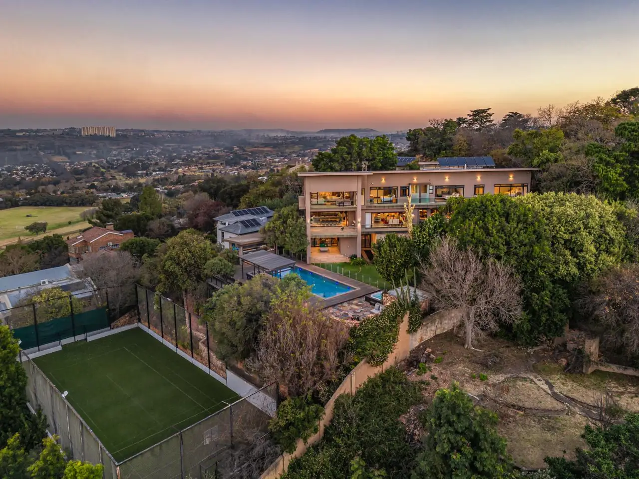 Northcliff Hill's Pinnacle of Prestige | Where Elevated Living Meets Breathtaking Horizons Perched high above Johannesburg on the most coveted slopes of Northcliff Hill, this architectural masterpiece redefines luxury, privacy, and scale. Resting on a 4,700sqm north-east facing estate and offering an impressive 880sqm under roof, it is a private sanctuary where every detail has been curated for an unrivalled lifestyle. Tucked discreetly away from the road, the home unveils itself through landscaped perfection - manicured gardens, mature trees, and panoramic vistas stretching as far as the eye can see. Here, sunrises and sunsets are not just admired - they are lived. Opulent Accommodation Five palatial, light-filled bedroom suites each boast walk-in closets and spa-inspired en-suite bathrooms, designed for ultimate comfort and seclusion. The primary suite commands awe-inspiring city views, creating a daily backdrop of pure magic. The Heart of the Home At its centre lies a gourmet chef's kitchen, where sleek integrated SMEG appliances meet exceptional function - complete with a butler's walk-in fridge, dedicated pantry, and offset scullery. This culinary haven seamlessly connects to expansive formal and informal lounges, a sophisticated dining room, a stylish bar, a TV lounge, and a private office. Every space flows effortlessly onto glass-framed balconies that embrace the Johannesburg skyline. A Resort-Style Lifestyle Crafted for both relaxation and entertainment, the property offers a host of world-class amenities: - Sparkling pool with sun-soaked deck and fully equipped pool bar - Indoor and outdoor gym facilities - Private rooftop soccer pitch - Jacuzzi under the stars - Wood-fired pizza oven nestled beneath romantic grapevines - State-of-the-art cinema room for unforgettable movie nights Additional Excellence Completing the picture are a fully self-contained one-bedroom flatlet, three-bedroom staff quarters, and garaging for four cars. Comfort is ensured with underfloor heating, a central air-conditioning system, home automation, generator, central vacuum system, borehole, sprinkler system, and solar geysers. This is not merely a home - it is a statement of achievement and a legacy in the making. For those who demand nothing less than extraordinary, Northcliff Hill's finest offering awaits.