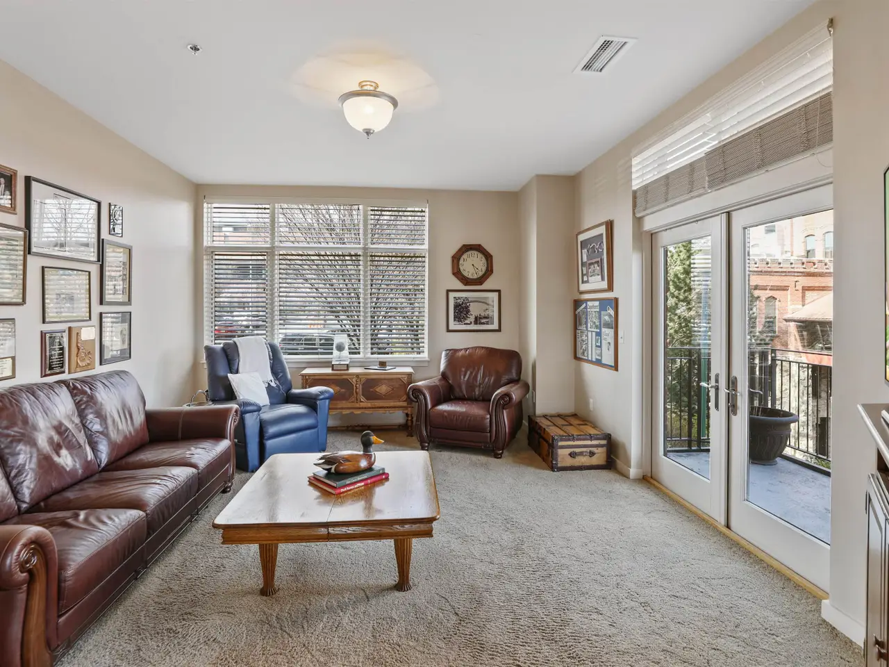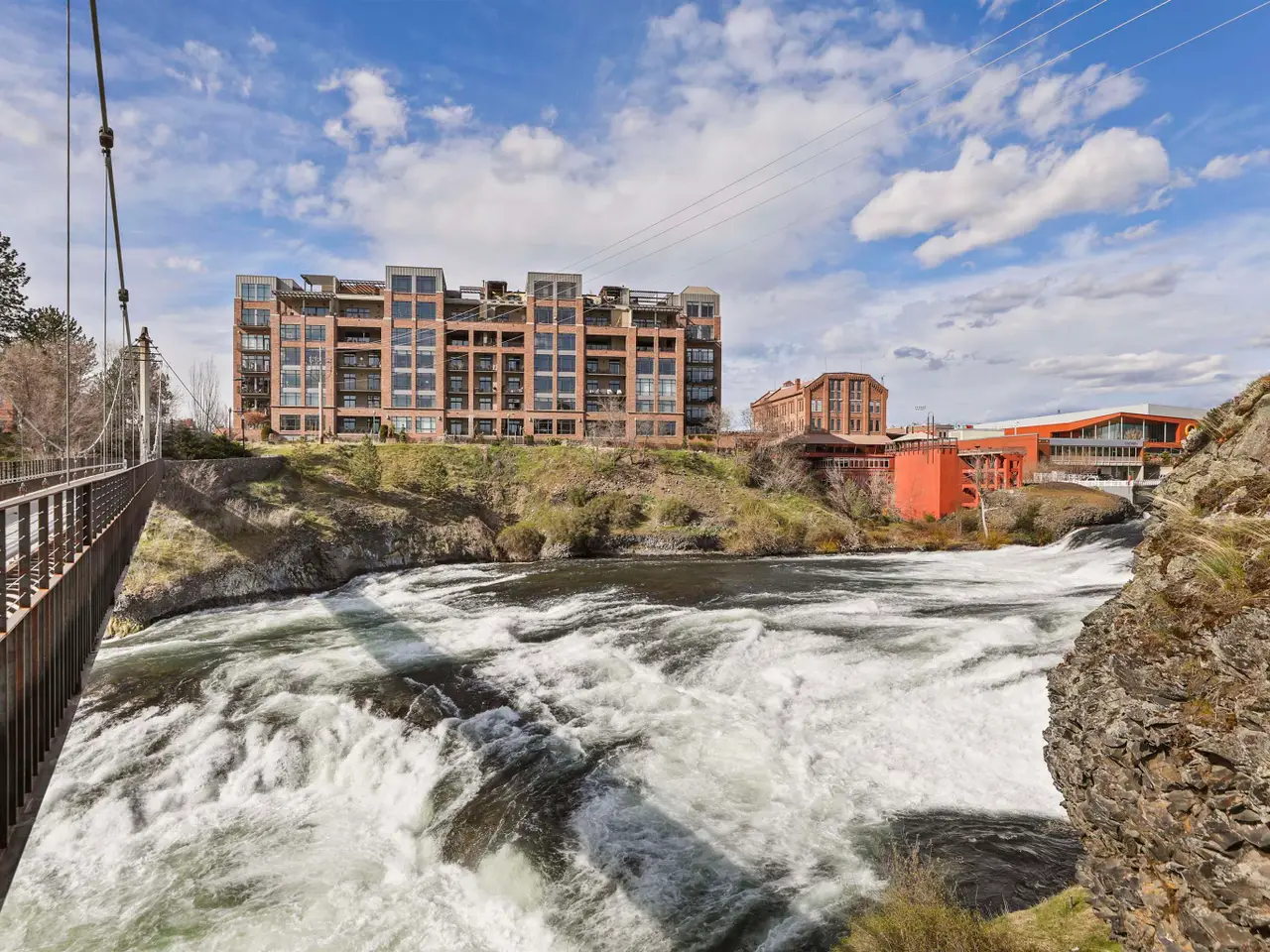 Enjoy the views and entertainment from this luxurious condo located within walking distance to Riverfront Park, Podium, the Stadium and the Spokane Arena features three bedrooms and three bathrooms, including two primary suites that offer additional privacy and comfort. The kitchen features elegant granite countertops & modern stainless-steel appliances, lending a touch of sophistication to the space. Additionally, the kitchen's floating island allows for comfortable work or hosting, while the open layout flows seamlessly into the living and dining room. Soak in the abundance of natural light in this special corner unit that has a private patio and an additional deck in the heart of the city's cultural district. This condo offers the perfect blend of comfort, convenience, & style. Amongst the high-end finishes, this condo's views of Spokane Falls and downtown Spokane are next to none. This property offers an elevated lifestyle for those seeking to be close to it all with modern amenities & two parking spots!