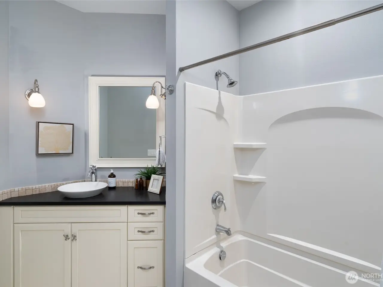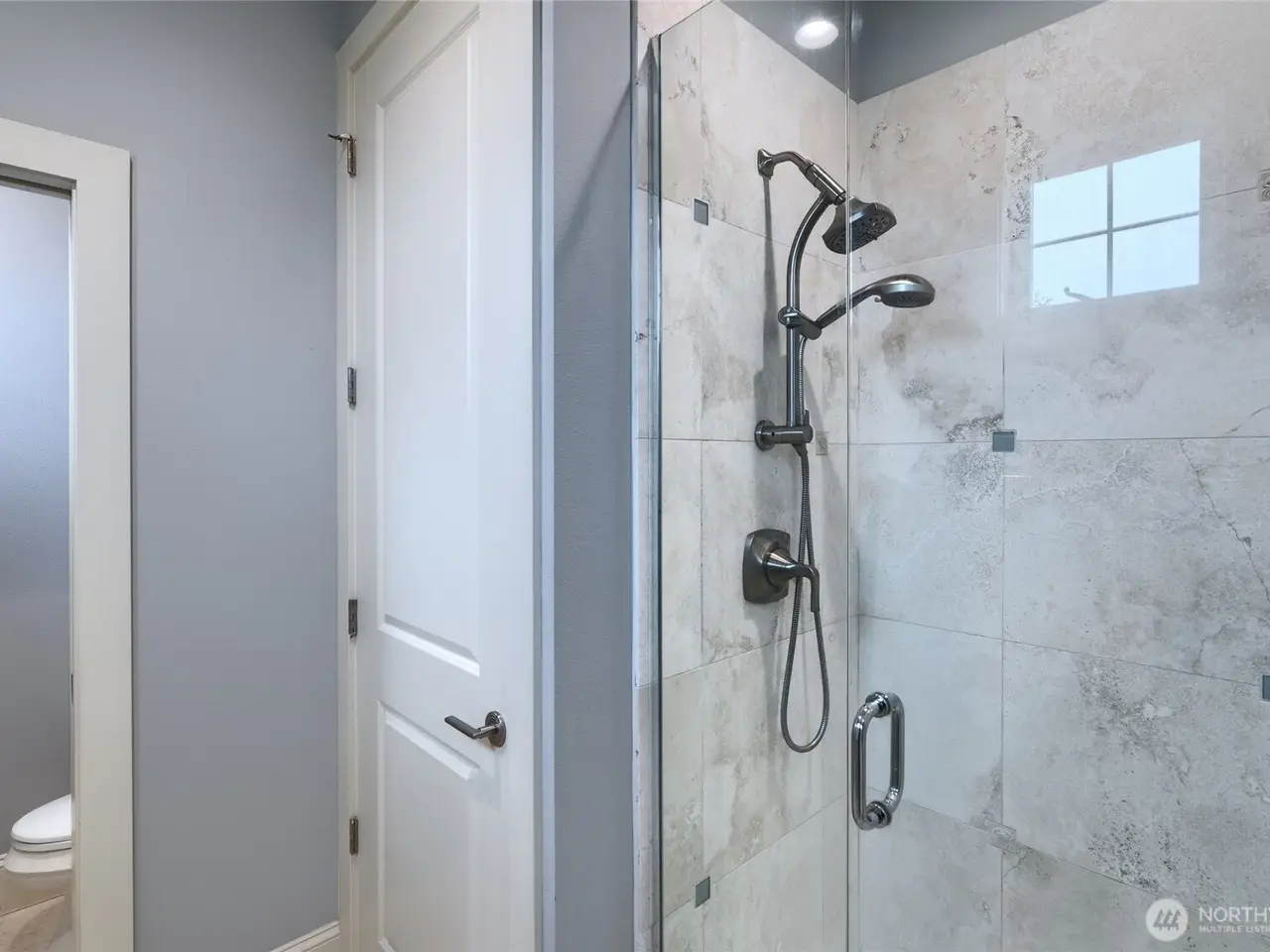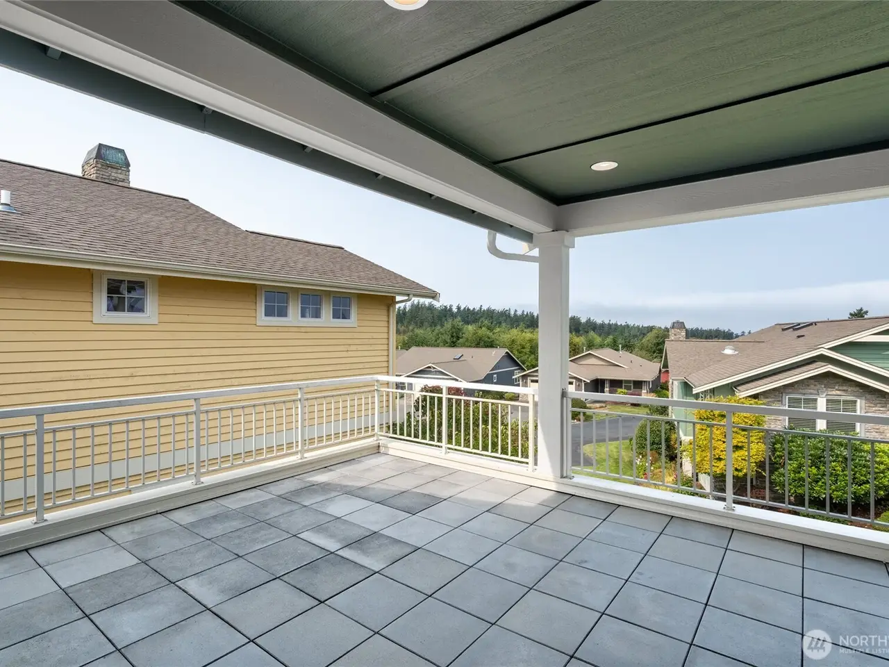 Quality Ron Paulk built Home, a beautifully home w/ solid wood doors, detailed ceiling and baseboard trim. Main level living offers Primary & second bed rm and bonus office/flex rm with French doors, all main level. The kitchen with long quartz bar, living rm stone fireplace, and seamless flow to French doors view deck ideal for entertaining. Primary suite showcases sweeping channel views of San Juan Islands, plus spa like bath and lg walk-in closet. Lower level/ w guest suite, and potential cool/wine room, and patio with hot tub wiring. Whole-home with built-in speaker in every room including sound system completes this retreat. Enjoy care free maintenance with landscaping, exterior painting and roof replacement included in HOA fee.