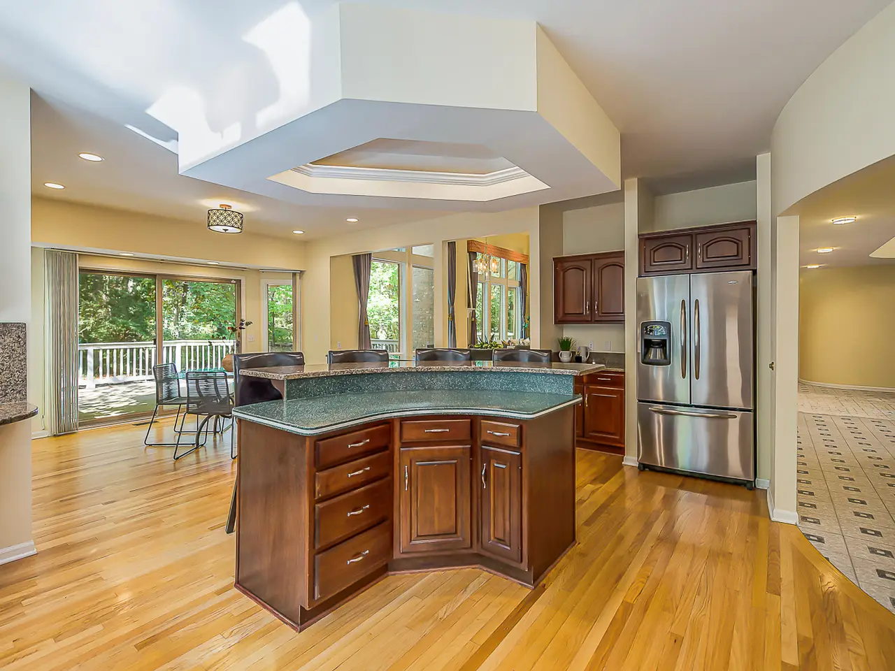 Versatility is the word for this spacious Ann Arbor Hills home - perfect for all stages of life! A 3098 SF main level (accessed by stairs or garage elevator) offers everything needed for one level living. Enjoy hardwood floors, large windows for views of the wooded lot and a deck off the kitchen/breakfast area. A spacious primary suite has 2 large closets, dressing area, spa tub, walk-in shower and private deck. Find added utility in the 470 SF bonus play room, office and laundry. The upper level has 3 bedrooms w/hardwood, 2 baths, cedar closet. The 2,000 SF walk-out lower level offers flexibility with a full eat-in kitchen, full bath, expansive living space and access to a paver patio, perfect for entertaining or extended stays. Updates: new carpet, paint, counters, garage floor, LED lighting & more. On a private .69-acre lot, this home blends luxury, privacy, and adaptable living in one of Ann Arbor's most desirable areas. Home Energy Score of 3. Download report at stream.a2gov.org
