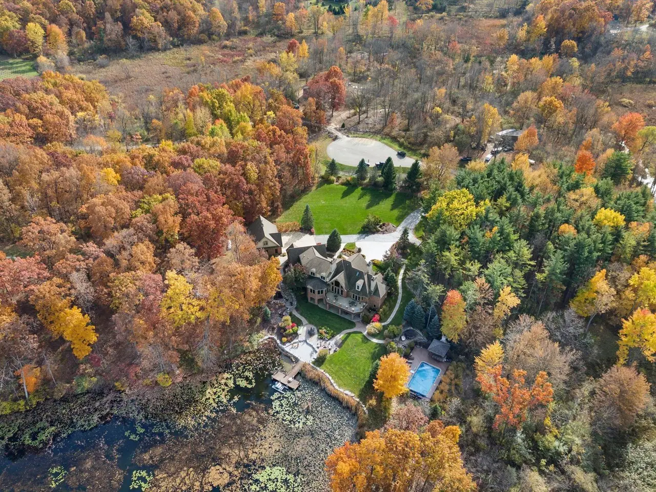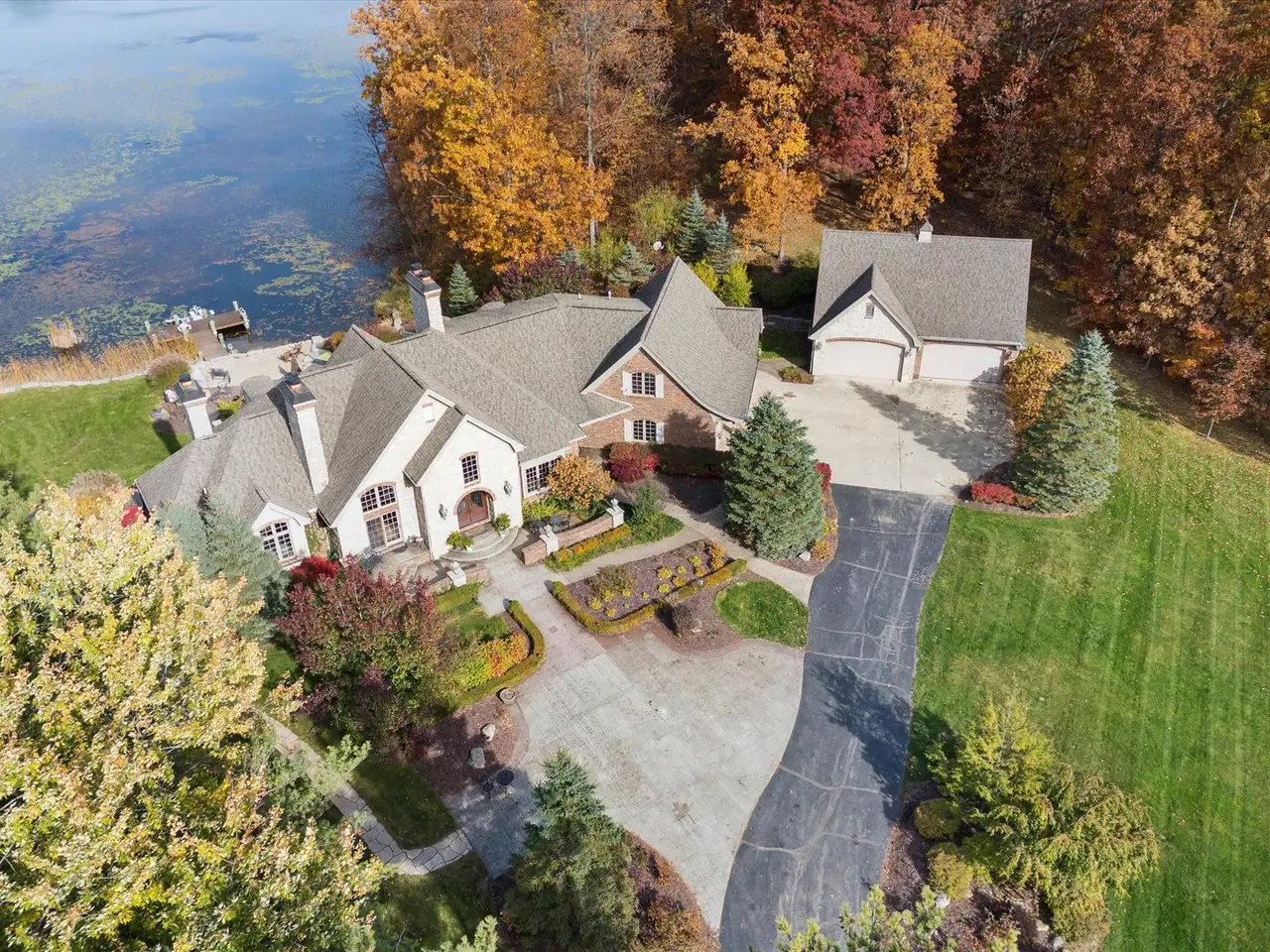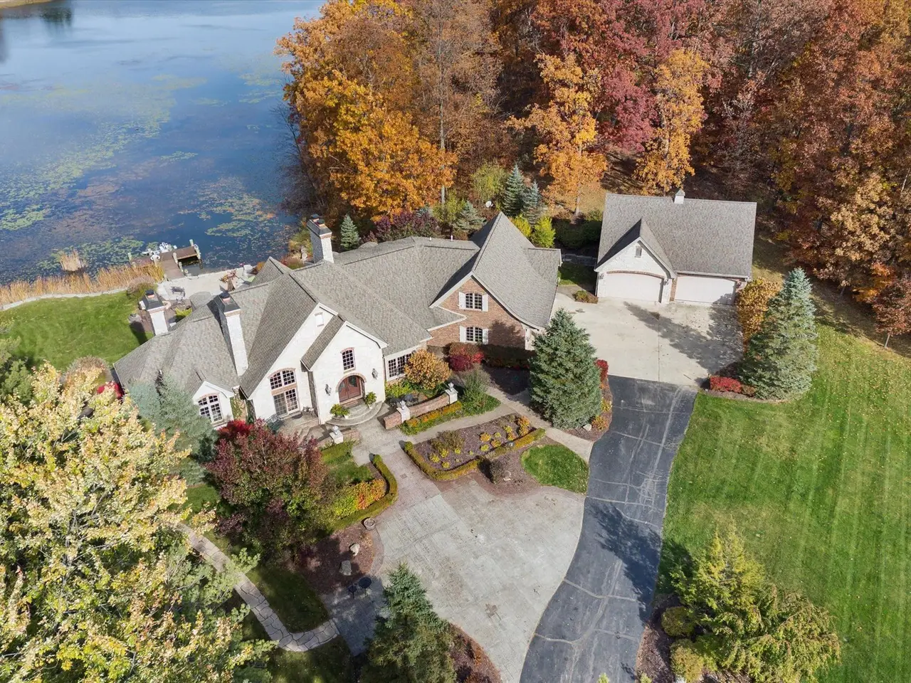 Private Lakefront Luxury on 14 Acres | Resort-Style Living with Every Amenity? Step into a world of refined lakefront living with this extraordinary 14-acre Country French estate—a true sanctuary of luxury, seclusion, and unforgettable memories. Tucked behind a private gated drive, this custom brick-and-stone masterpiece offers over 7,000 square feet of exquisite craftsmanship designed for both relaxation and grand entertaining. Inside, discover a chef’s dream kitchen featuring granite countertops, Brazilian cherry floors, a wet bar, 3 Thermador ovens, and a 6-burner stove. The main-floor primary suite is pure indulgence with heated floors, a hydro jet tub, and a custom walk-in closet. The two-story hearth room stuns with a dual-sided fireplace and flows into a four-season sunroom offering panoramic lake views and heated floors. A dedicated home office with a fireplace and private entrance makes working from home serene and seamless. The finished walkout lower level is built for entertaining—complete with a full bar, home theater, game room, cedar sauna, and a full and half bath. Outdoors, enjoy your private paradise: a heated saltwater pool and spa with a cabana, a lakeside gazebo with custom stone fireplace, electricity, bar fridge, and plenty of storage for outdoor entertaining. The kids' imagination will take them anywhere in their storybook cedar loft playhouse, complete with electricity, a fireplace, and an intercom system. Your private lake is ideal for swimming, fishing, and kayaking. A whole-house generator adds peace of mind, while an additional heated detached garage offers flexible storage or workshop space with a loft. Whether you're seeking a year-round retreat, multigenerational homestead, or a luxury family compound, this rare estate has it all—privacy, elegance, and adventure, all on one pristine waterfront setting. Now including the 8.81 adjoining acres. The property ID# must be included on the PA. Property ID# 01002700175