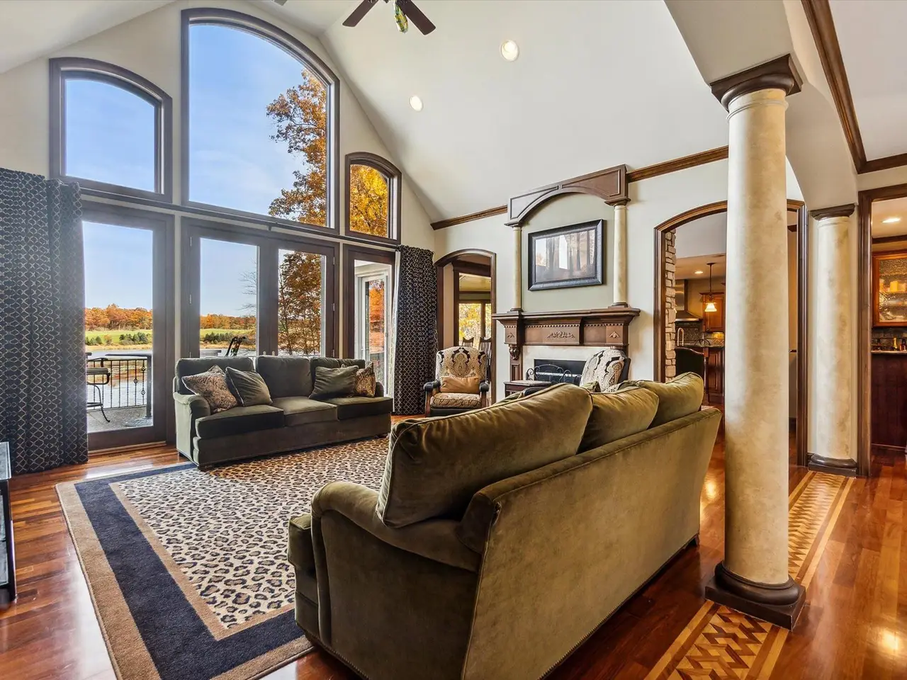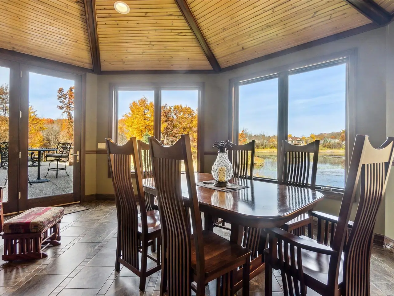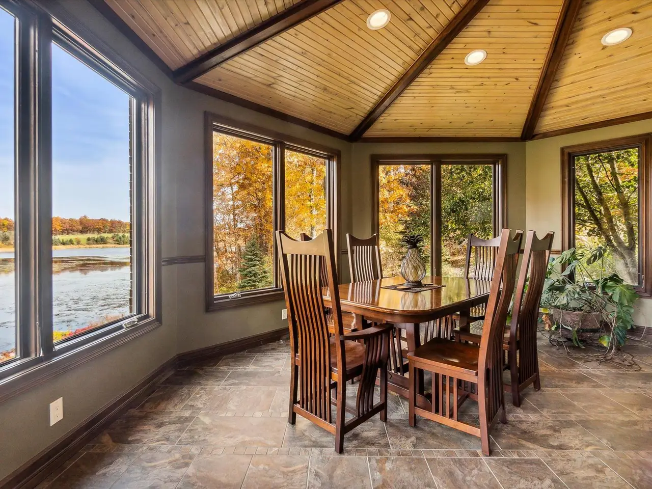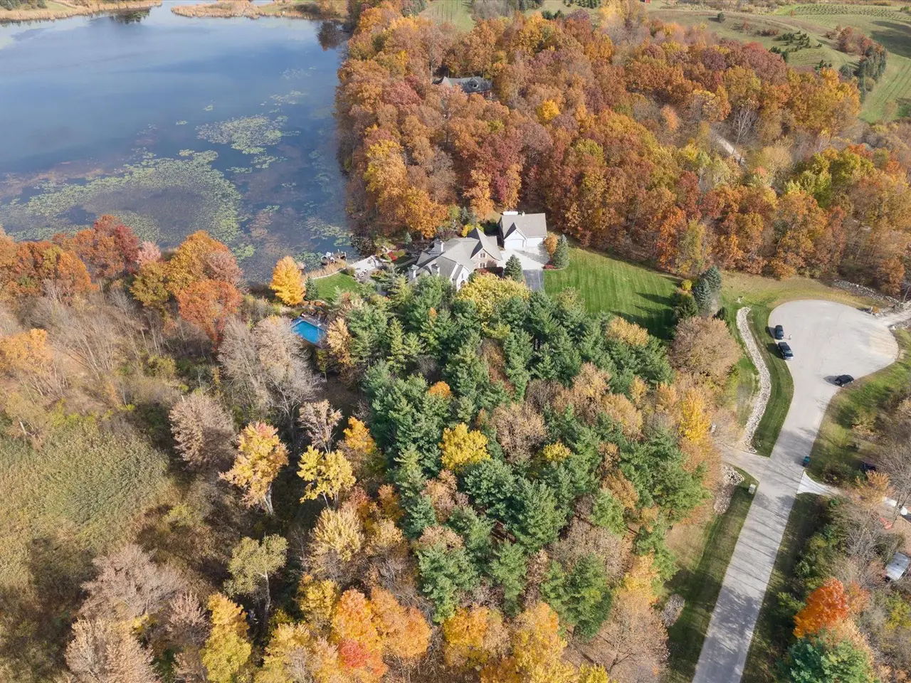 Private Lakefront Luxury on 14 Acres | Resort-Style Living with Every Amenity? Step into a world of refined lakefront living with this extraordinary 14-acre Country French estate—a true sanctuary of luxury, seclusion, and unforgettable memories. Tucked behind a private gated drive, this custom brick-and-stone masterpiece offers over 7,000 square feet of exquisite craftsmanship designed for both relaxation and grand entertaining. Inside, discover a chef’s dream kitchen featuring granite countertops, Brazilian cherry floors, a wet bar, 3 Thermador ovens, and a 6-burner stove. The main-floor primary suite is pure indulgence with heated floors, a hydro jet tub, and a custom walk-in closet. The two-story hearth room stuns with a dual-sided fireplace and flows into a four-season sunroom offering panoramic lake views and heated floors. A dedicated home office with a fireplace and private entrance makes working from home serene and seamless. The finished walkout lower level is built for entertaining—complete with a full bar, home theater, game room, cedar sauna, and a full and half bath. Outdoors, enjoy your private paradise: a heated saltwater pool and spa with a cabana, a lakeside gazebo with custom stone fireplace, electricity, bar fridge, and plenty of storage for outdoor entertaining. The kids' imagination will take them anywhere in their storybook cedar loft playhouse, complete with electricity, a fireplace, and an intercom system. Your private lake is ideal for swimming, fishing, and kayaking. A whole-house generator adds peace of mind, while an additional heated detached garage offers flexible storage or workshop space with a loft. Whether you're seeking a year-round retreat, multigenerational homestead, or a luxury family compound, this rare estate has it all—privacy, elegance, and adventure, all on one pristine waterfront setting. Now including the 8.81 adjoining acres. The property ID# must be included on the PA. Property ID# 01002700175