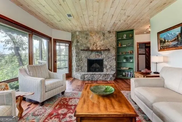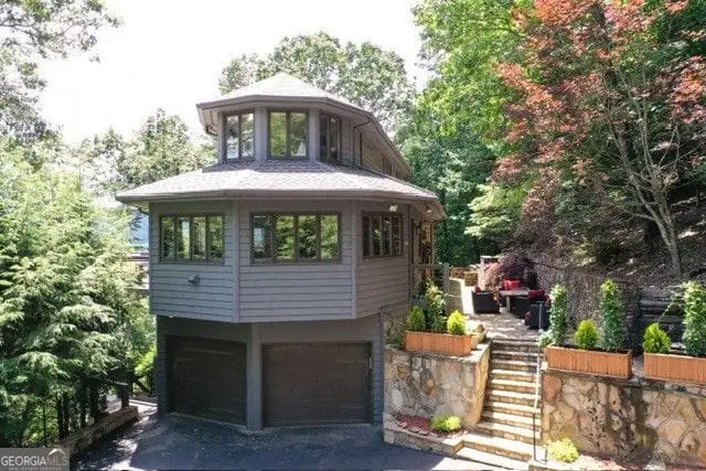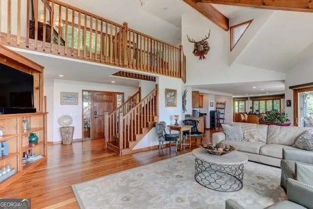 This is the GA mountain retreat you have been looking for! It is a spectacular custom Home nestled in the mountains of Big Canoe. Enjoy short and long views as far as the Atlanta Skyline. Artist/Architect designed, this home with its open floor plan, seamlessly integrates nature into every corner. Antique pegged wide-pine floors, exposed beams, and abundant windows create a bright and inviting atmosphere. Step outside to admire the beautiful gardens and pet-friendly yard, complete with several private patio areas perfect for outdoor entertaining. Remote control awnings over the living room windows ensure optimal outdoor exposure. Too many special features to mention. You must see it to appreciate the craftmanship. Welcome to your new mountain retreat with a private view from 'every' angle. Welcome to North Georgia and the southern point of the Appalachian Trail.