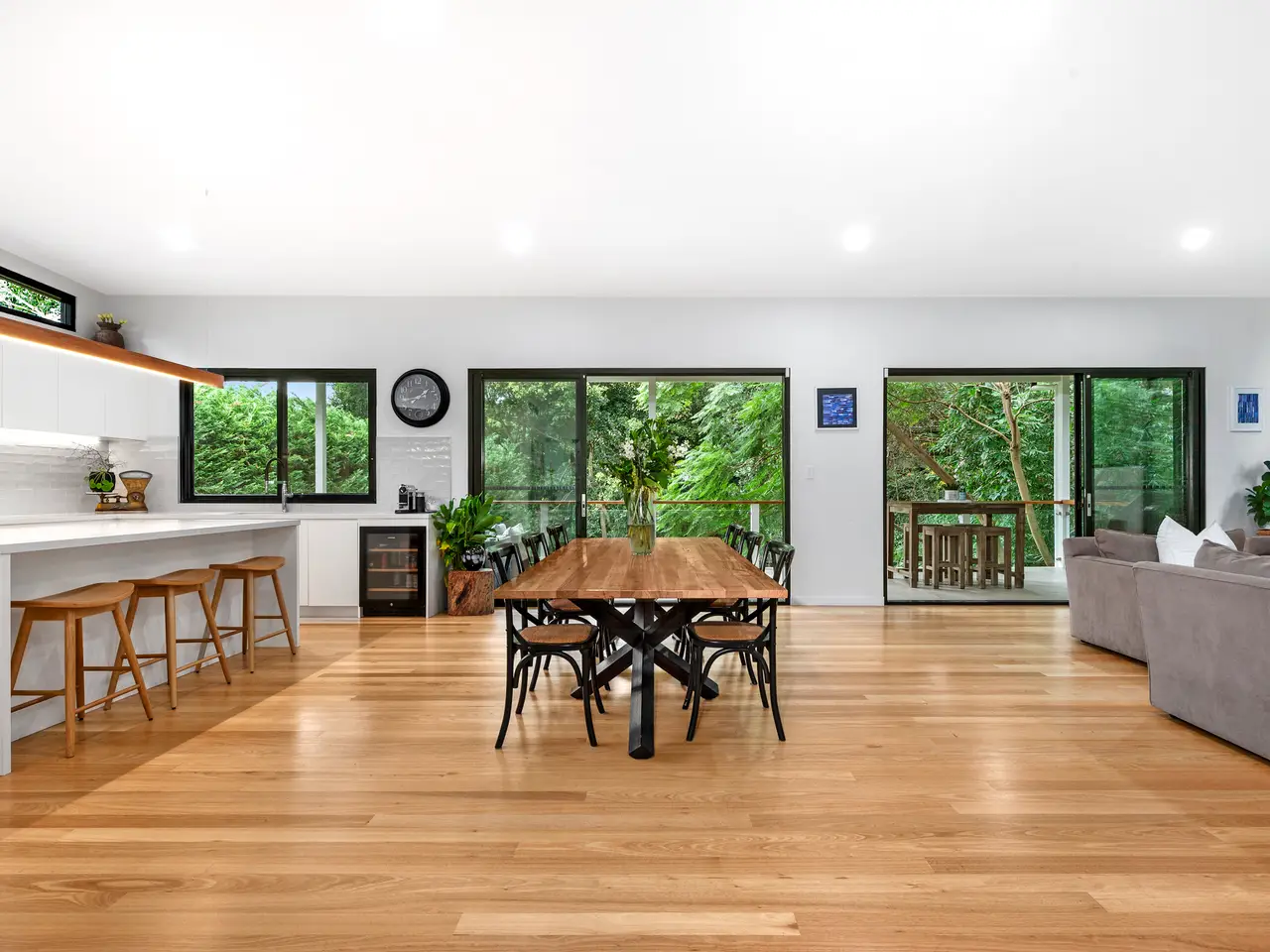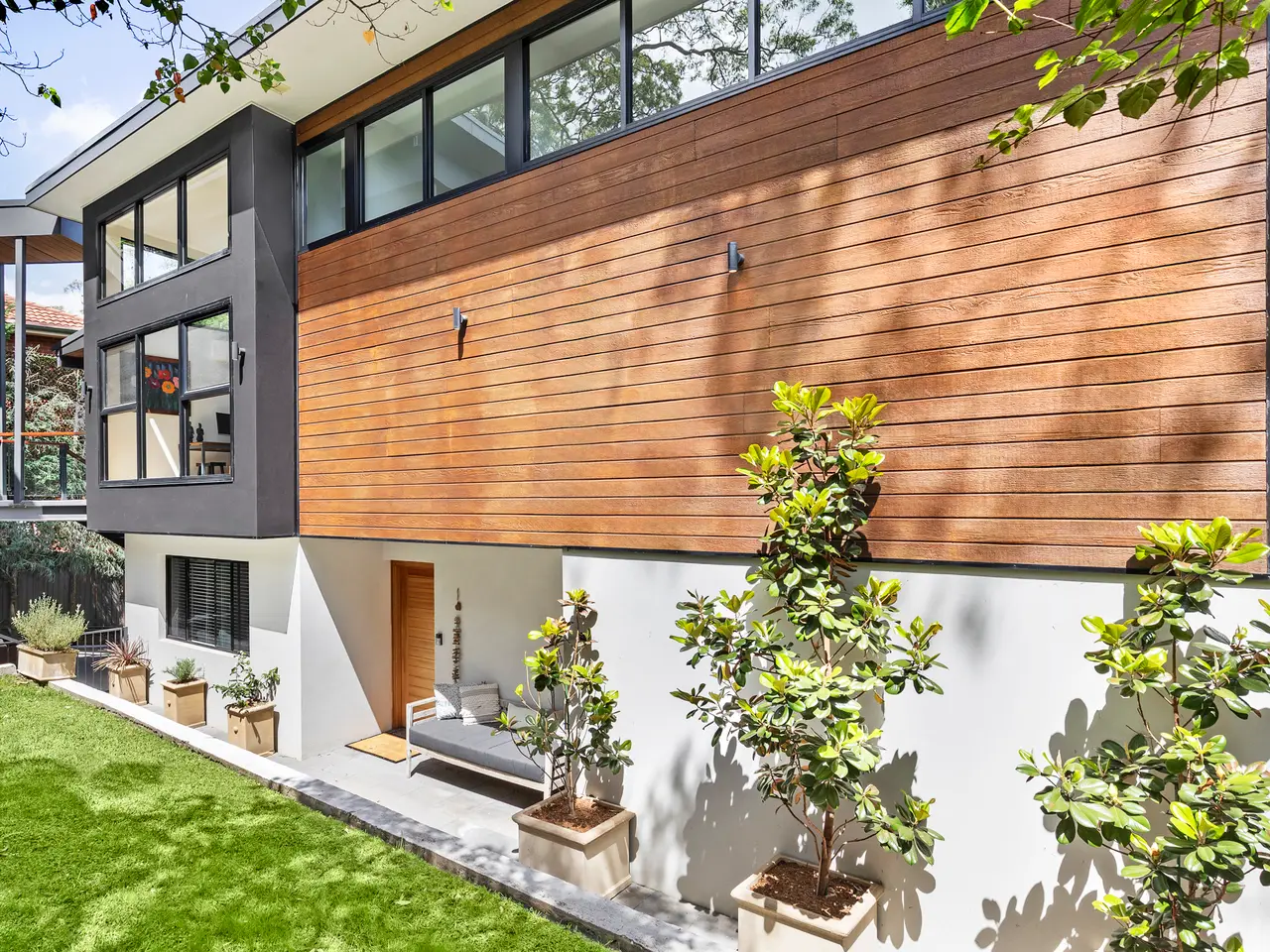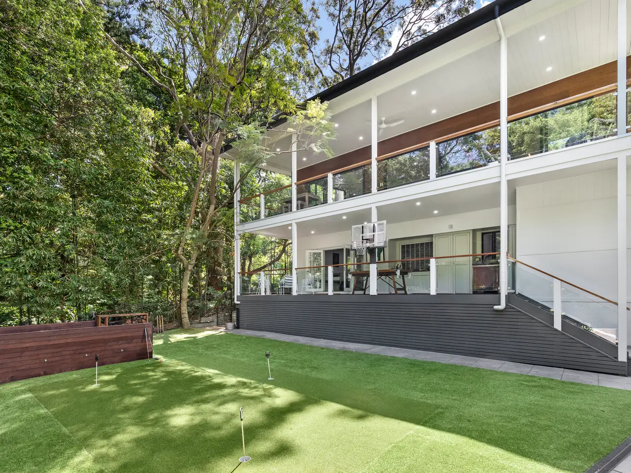 Ideally set at the end of a quiet cul-de-sac, this architecturally designed residence presents spacious family living ideal for multigenerational families and entertainers. With two floors of living spaces and dual home entry, this large home boasts generous entertaining balconies, terraces, and lounges, all surrounded by nature with enviable privacy. The interiors with soaring vaulted ceilings and glass feature windows allow a continuous flow of natural light and air, all in an enviable position only metres to the Lane Cove Golf Course and a short stroll to village shops and aquatic centre. - Expansive living and dining floor with soaring vaulted ceilings, gas fire - Gourmet gas kitchen with stone island, Vintec fridge, walk-in pantry - Main floor with optional guest bedroom/home office, master with luxury ensuite and windowfront tub - Four bedrooms on lower floor with second master ensuite, casual lounge - Multiple lounge and entertaining spaces, private putting green, firepit - Timber floors, air conditioning, guest powder room, double carport - External laundry with powder room, main bathroom with spa bath