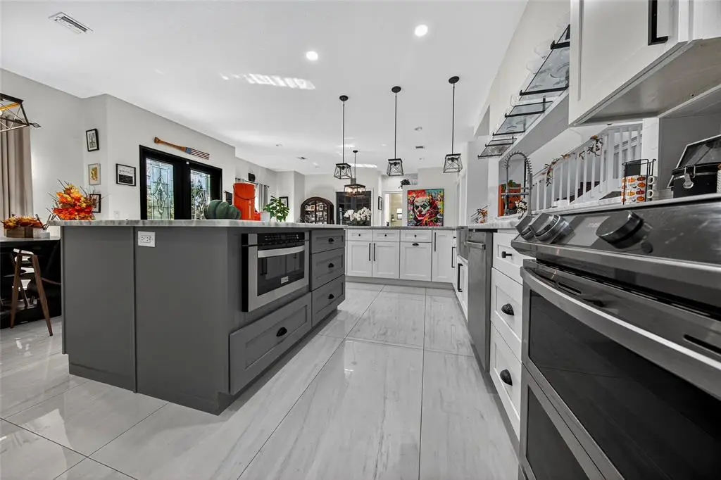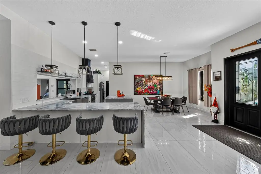 Spectacular renovated 6BD/6BA estate on an oversized lot just minutes from the beach! This modern home features a bright, open floor plan with an updated, first-floor primary suite, office, and junior suite on the main level plus three en-suite bedrooms, a loft, and a huge screened terrace upstairs. The bedrooms offer generous space, custom closets, and beautifully updated bathrooms. Impact windows fill the home with natural light throughout. The brand-new kitchen boasts white shaker cabinets, quartz counters, a center island with wine storage, a farmhouse sink, stainless steel appliances, and a wraparound breakfast bar. Enjoy entertaining in your private backyard oasis with a covered living area, tropical pool, and fully fenced yard — perfect for the South Florida lifestyle!