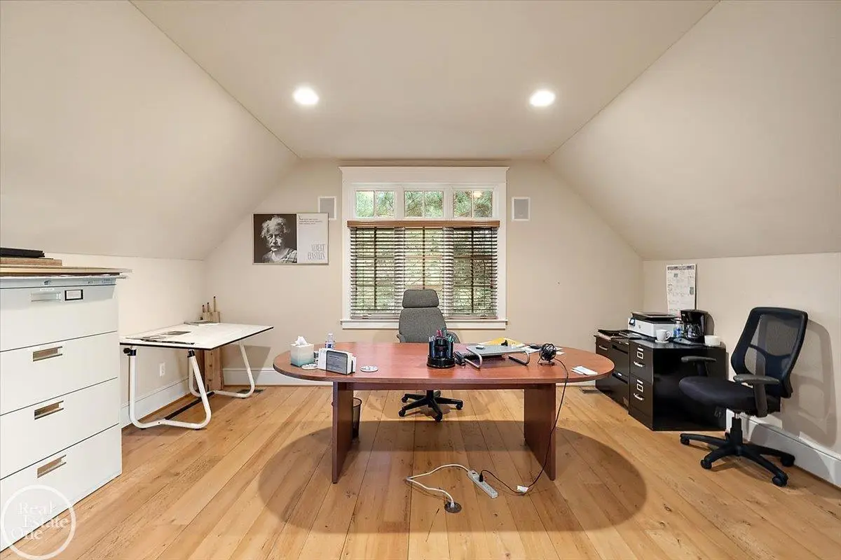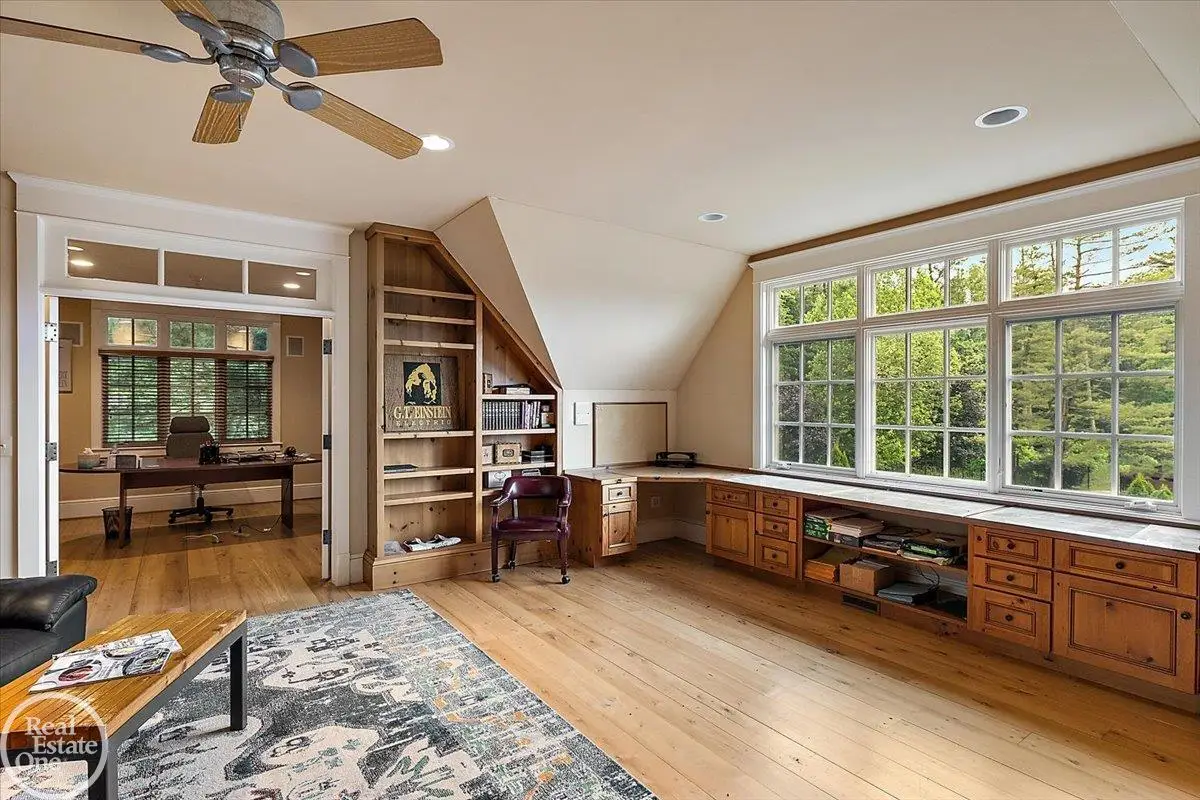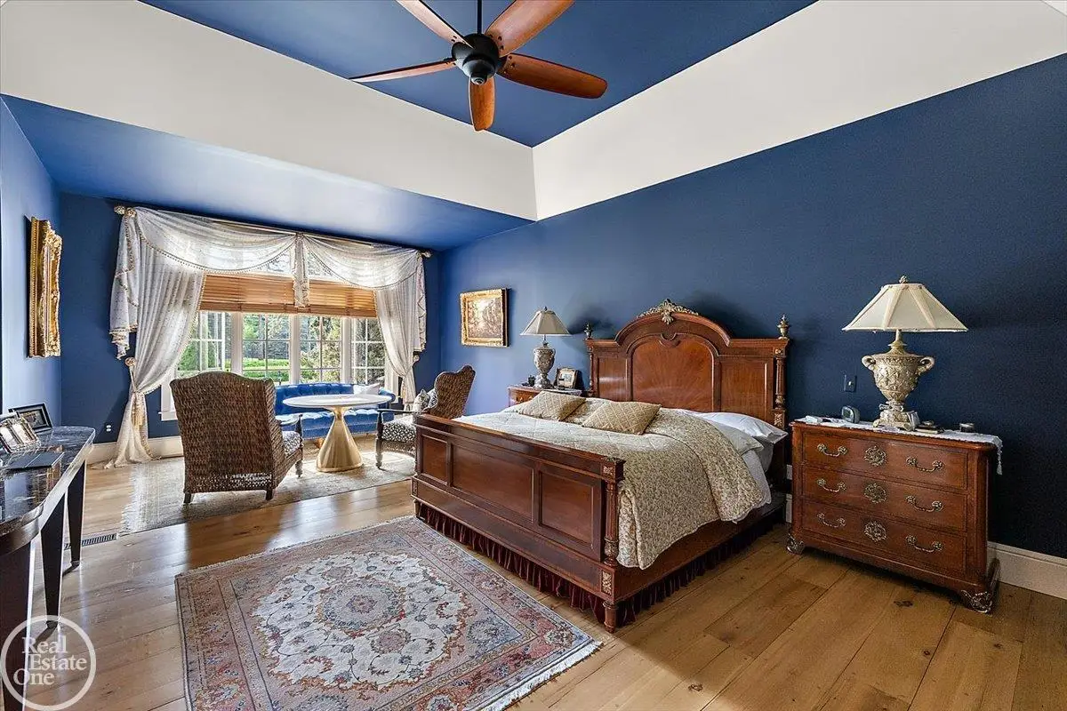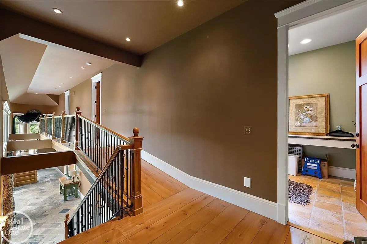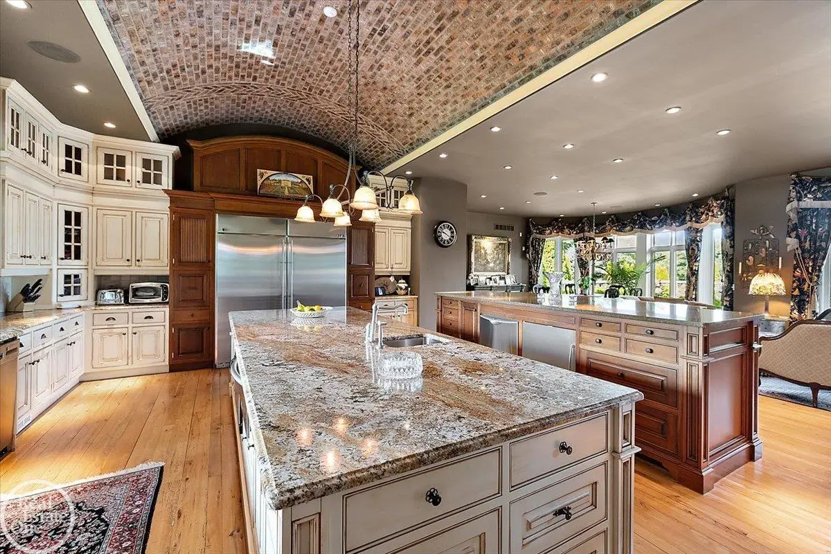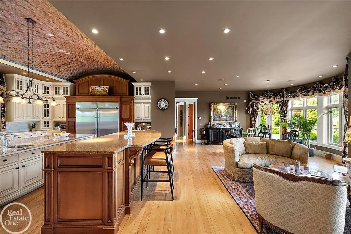 Discover an exceptional opportunity with this private 12-acre French Country Manor Estate in Oakland Township, offering over 12,000 square feet of stunning living space. Enjoy expansive terraced patios leading to beautifully designed Parterre Gardens and a built-in swimming pool measuring 25 feet by 55 feet. A helipad adds convenience for helicopter access right in your backyard, along with a state-of-the-art helicopter hangar. The property features extensive landscaping and an irrigation system covering all 12 acres, a 6-car garage, ample hangar storage for car enthusiasts, and a horse barn equipped with 6 stalls. The gourmet kitchen is a chef's dream, complete with a separate pizza oven and commercial-grade appliances. The spacious great room boasts beamed ceilings and large windows that offer views of the grounds. The estate includes 6 fireplaces, 6 bedrooms, a private loft area, maple-planked flooring, and a finished walk-out lower level with a 15-foot by 10-foot indoor lap pool and gaming spaces.