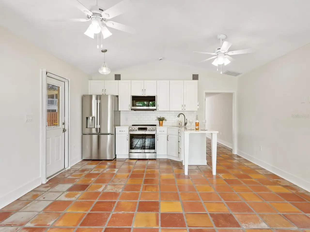 One or more photo(s) has been virtually staged. Tucked away at the end of quiet Estrada De Costa, a single lane road with just three homes, this unique and spacious Siesta Key 3 bedroom/3 bath lakefront property offers rare privacy, flexibility, and charm. The home was expanded in 2001, the property includes a 2 bedroom/2 bath main house, and a fully equipped one bedroom/one bath separate suite with its own private entrance, cozy living room, kitchen, walk-in closet, and screened porch with tranquil water views. Ideal for multigenerational living, guest accommodations, or income potential. Saltillo(Mexican) tile flooring flows throughout both living spaces and adds character and charm to every room, while the open layout flows seamlessly for comfortable everyday living. Sliding glass doors on the water side fill the rooms with natural light. The house did have water in the home after Hurricane Helene, so the owner completed some thoughtful and stylish renovations such as Shaker cabinets, quartz counters, subway tile backsplash, all new LG stainless steel appliances, new AC, and hot water heaters in both living spaces, and solid paneled doors throughout. New roof in 2022, and drain pipes lines in 2024. Located on Lake Rittwood, a serene neighborhood pond teeming with tilapia, turtles, ducks and birds, this home is a retreat. Stroll into Siesta Key Village, or catch sunset views at the Big Pass/Gulf public access at the West end of Givens St. and Ocean Blvd. This home offers the end-of-the-road seclusion, but still close to the wonderful activities of Siesta Key and Sarasota. Whether you're hosting guests, housing extended family, or exploring rental potential, this unique layout offers flexible living options rarely found on the Key.
