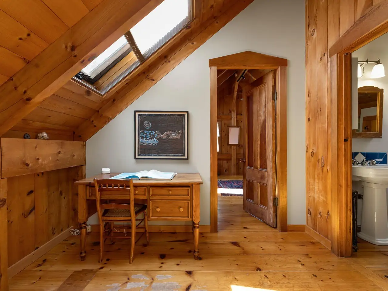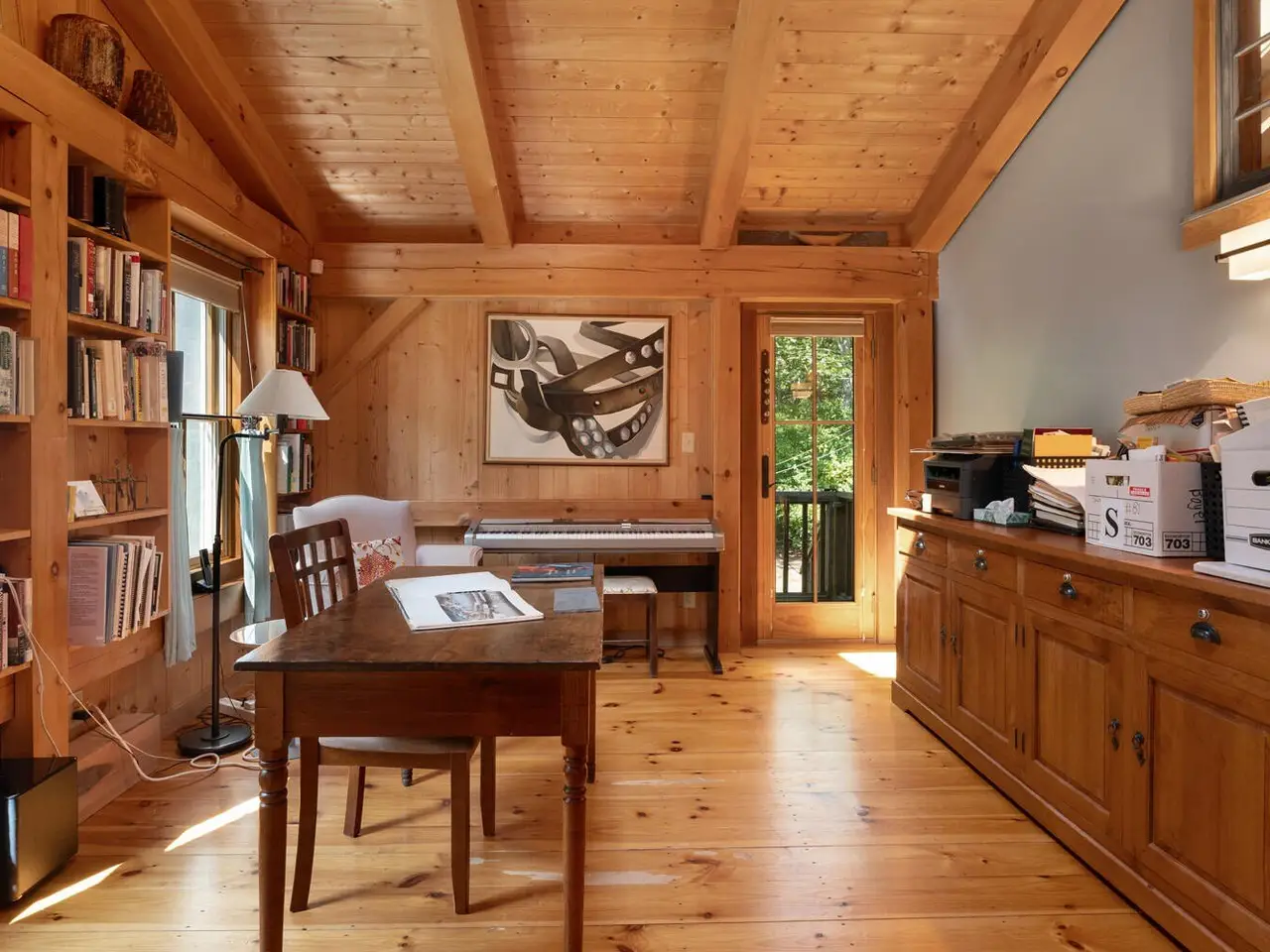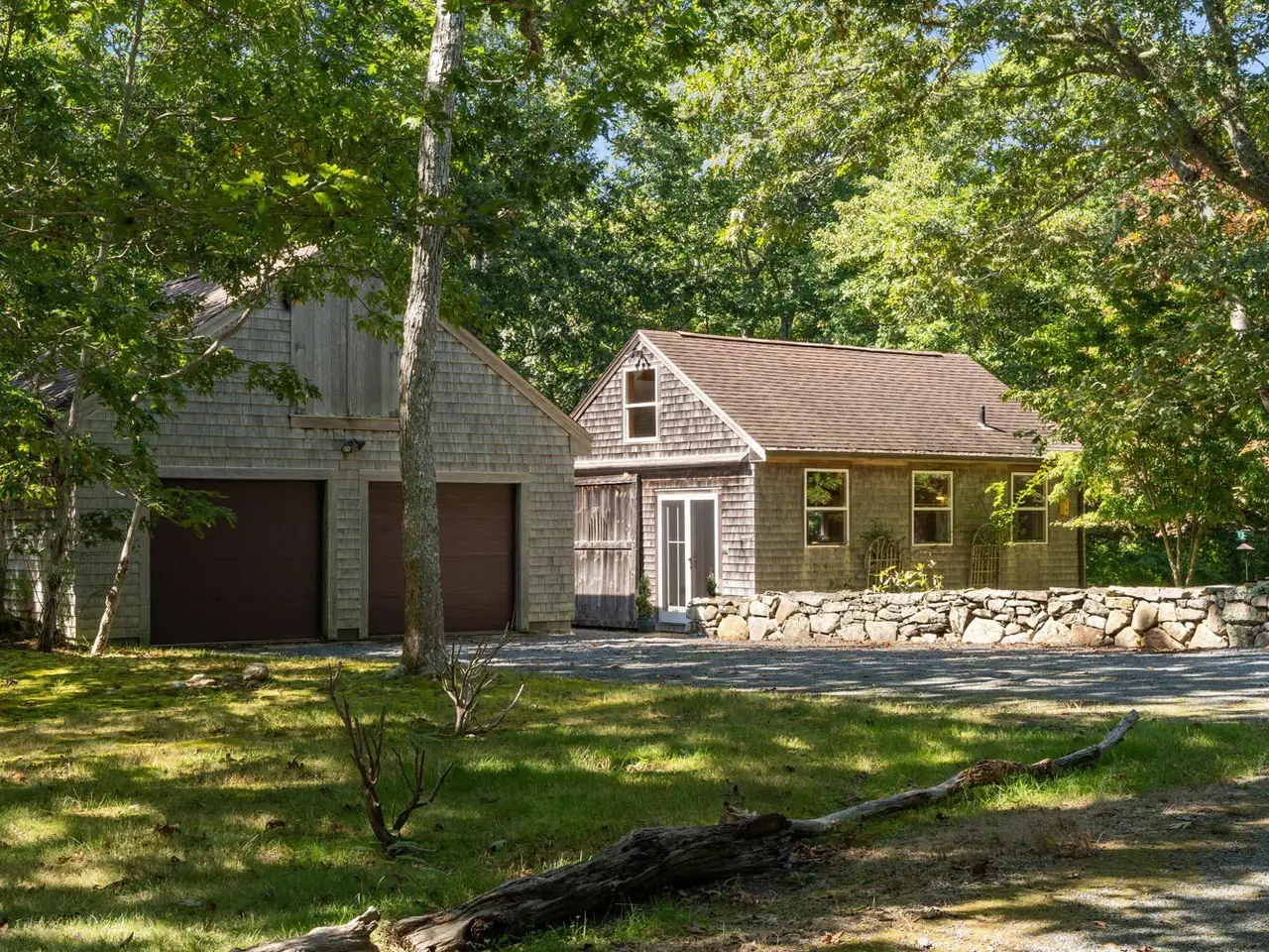 Set on 3 acres of natural beauty, this 1968 s/f post-and-beam home offers a tranquil and inviting setting surrounded by stone walls, serene gardens, and the glacial erratic stones that distinguish the Chilmark landscape. The main residence features three levels of living. A chef's kitchen with a Viking gas range and pantry overlooks the open floor plan, awash in natural light with wide-plank floors, leading seamlessly through living and dining areas with French doors to a dining patio and sundeck. Past a fieldstone fireplace is the music room and a first-floor primary suite with a full bath featuring handcrafted artisanal tile, slate floors and soaking tub. Brick patios and winding garden paths extend the living space outdoors, encouraging quiet enjoyment of the landscaped grounds and wooded trails. A partially finished, walk-out lower level with its own stone wall and beach grass entry provides versatile bonus space. Completing the property is a detached 576 sq. ft. studio with a loft, full bath, and deck-ideal for guests, work, or creative pursuits-as well as an oversized barn-style two-car garage with a large loft space above. You'll enjoy coveted Lucy Vincent Beach, as a Chilmark property owner, providing an exceptional opportunity to own a distinctive Vineyard retreat.