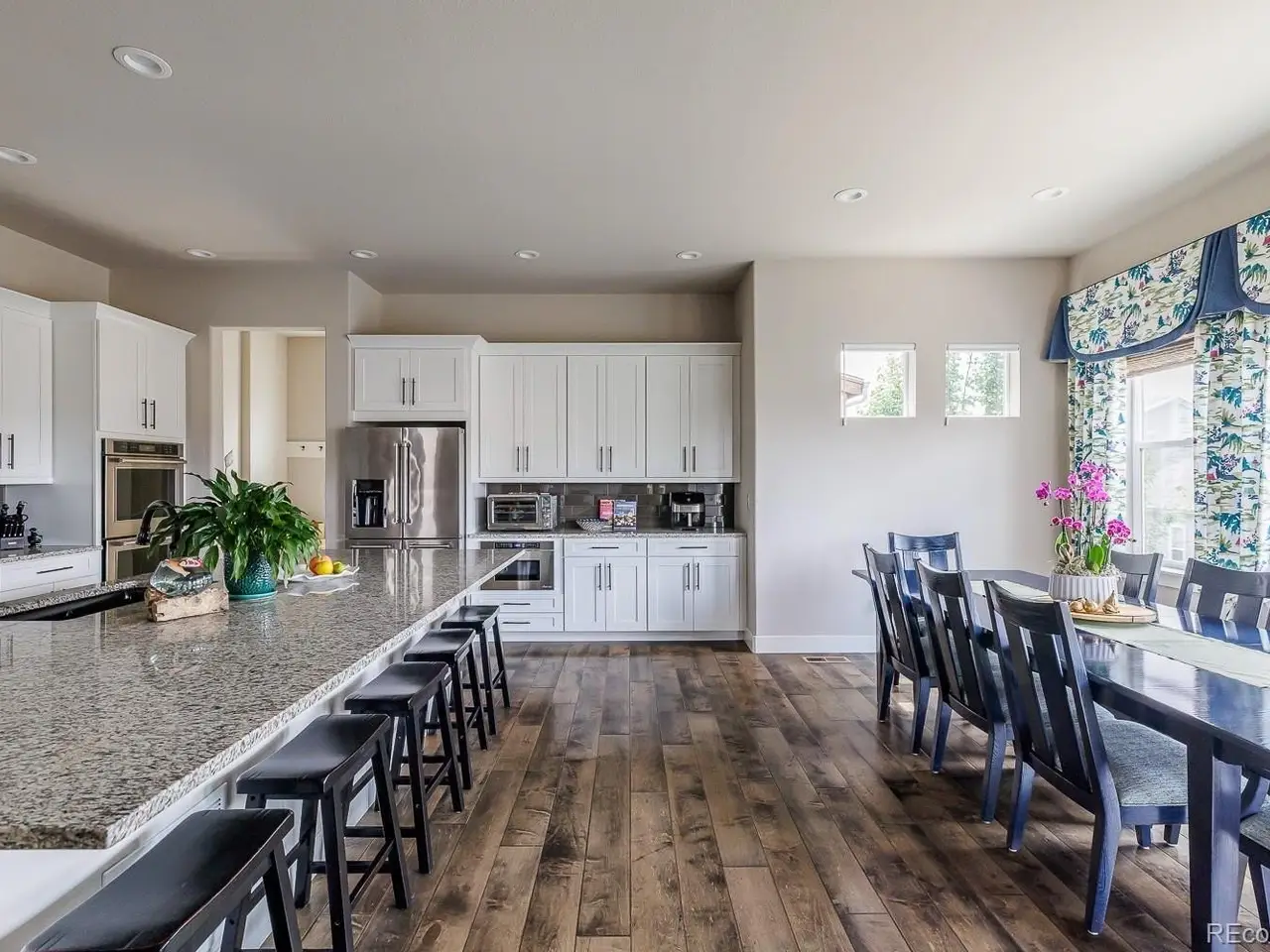 Experience refined Colorado living in this stunning 5-bed, 3.5-bath home with unobstructed 180° mountain views. Built in 2017 and beautifully updated, this nearly 4,700 sq ft residence blends designer elegance with everyday comfort. Enjoy sophisticated finishes throughout, including custom lighting, motorized blinds, wallpaper accents, and a walk-out basement perfect for entertaining, fitness, or guests. The spacious backyard retreat features a flagstone patio with fireplace and seating, and a hot tub. Additional highlights include a 3-car garage with EV charger, low-maintenance landscaping, and access to top-rated BVSD schools-all nestled in the desirable Flatiron Meadows community.