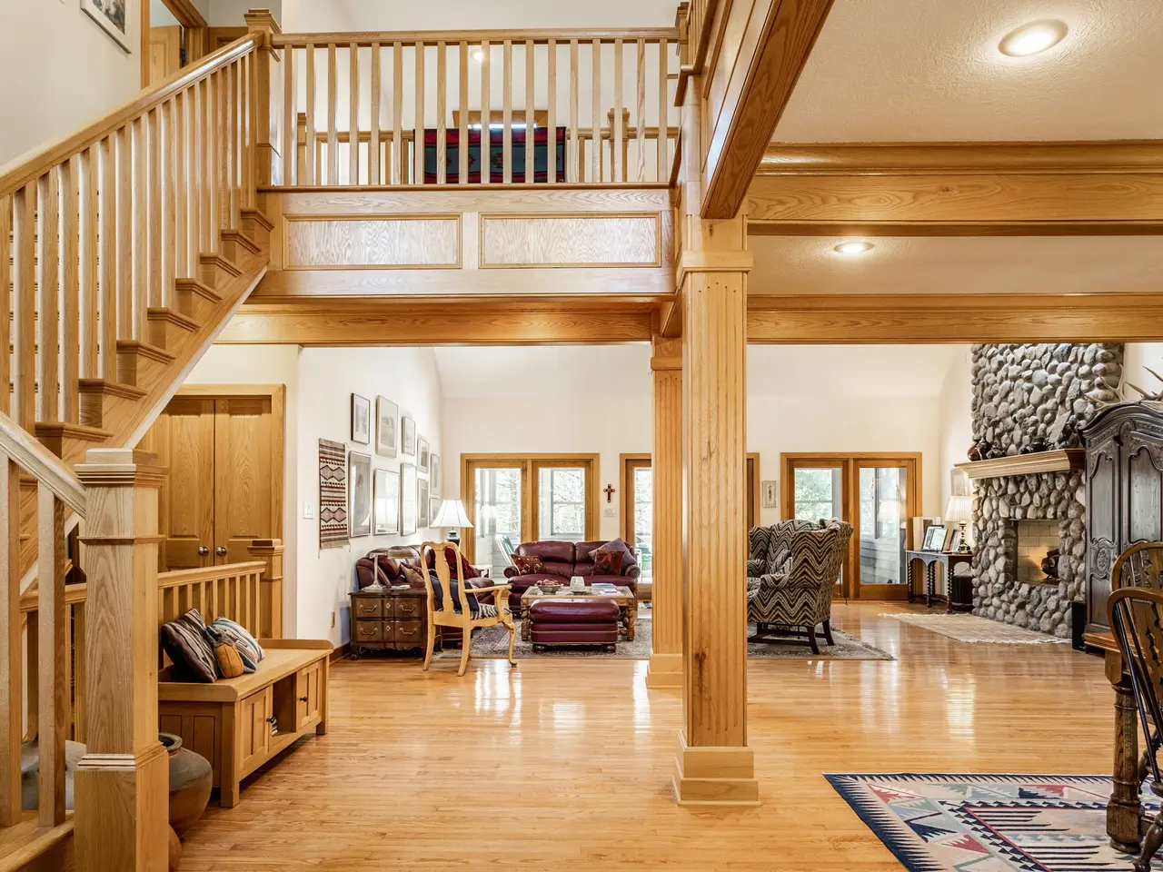 Enjoy country living at its best on 4 secluded acres, off the beaten path, yet close to town's amenities. Property features an amazing custom home, barn/workshop, and potting shed. The open concept interior boasts lots of architectural polish with wood pillars and posts defining living areas. Quality craftsmanship/detailing throughout with finely crafted cabinets/bookshelves, hardwood floors, Andersen windows/doors, stone fireplaces. The floor to ceiling pass-through fireplace between living room and hearth room is stunning! With multiple gathering areas- living room, hearth room, family room, loft, bonus room, screened porch. 5 bedrooms & 4.5 baths, there's room for everyone! The main floor primary suite boasts 2 walk-in closets w/built-ins & dressing areas. Chef's delight of a kitchen features super-sized island perfect for prepping & entertaining. Finally...THE LAND, so thoughtfully designed & planted. It was featured in Better Homes and Gardens. It's designated a Certified Back Yard Habitat with both the National and Indiana Wildlife Federations. There are pollinator gardens, prairie, and a frog pond. More than 120 bird species have been sighted along with deer and other small country mammals. It's a mini nature preserve and a peaceful lifestyle you will love.