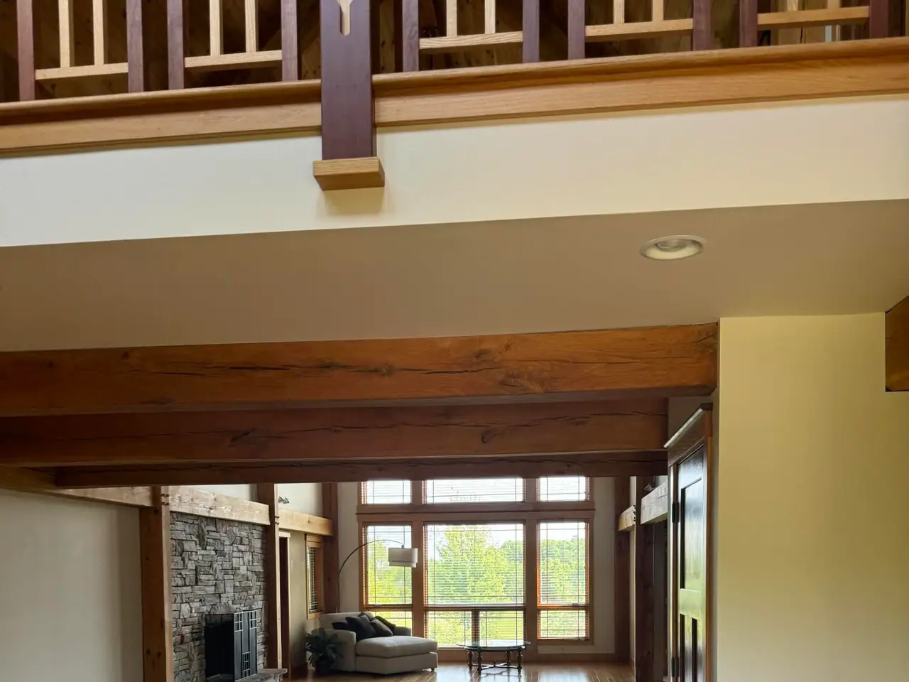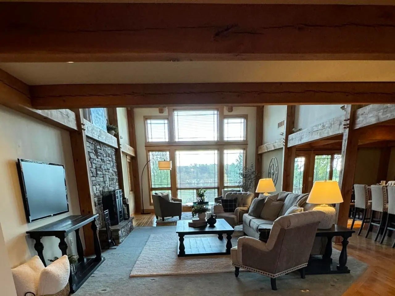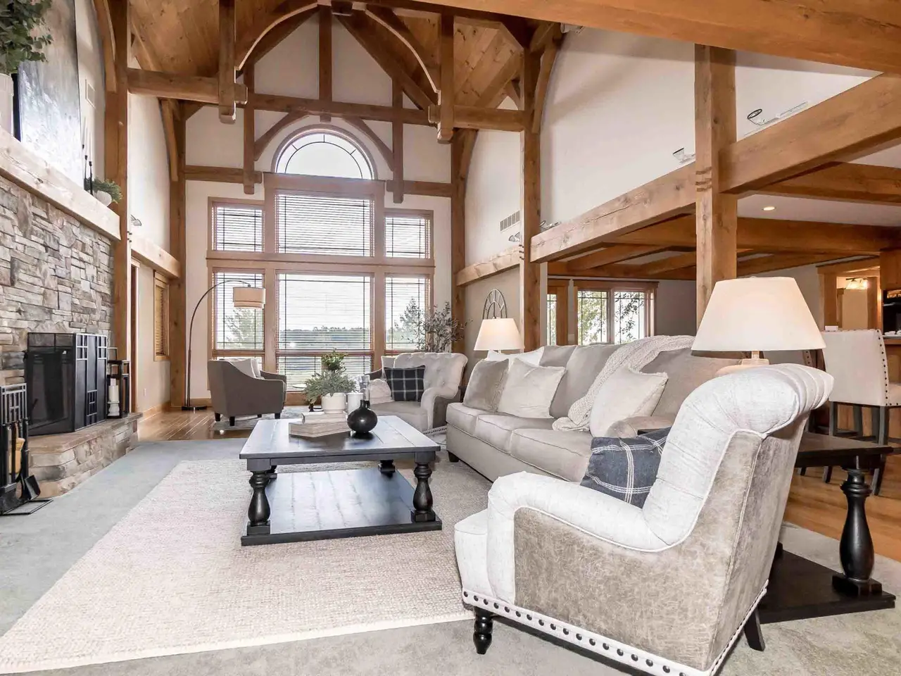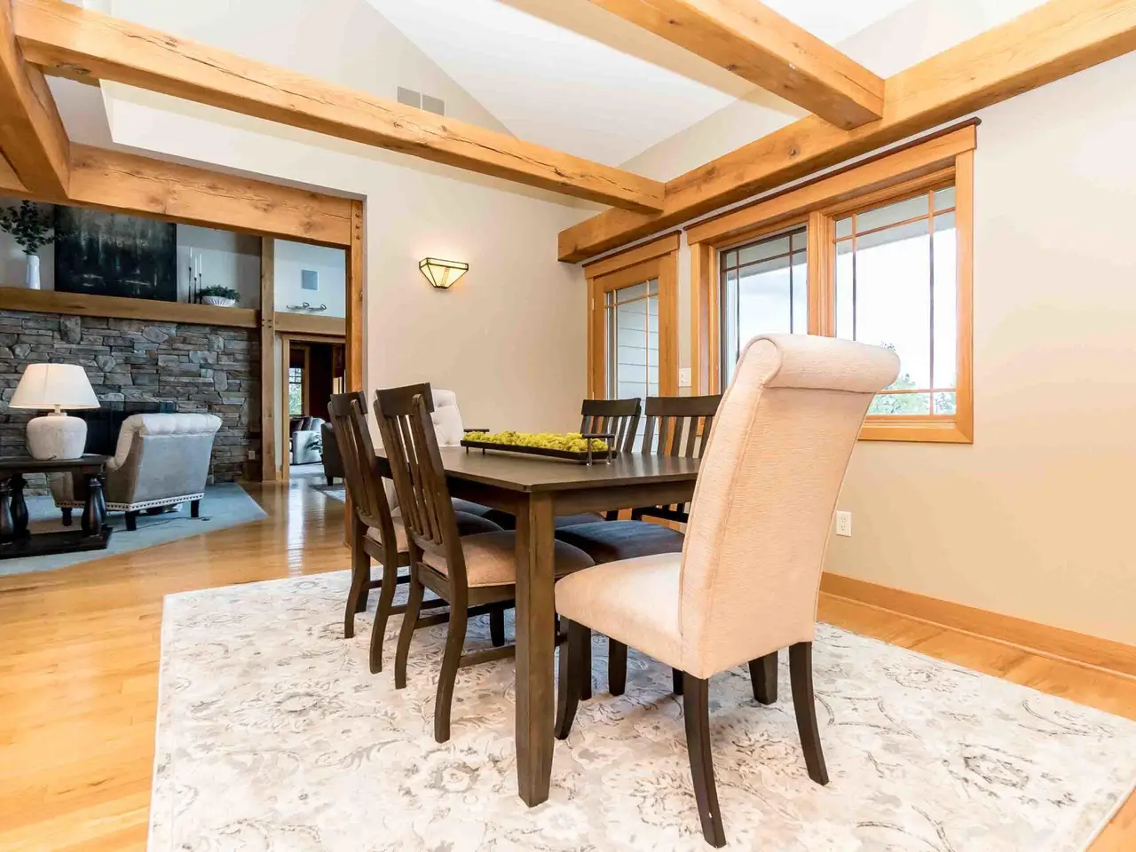 Nestled on a sprawling property, this stunning Timber-frame home offers elegance and modern comfort. With its signature architectural details, exposed beams, wide overhangs, and handcrafted woodwork, this residence exudes charm and craftsmanship. The expansive lot is a nature lover's paradise, offering privacy, lush landscaping, room for horses (or other animals) and plenty of space for outdoor living. Warm hardwood floors and large windows that flood the space with natural light. The gourmet open kitchen features a large center island, a cozy breakfast nook and a formal dining room. The spacious living areas, complete with a stone fireplace and coffered ceilings, create an inviting atmosphere for family gatherings. See new carpet installed! Scroll for updated pictures at the end.