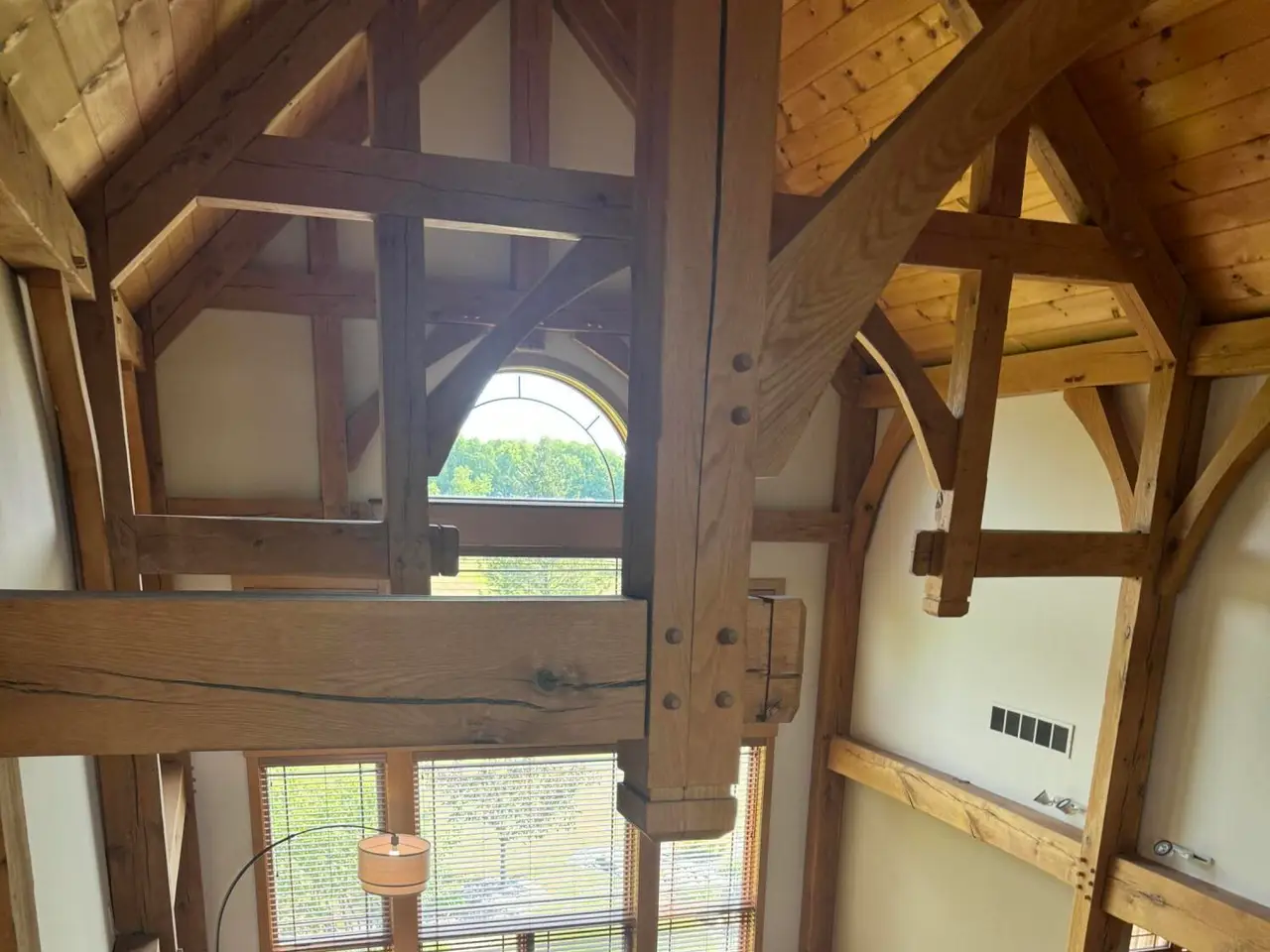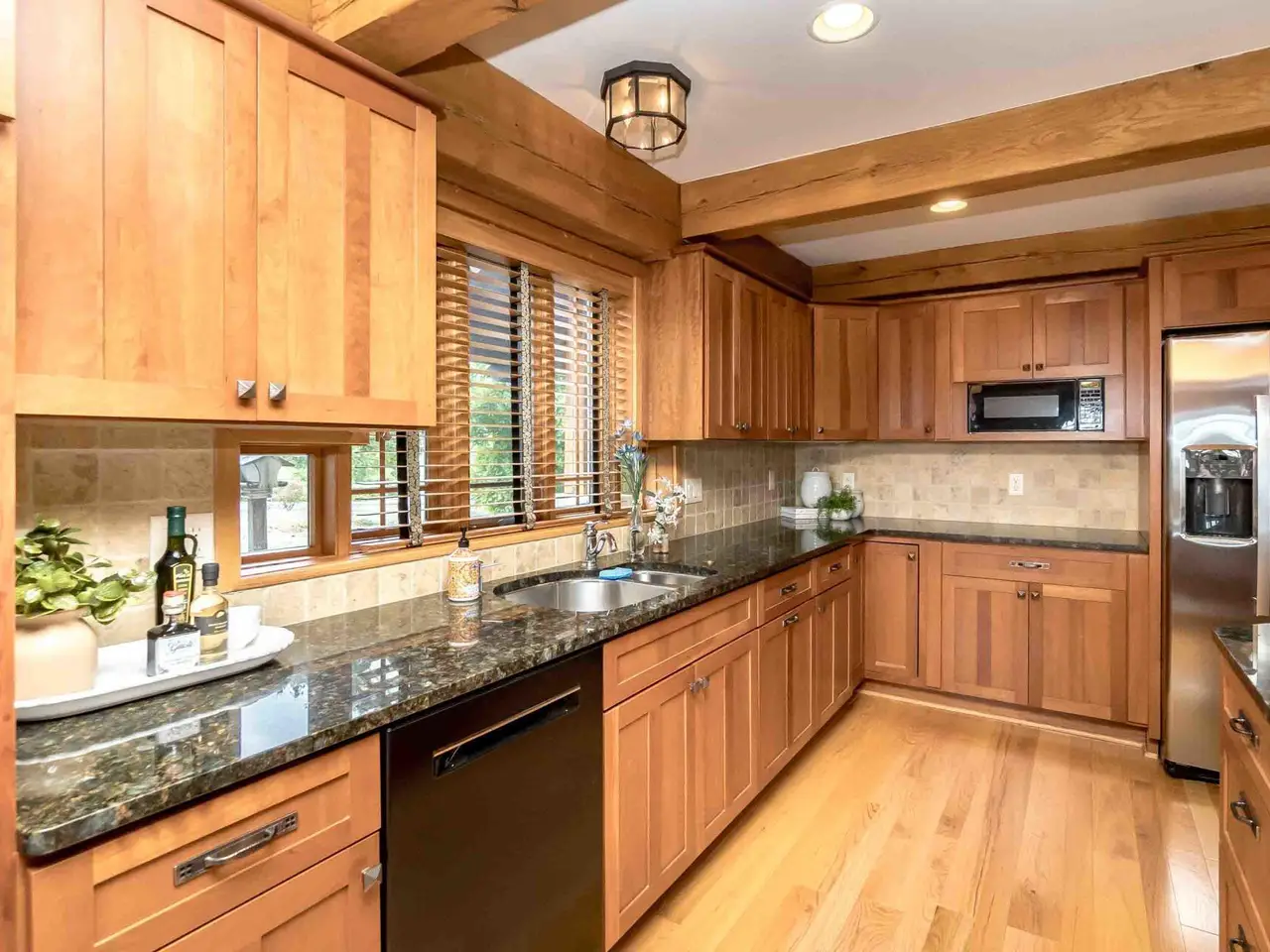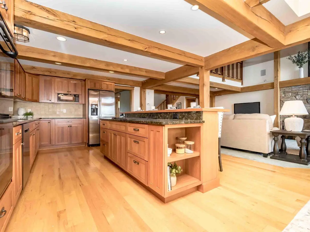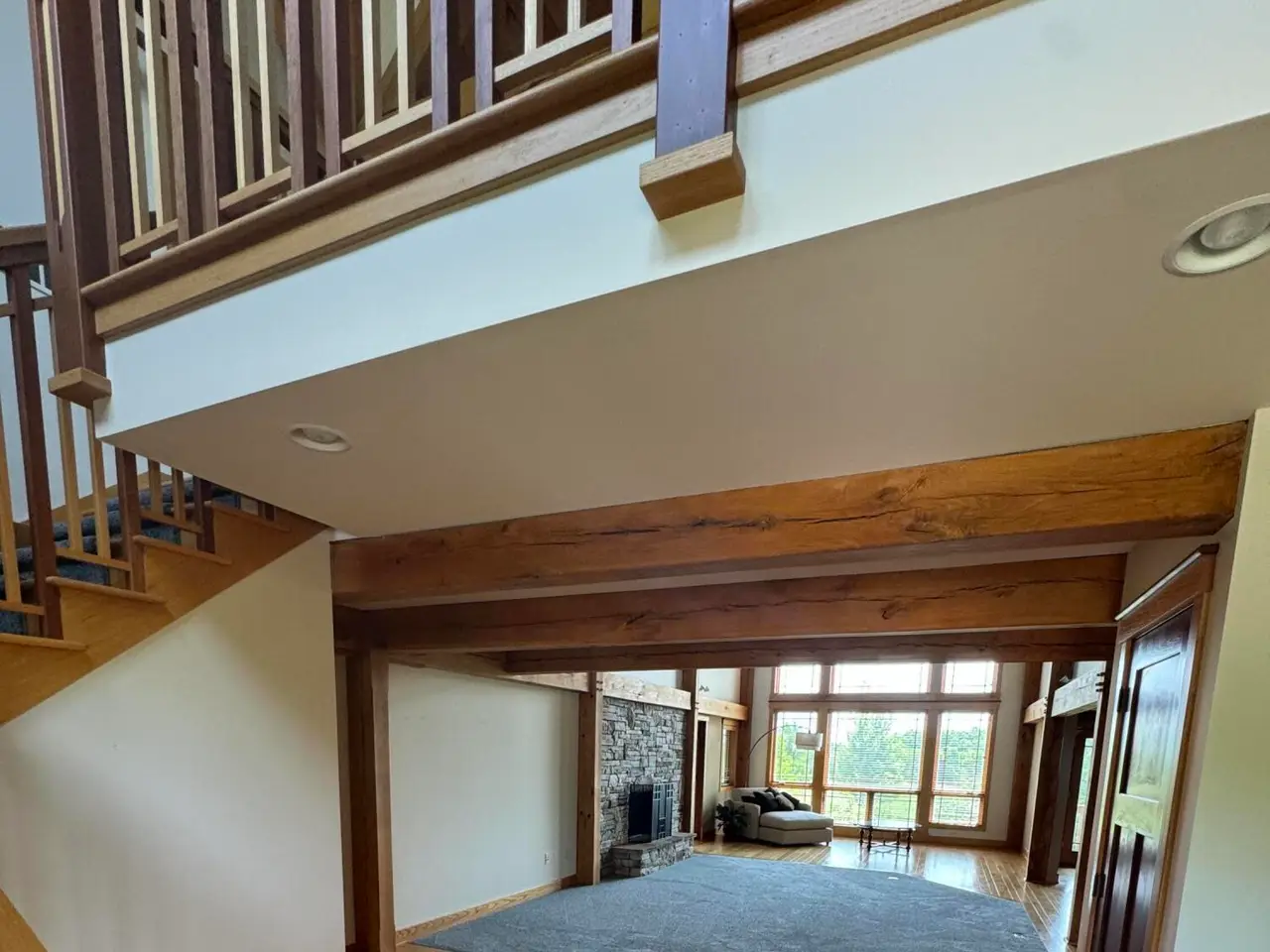 Nestled on a sprawling property, this stunning Timber-frame home offers elegance and modern comfort. With its signature architectural details, exposed beams, wide overhangs, and handcrafted woodwork, this residence exudes charm and craftsmanship. The expansive lot is a nature lover's paradise, offering privacy, lush landscaping, room for horses (or other animals) and plenty of space for outdoor living. Warm hardwood floors and large windows that flood the space with natural light. The gourmet open kitchen features a large center island, a cozy breakfast nook and a formal dining room. The spacious living areas, complete with a stone fireplace and coffered ceilings, create an inviting atmosphere for family gatherings. See new carpet installed! Scroll for updated pictures at the end.